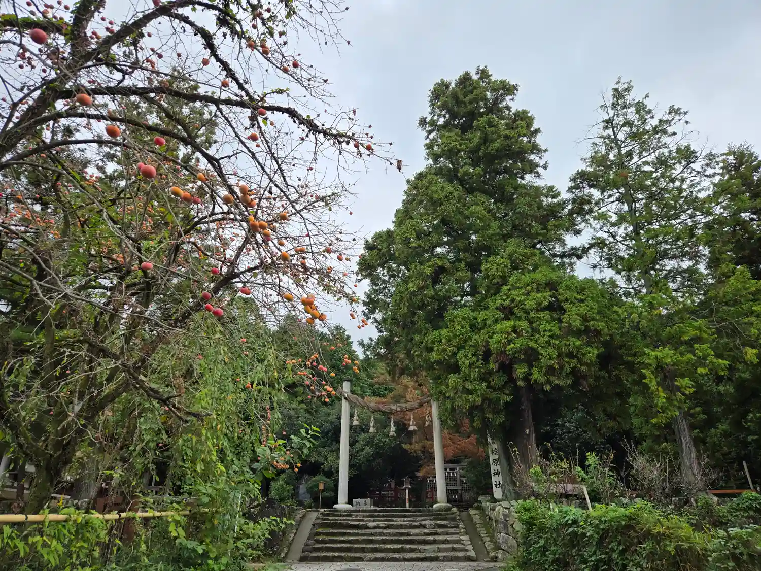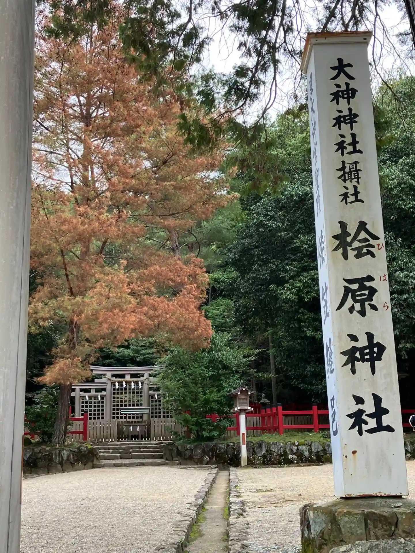天理トレイルセンターから山の辺の道を更に南へ進み、桧原神社に到着、参拝しました。何となく神秘的な場…
