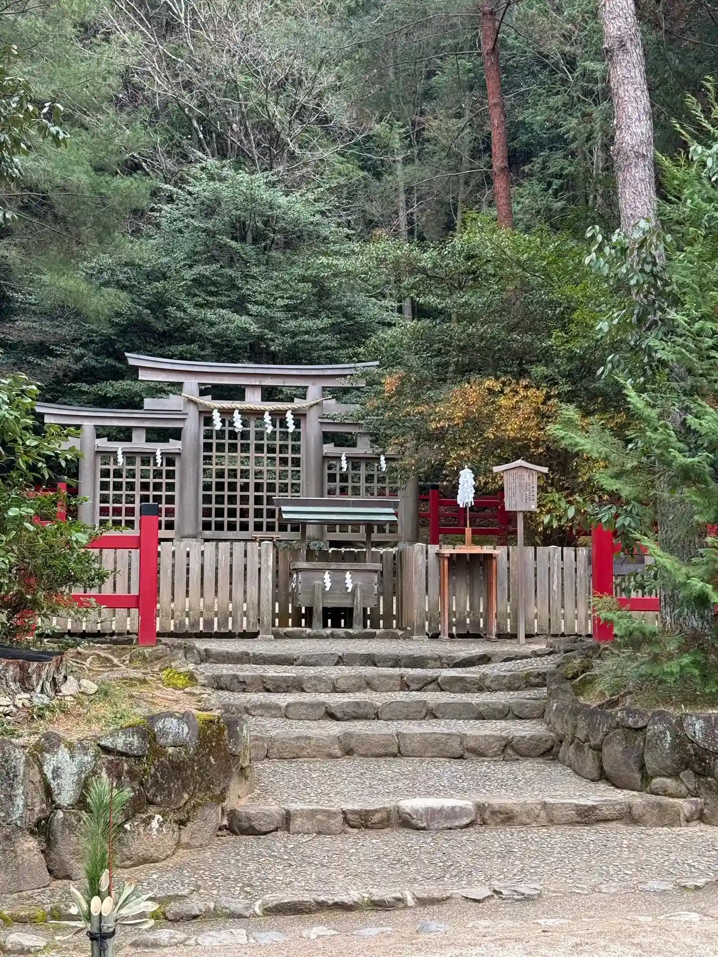 狭井神社から歩いて参拝。15時近くなり曇りの天気になり途中の山道は…