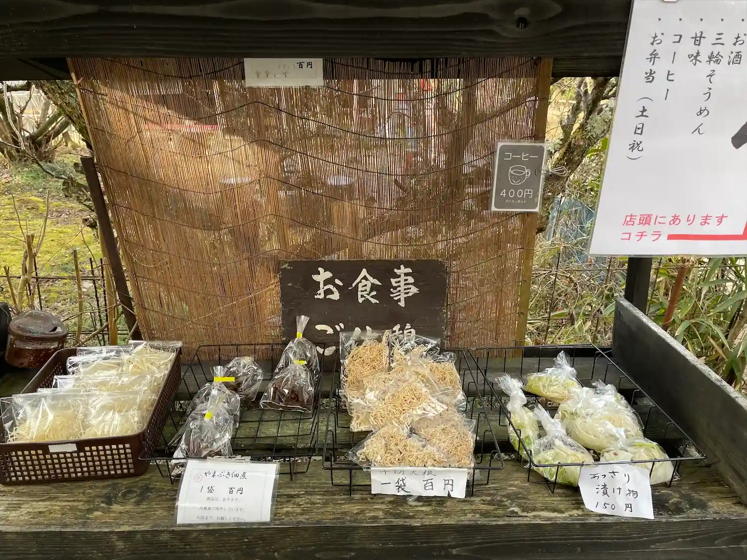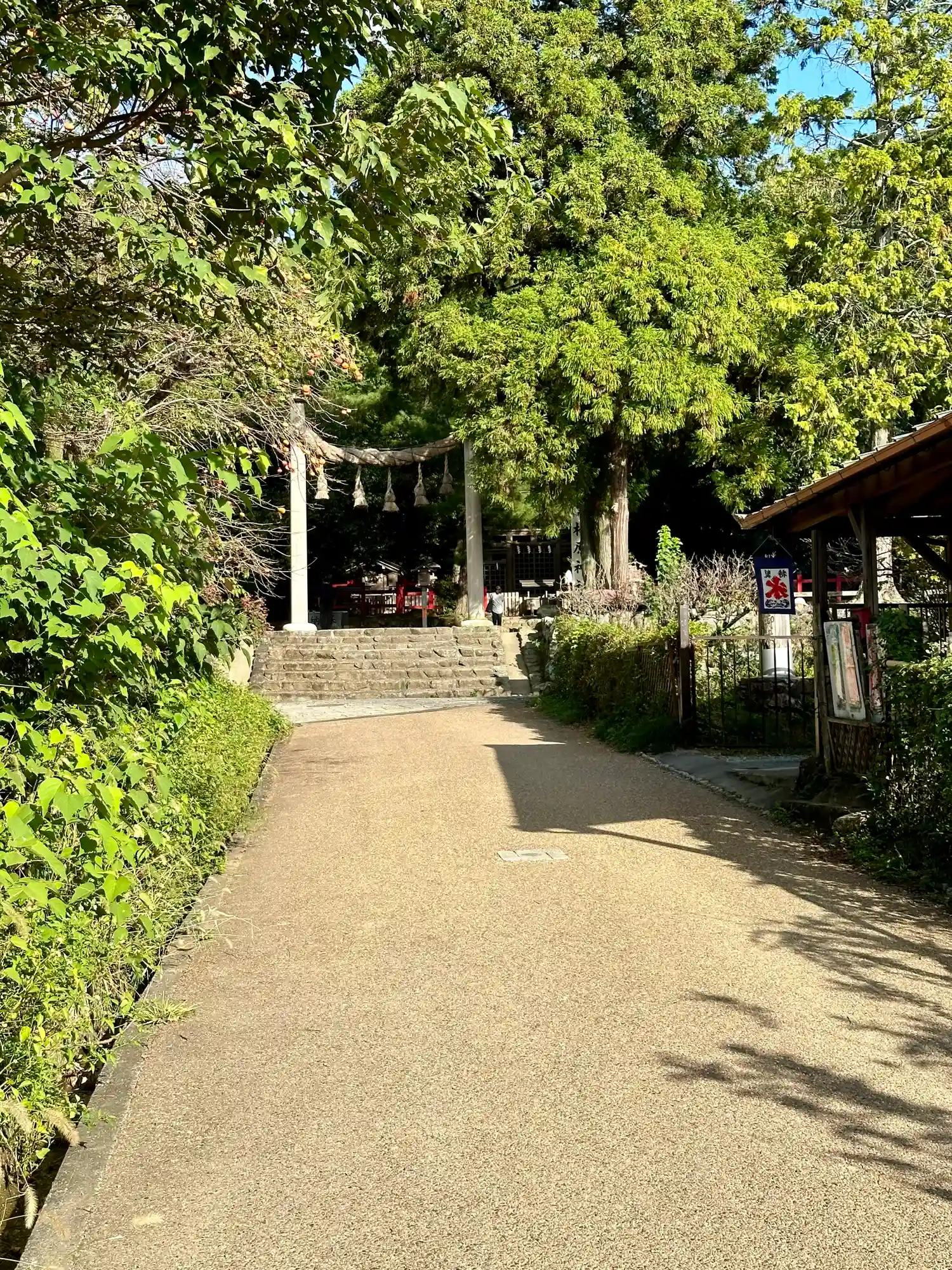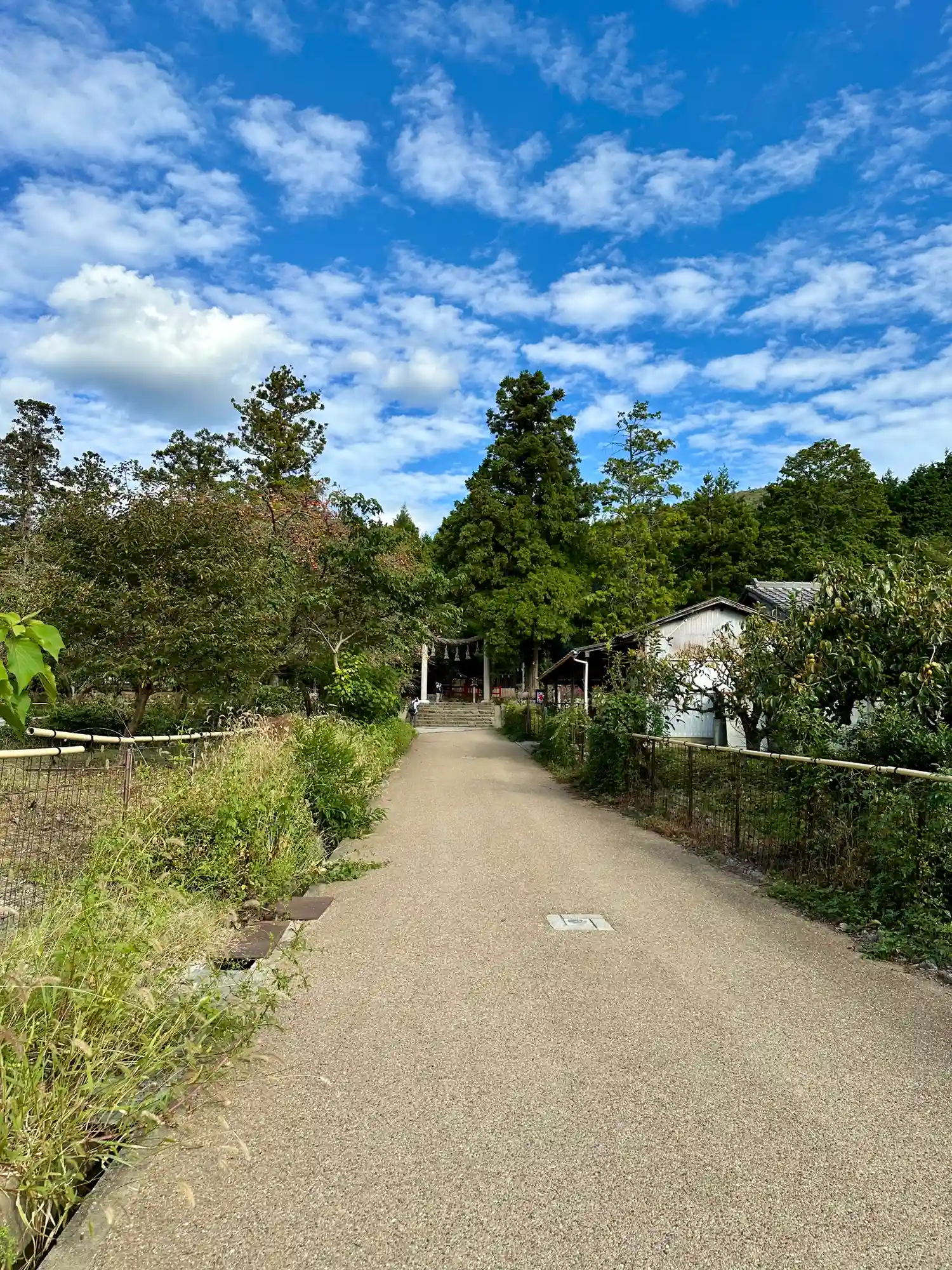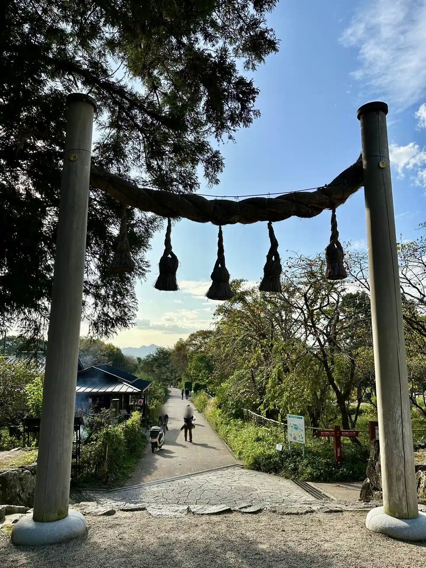 大神神社から細道で繋がっています。徒歩で歩いてらっしゃる方はこの小道を辿ってらっしゃるのでしょうね。