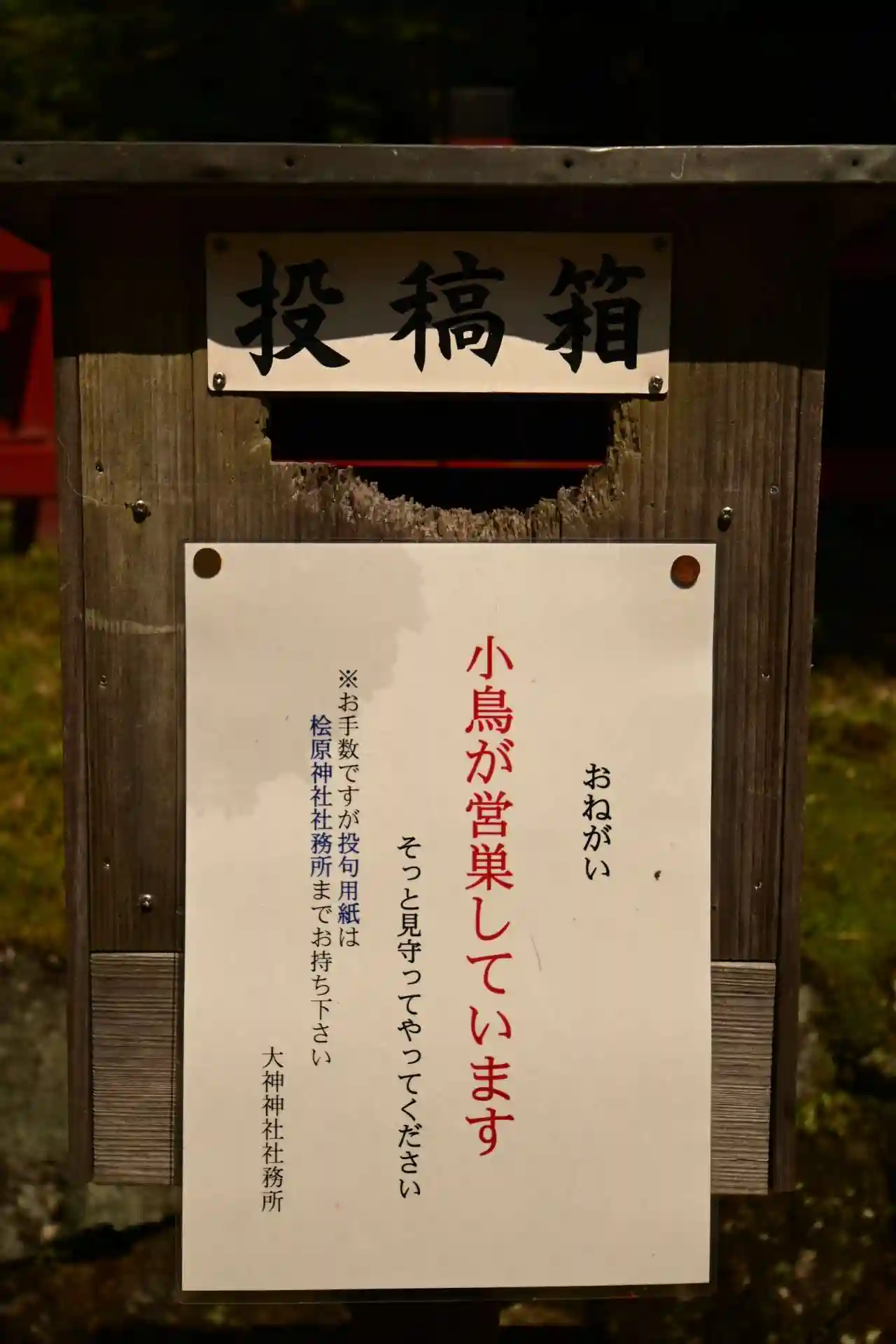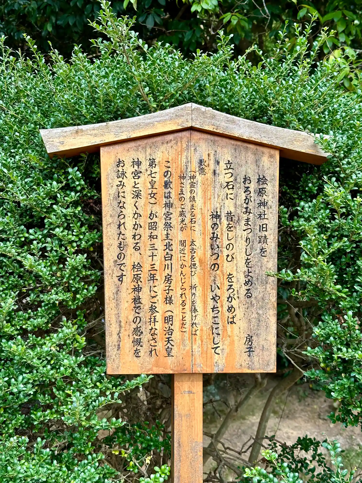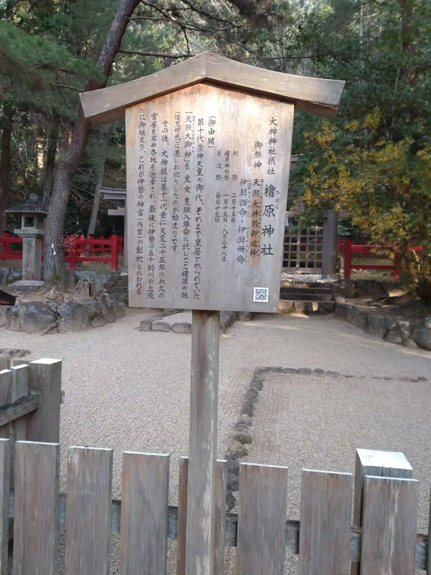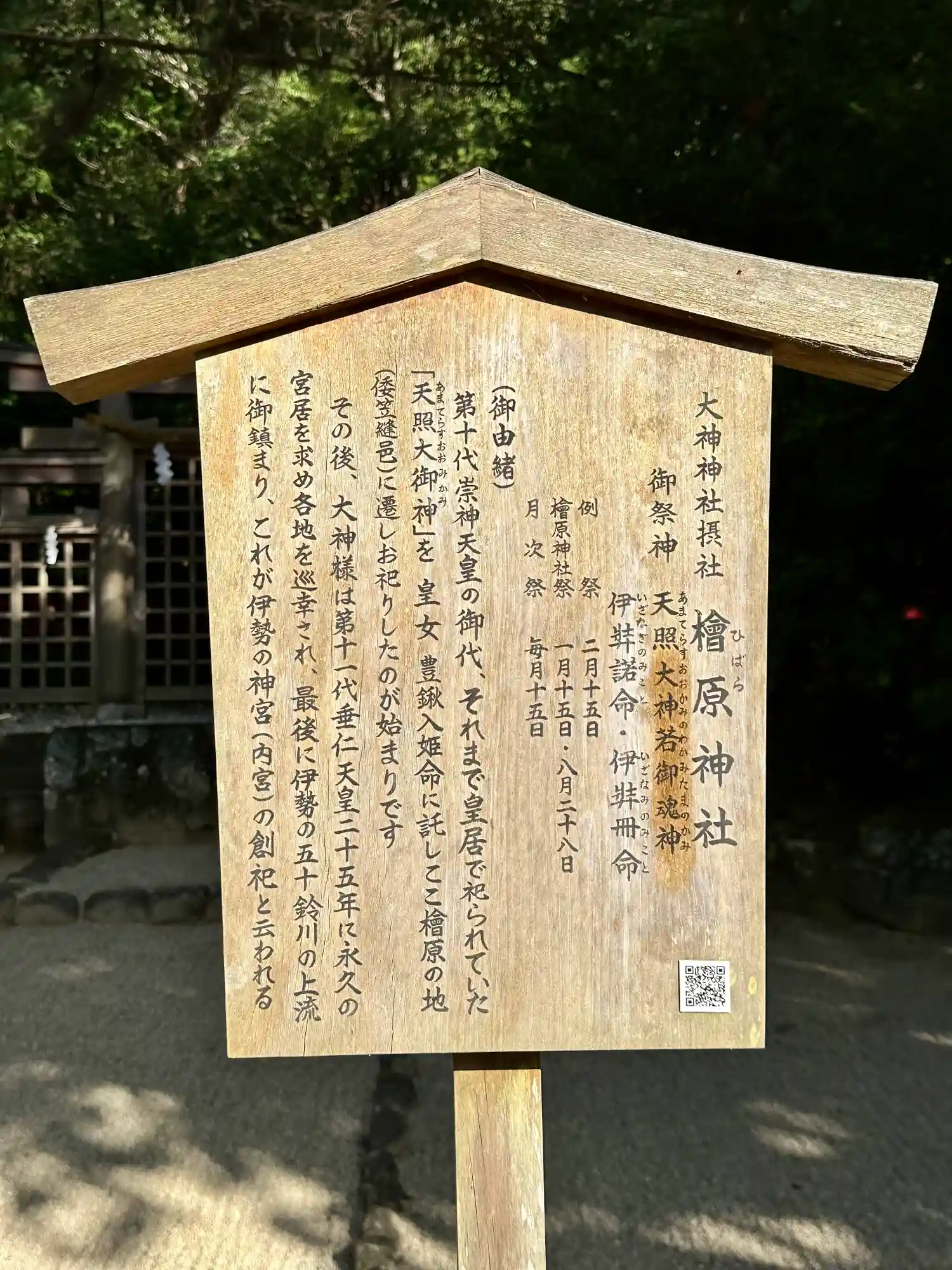 また、ここでは御祭神名が「天照大神若御魂神」と表記されており、これが「巻向坐若御魂神社」の論社に挙げられている由縁であると思われます。