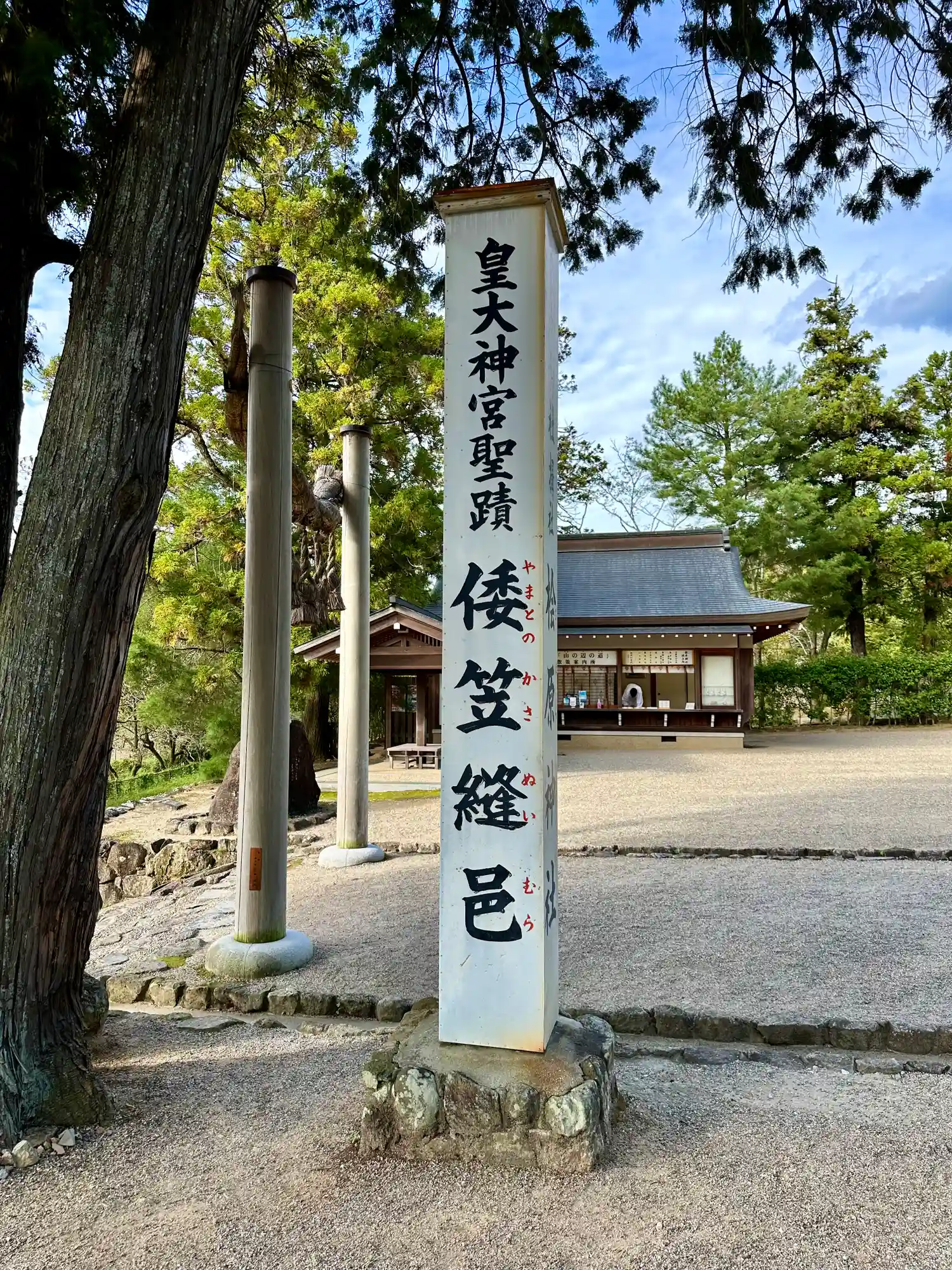 社号碑の側面には「元伊勢 倭笠縫邑」と書かれています。