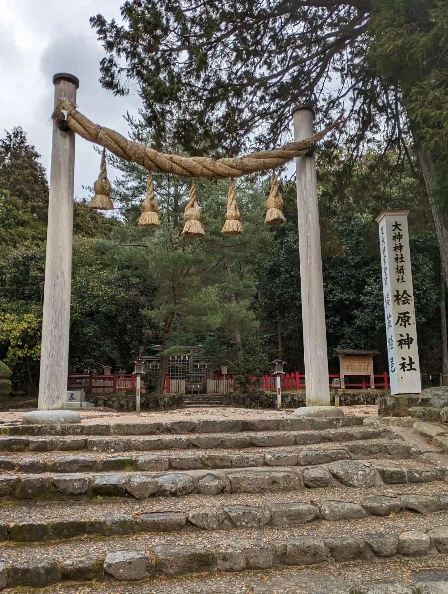天理トレイルセンターから山の辺の道を更に南へ進み、桧原神社に到着、参拝しました。何となく神秘的な場…