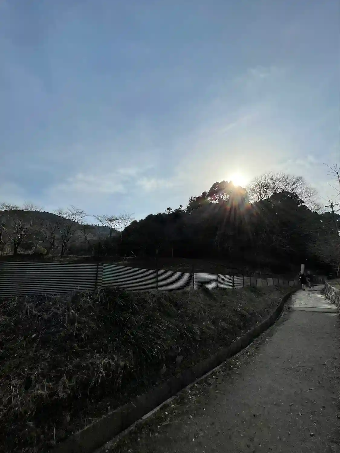 山の道を帰るときに朝日が顔を出していました。