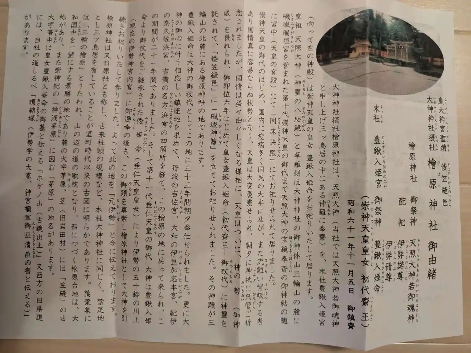 桧原神社と豊鍬入姫宮の御由緒書き