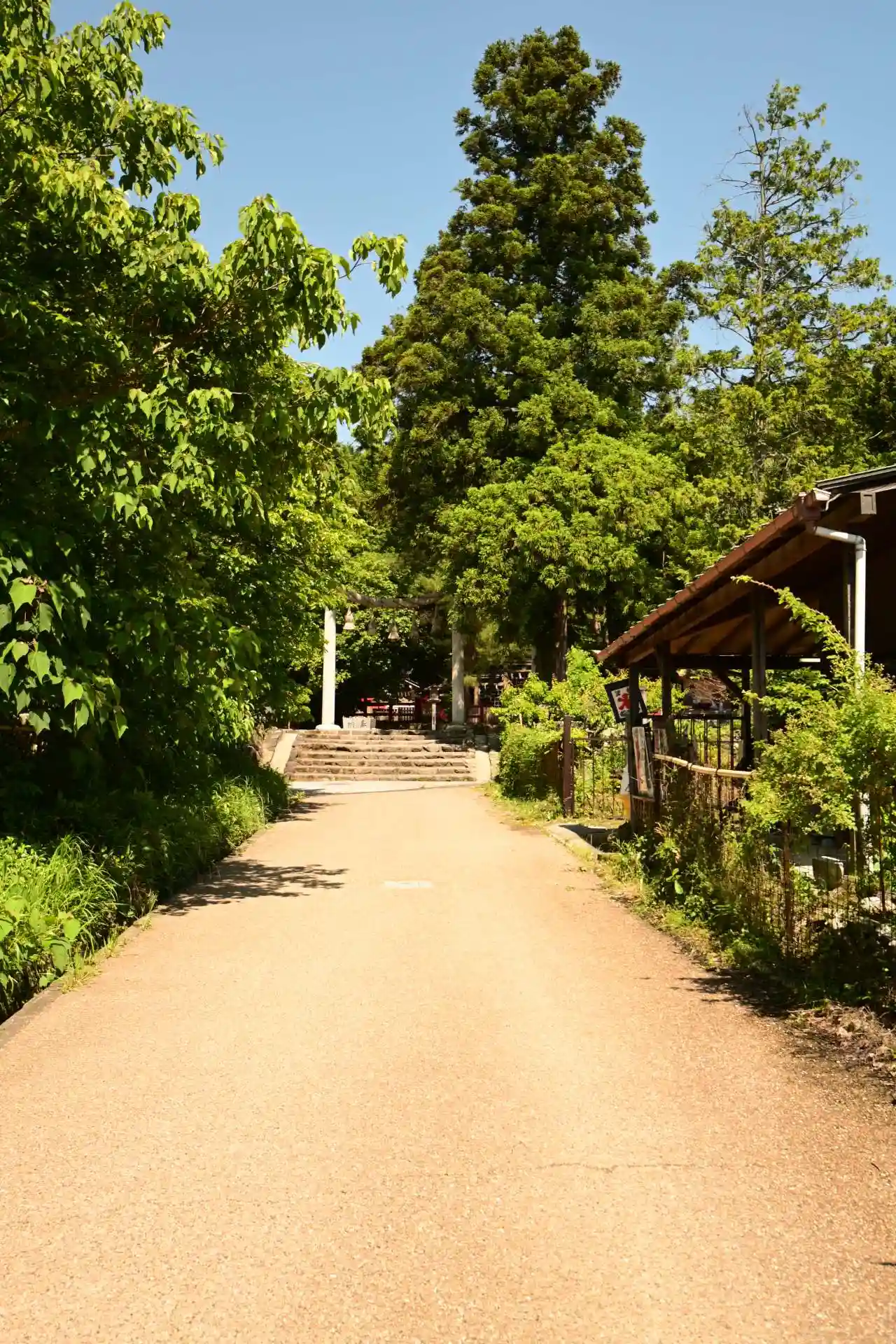 正面の参道です。春分、秋分の時はこの正面の二上山へ日が落ちるとのことです。