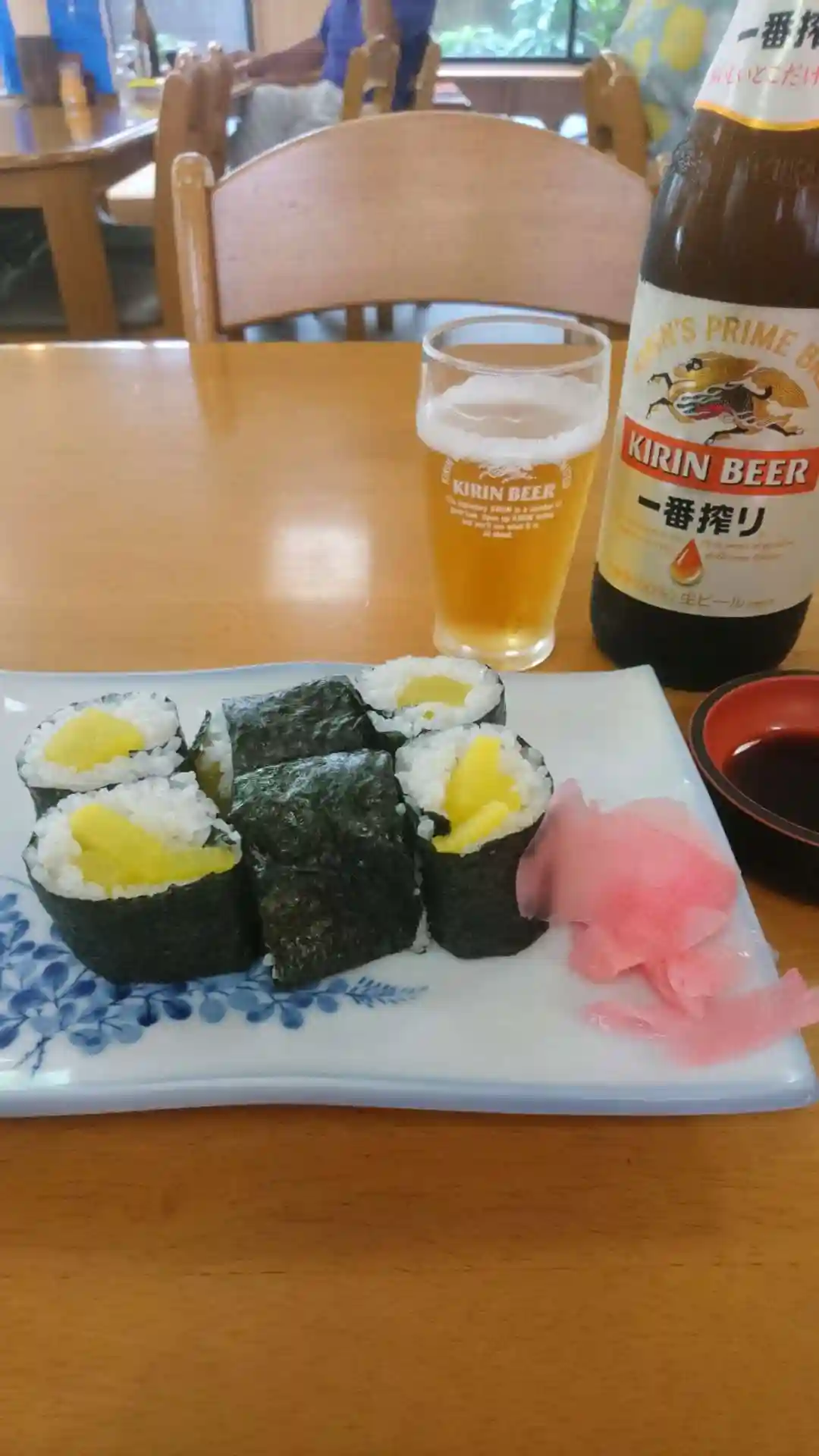 新香巻きとビール。