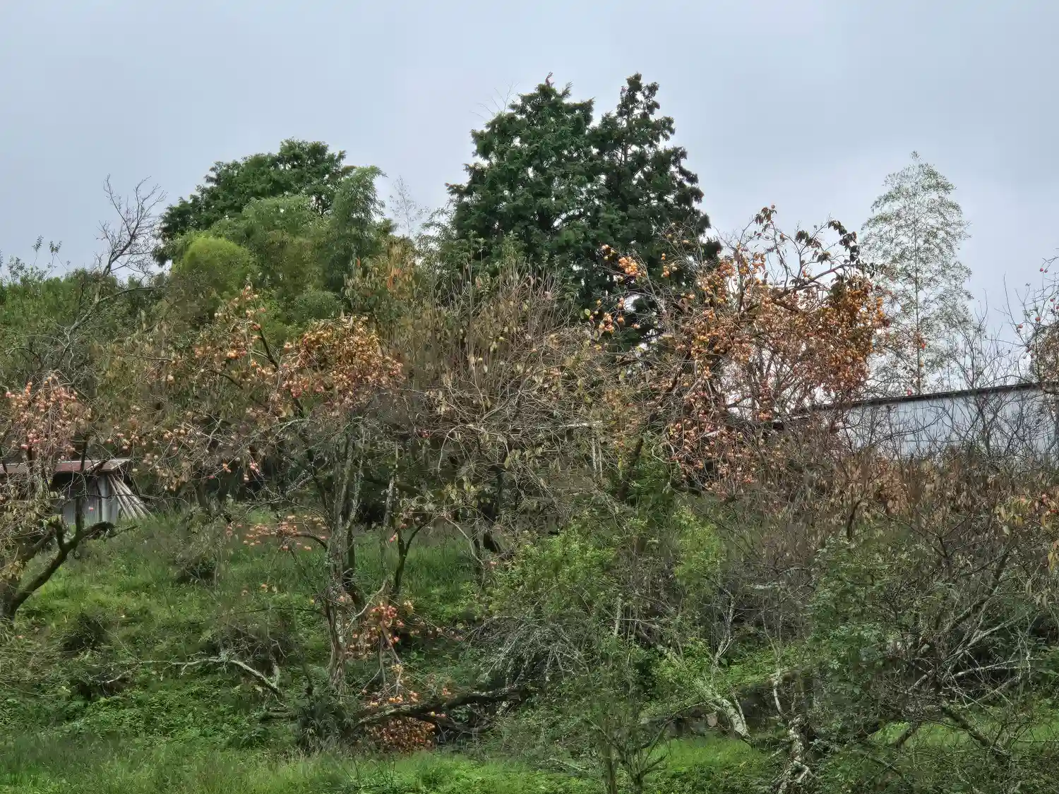 階段をおりたら目の前に大量の柿