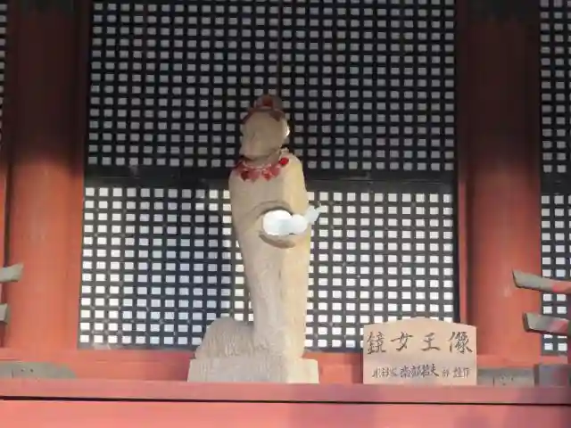 なで狛犬、女性はこちら吽形を撫でてください
