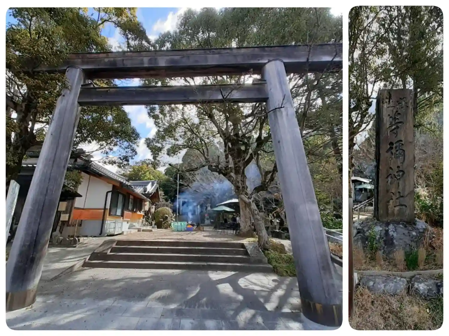石段途中に『夫婦杉』🌲。