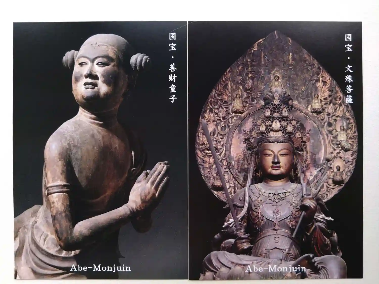 建仁三年(1203年)に大仏師である快慶によって造られ、右手には降魔の利剣(ごうまのりけん)、左手には慈悲慈愛を象徴する蓮華を持ち、獅子に騎乗されています。