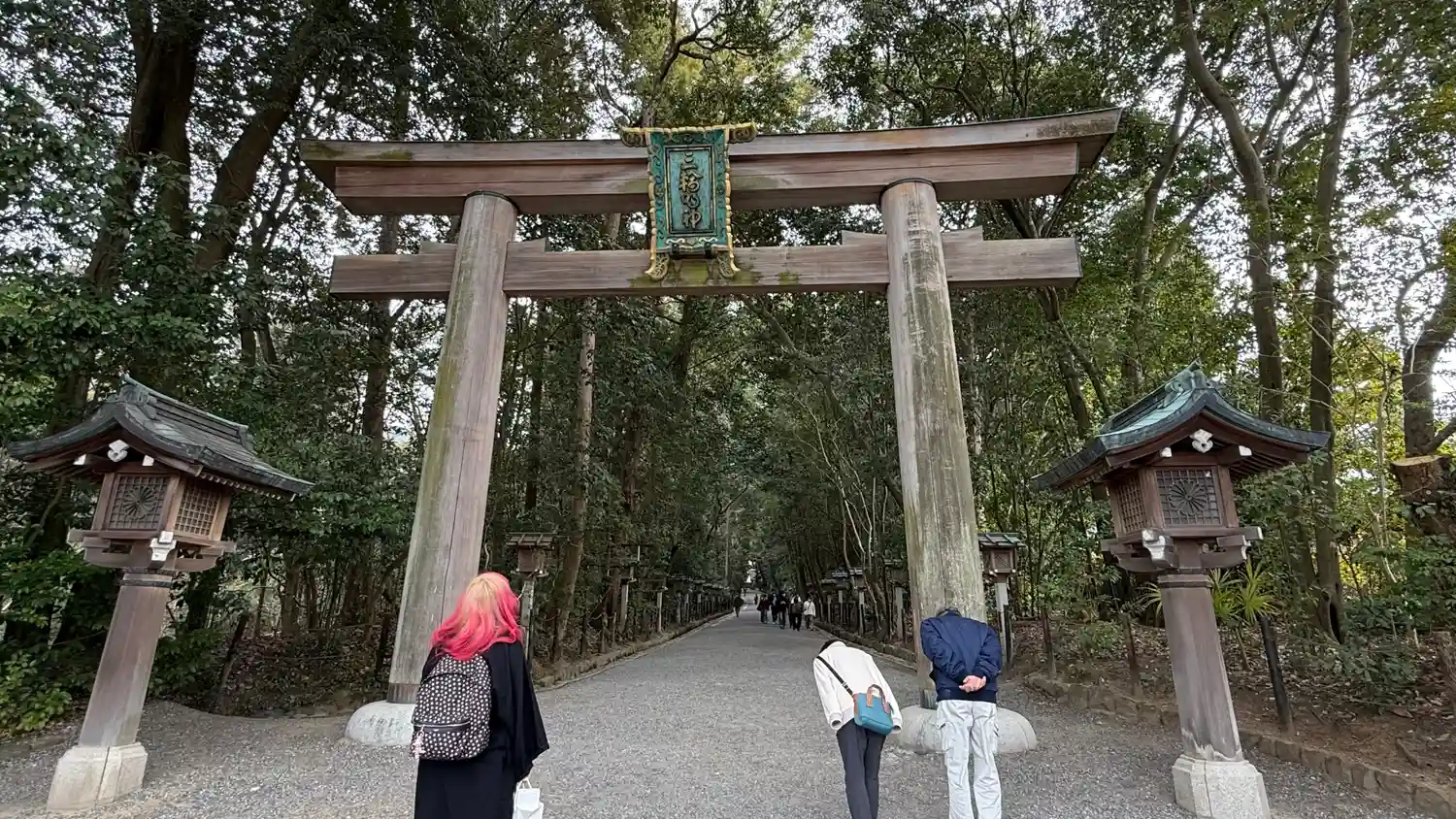 大鳥居は巨大。そこからつづく参道が素晴らしく、パワースポット丸出しで待ち構えている。三輪山に登るか…