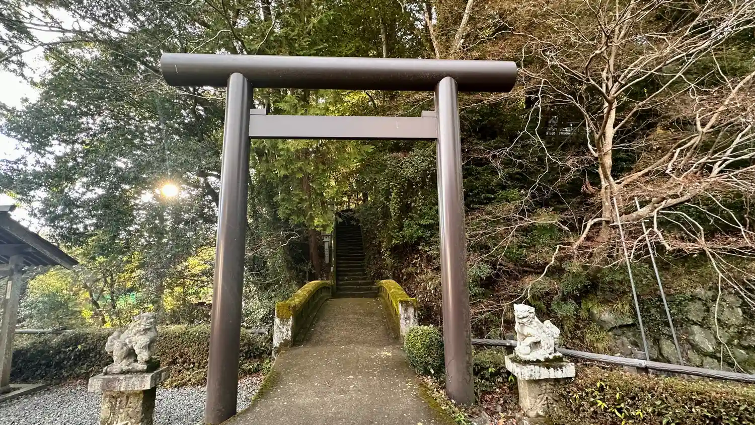 国道165号線牧にあります、鳥居を抜けると直角に参道が登っています距離は長くありません。