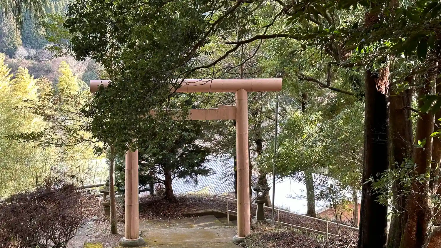 薄ピンク色の鳥居です、市杵島姫命 佐佐波多姫 と女神さまを祀っているからかと勝手に思い参拝しました…