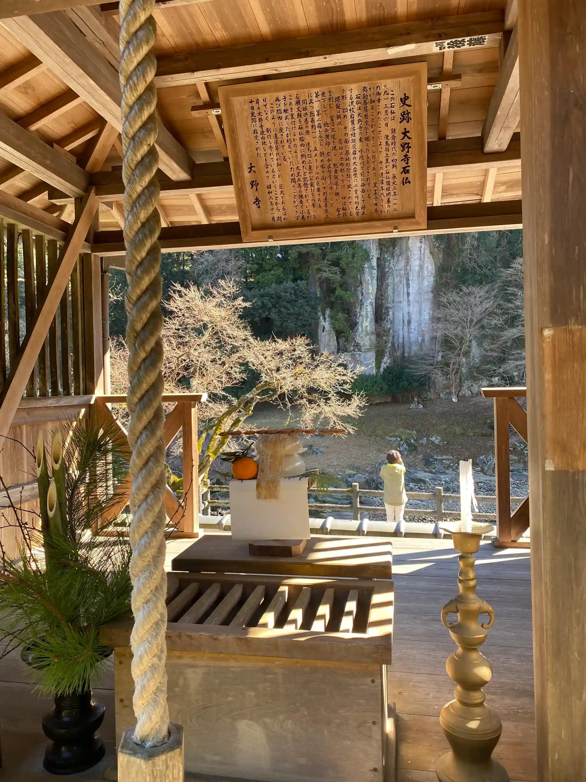 宇陀市にある、大野寺へ参拝。寺の横を流れている川の鳥に石仏があるお寺様です。