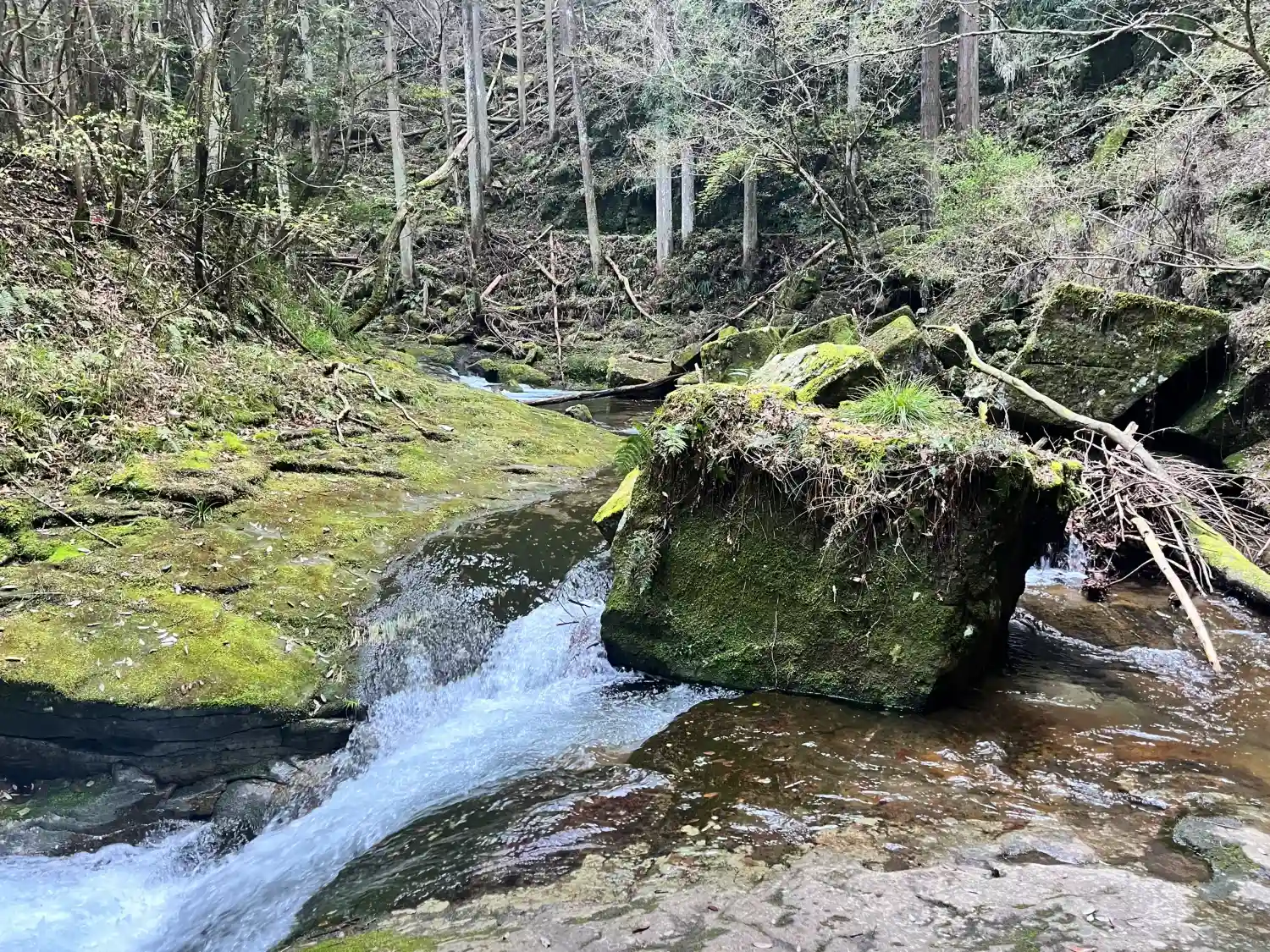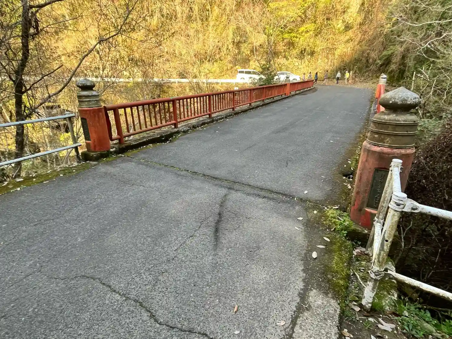 | 行き方 | R165号の室生大野から室生寺方面に(旧道)向かって約400mで室生路大橋を渡ってすぐに右折し、少し狭い道を室生ダム方面に向かいます。室生ダムを右手に見ながらさらに奥に進むと赤い龍鎮橋があり、その袂に遊歩道の入口があります(R165号の室生大野交差点から約2km) |