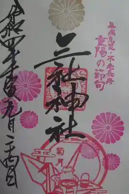 真ん中に三社神社の文字が書かれ、印が押されています。