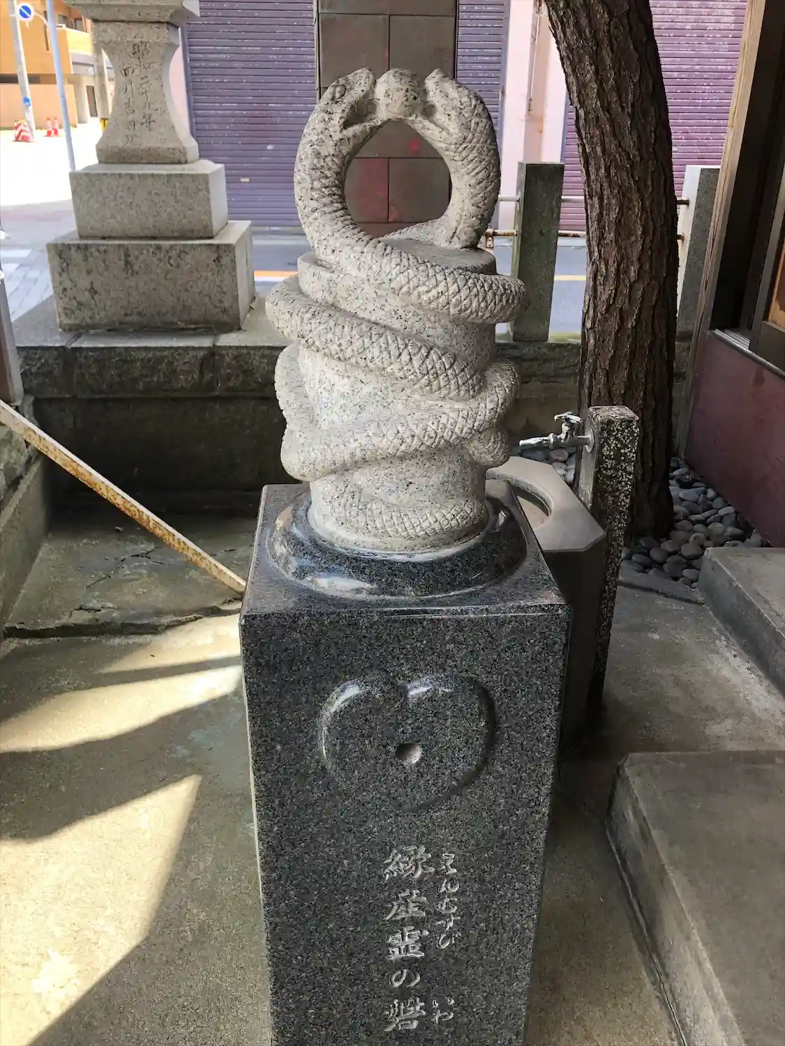 二頭の絡み合う白蛇の石像