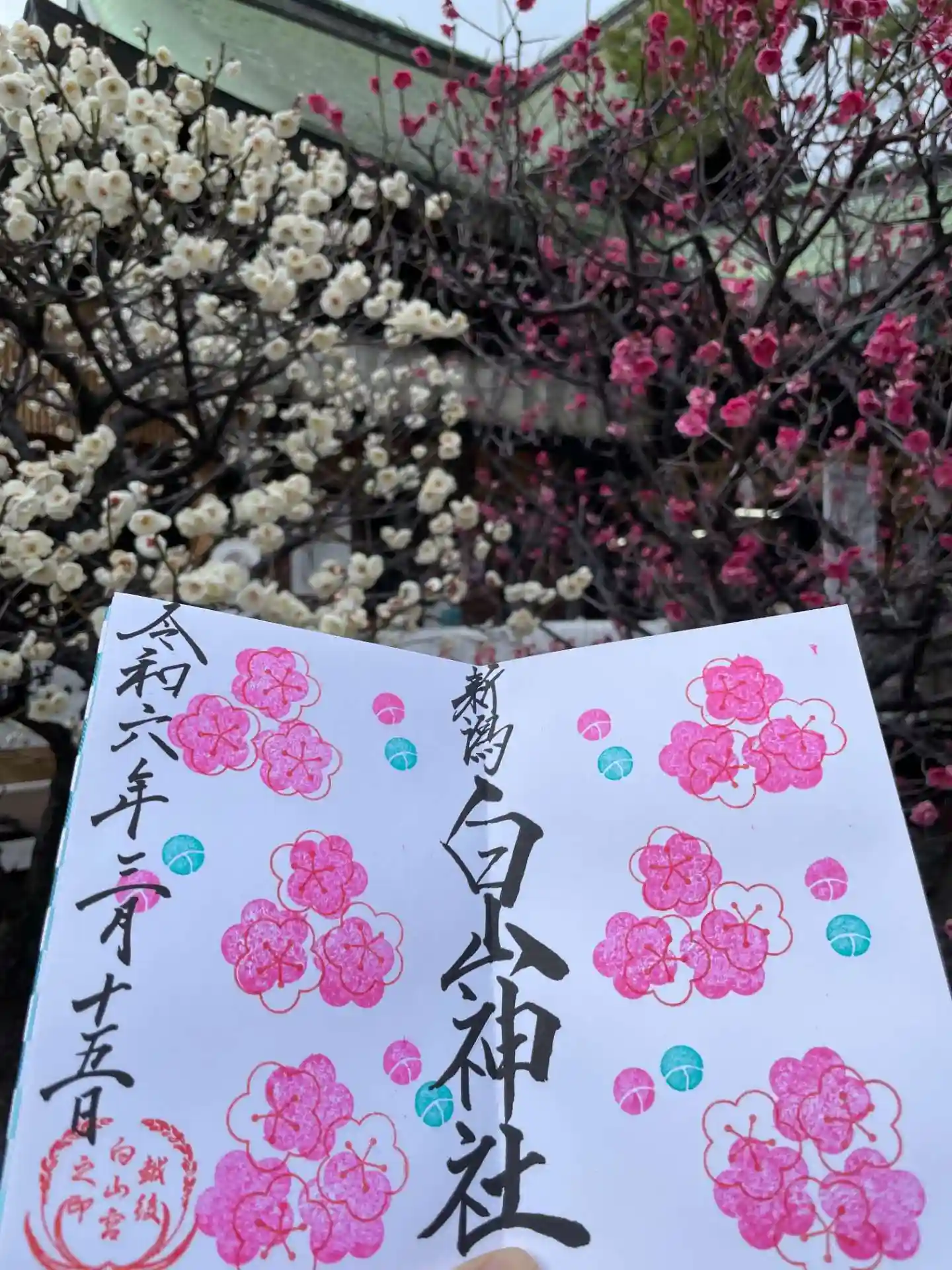 3月1日から新しい御朱印が始まります。季節の見開き御朱印【3月】梅です。
