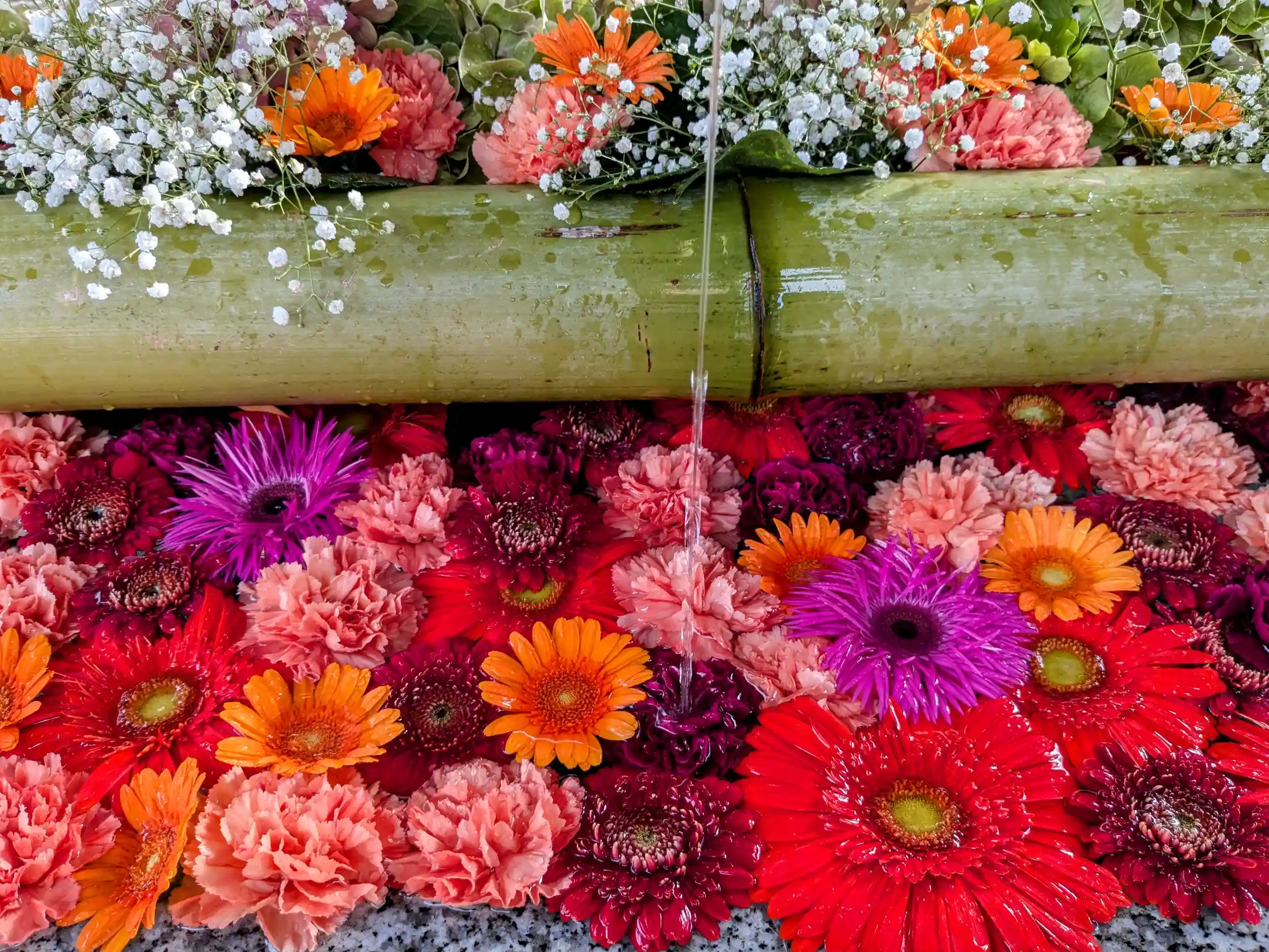 手水舎は美しい花手水😍