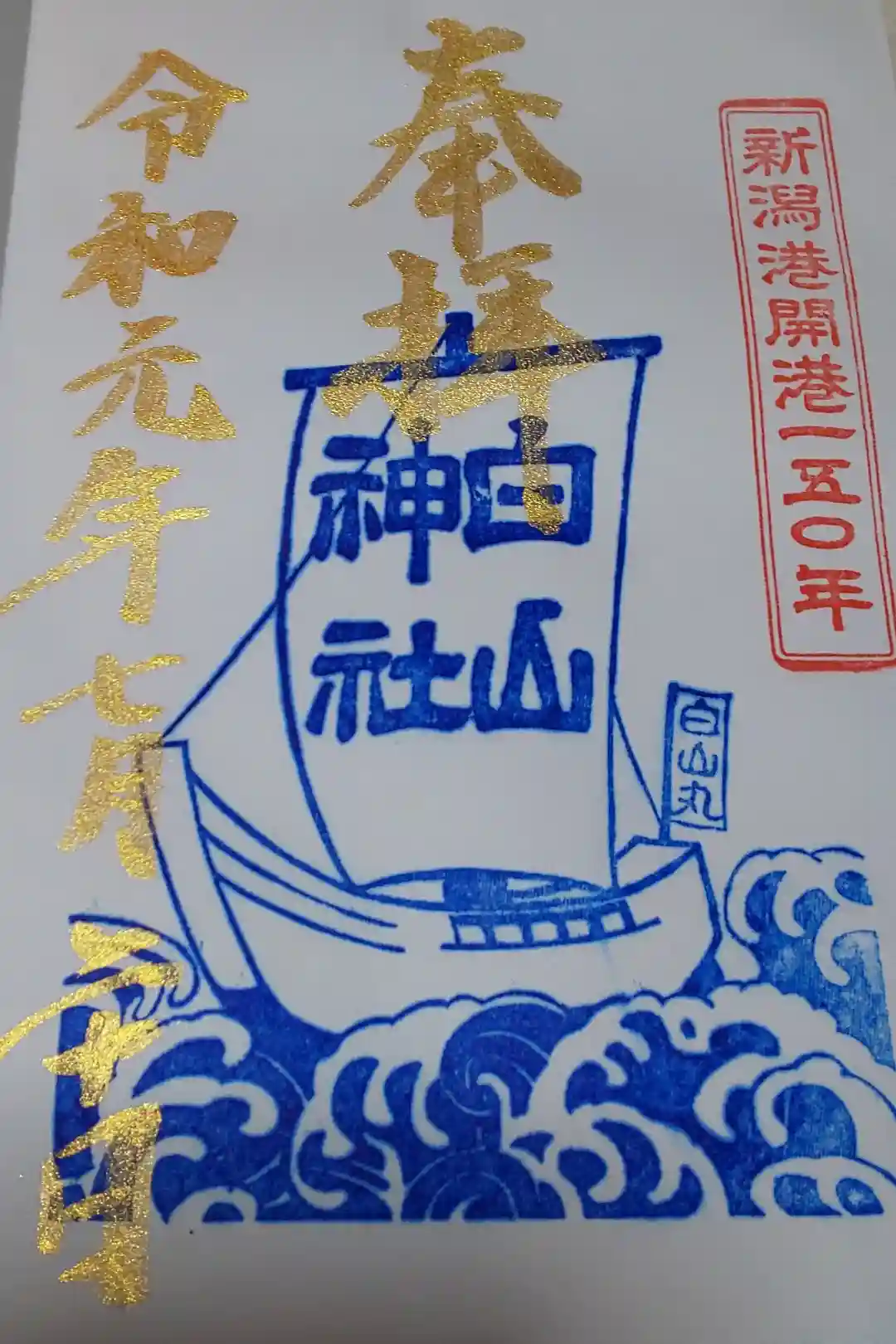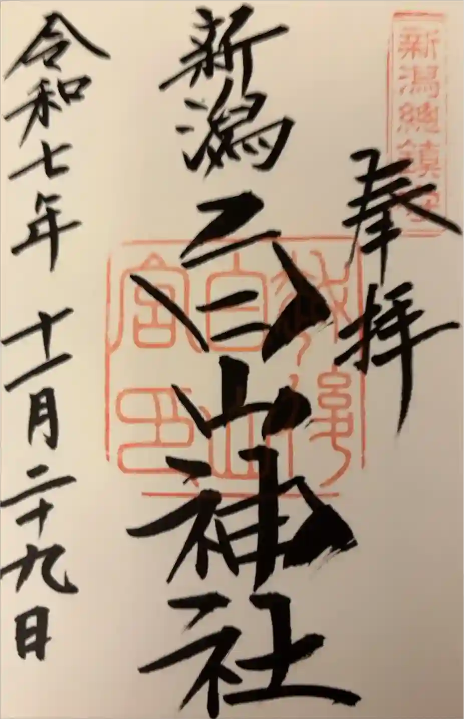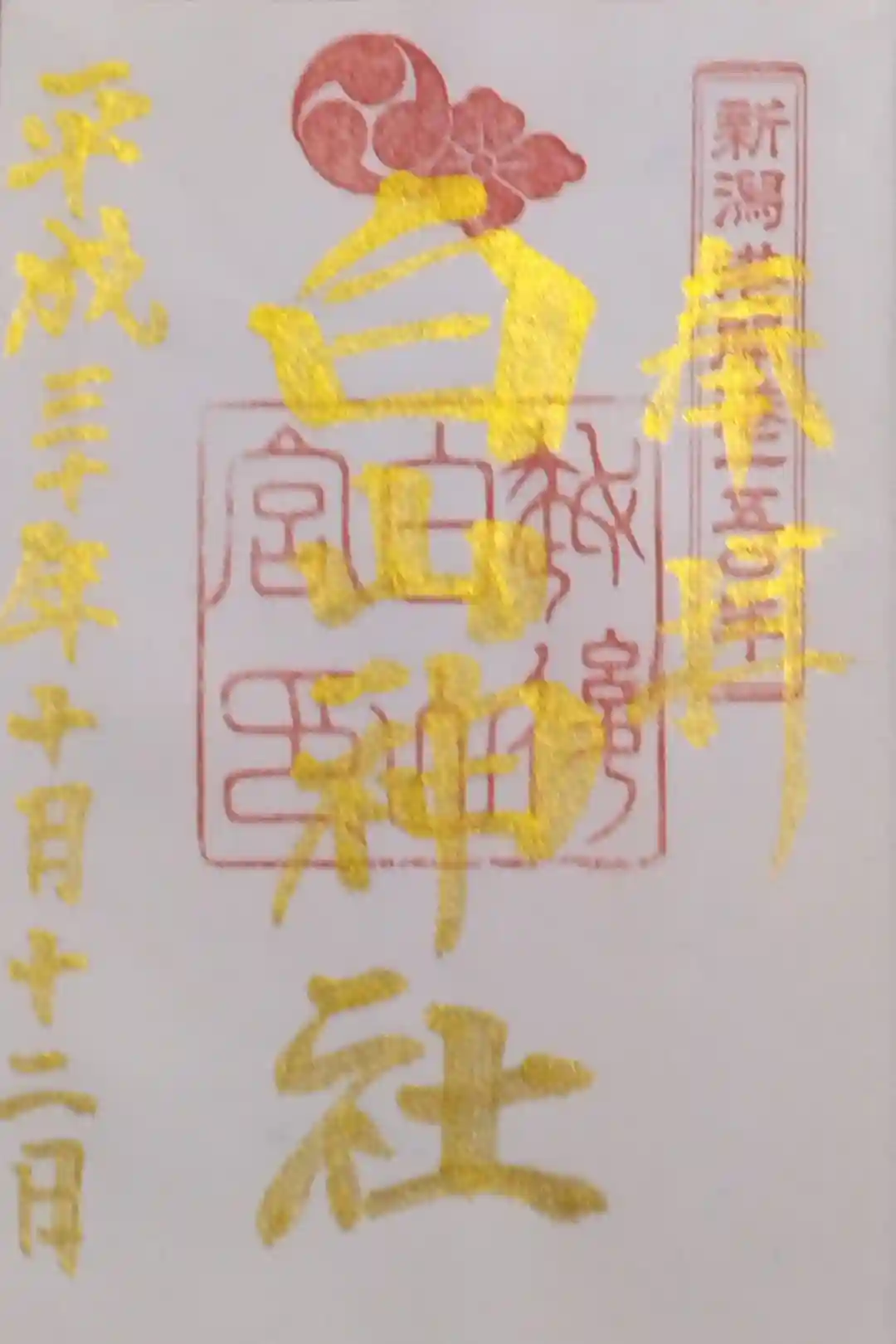 真ん中に新潟白山神社と書かれ、真ん中に社印、右上に新潟総鎮守の印が押されています。