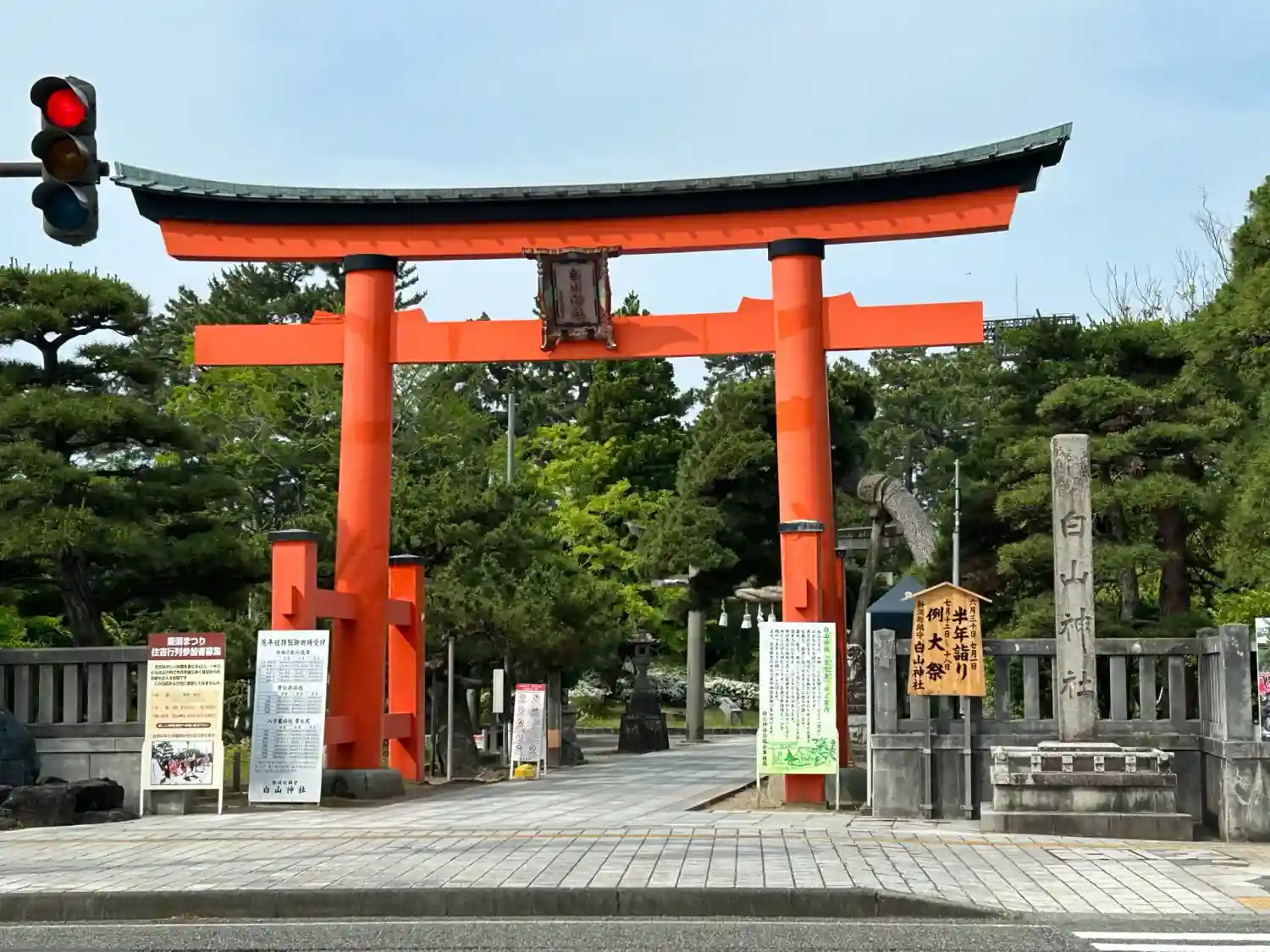 白山神社の大鳥居と社号標
