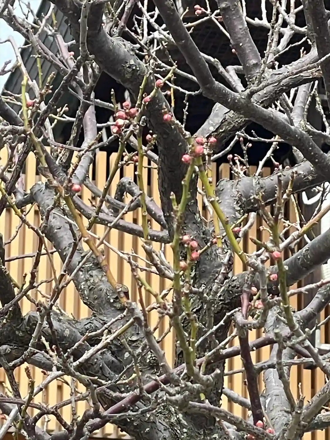 あたたかい日差しで、梅のつぼみがふくらんできました。春は着実に近づいています。