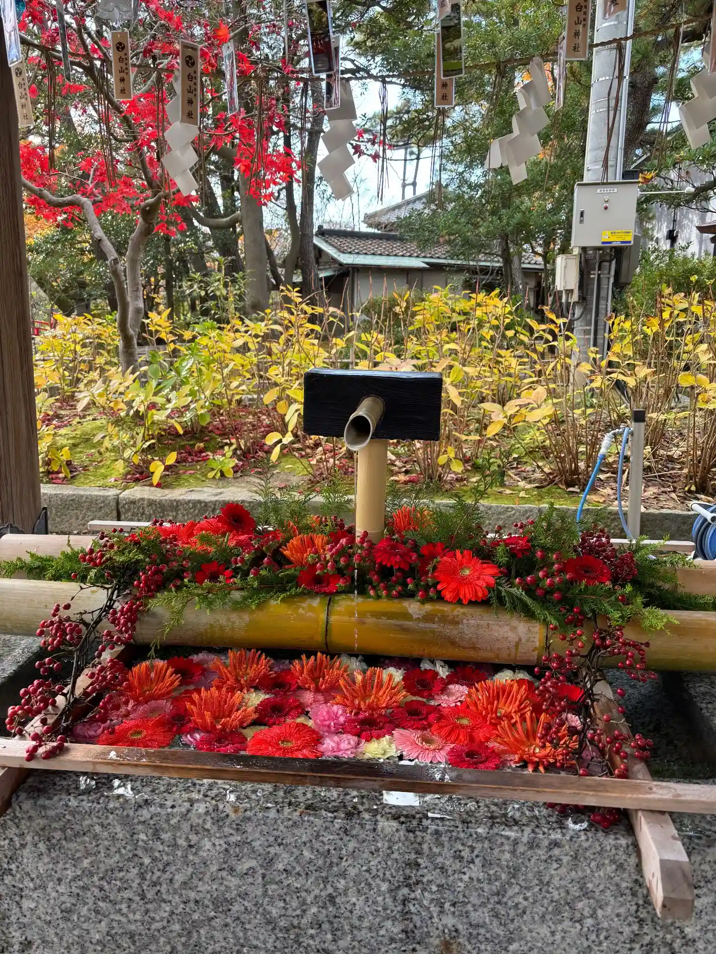 11月1日。境内もかなり紅葉が進んでいます。恒例の越の花飾りが白山公園燕喜館で行われています。本日…