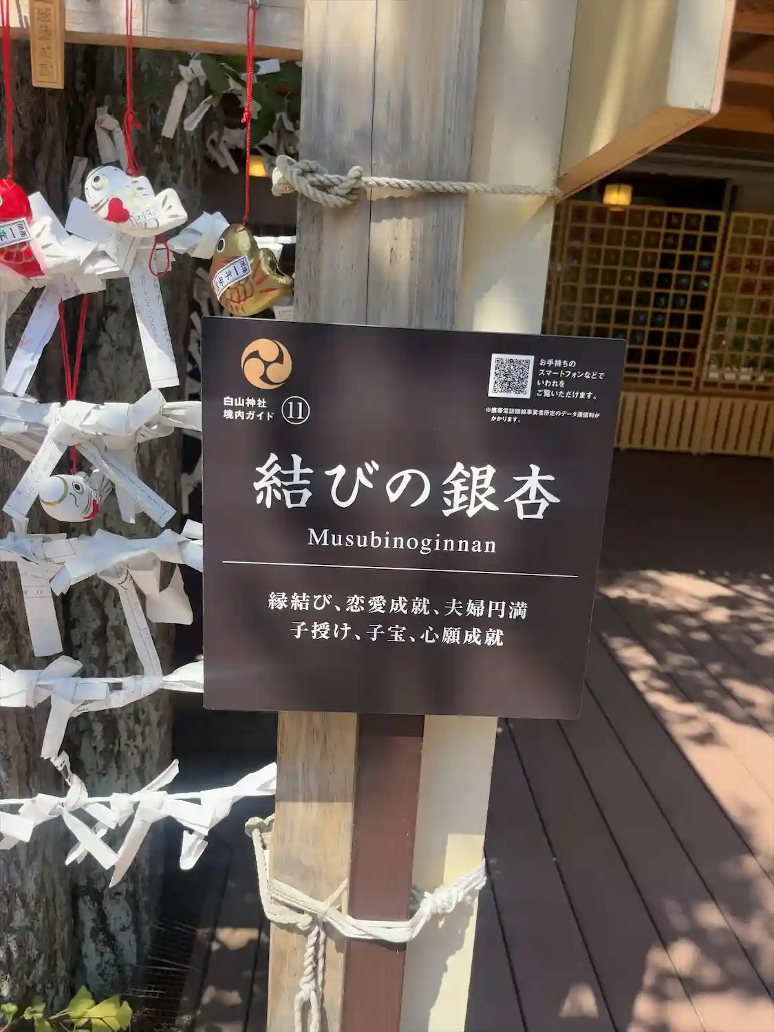 ご主祭神 菊理媛大神 縁結びのご利益があると評判 「結」「おにぎり」の絵馬も珍しい、御神木は「む…