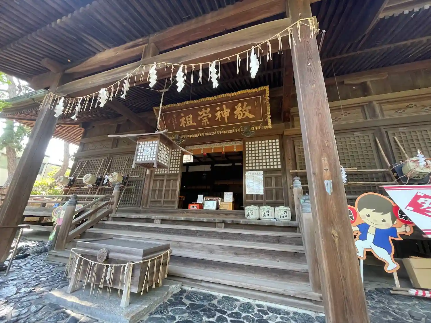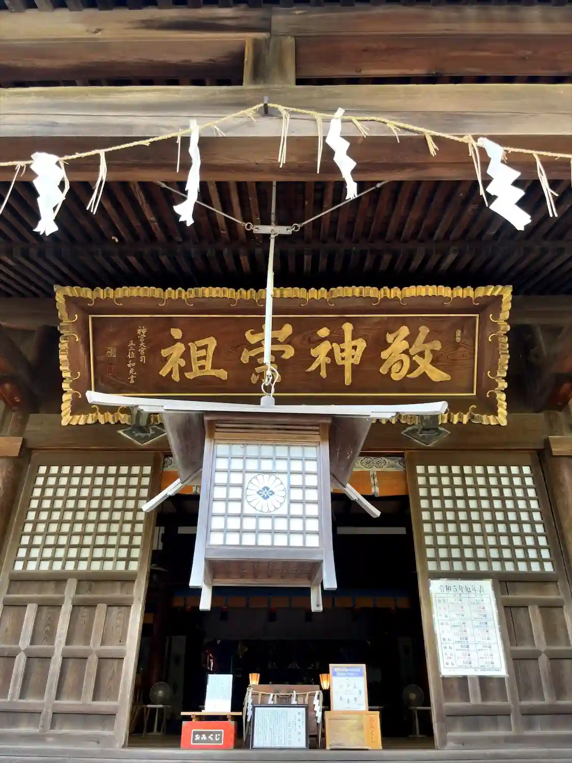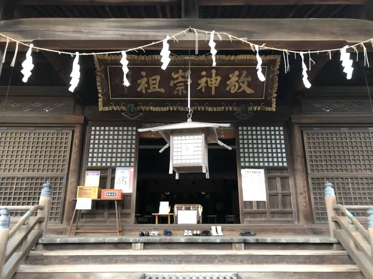 扁額には「敬神崇祖」と書かれています。
