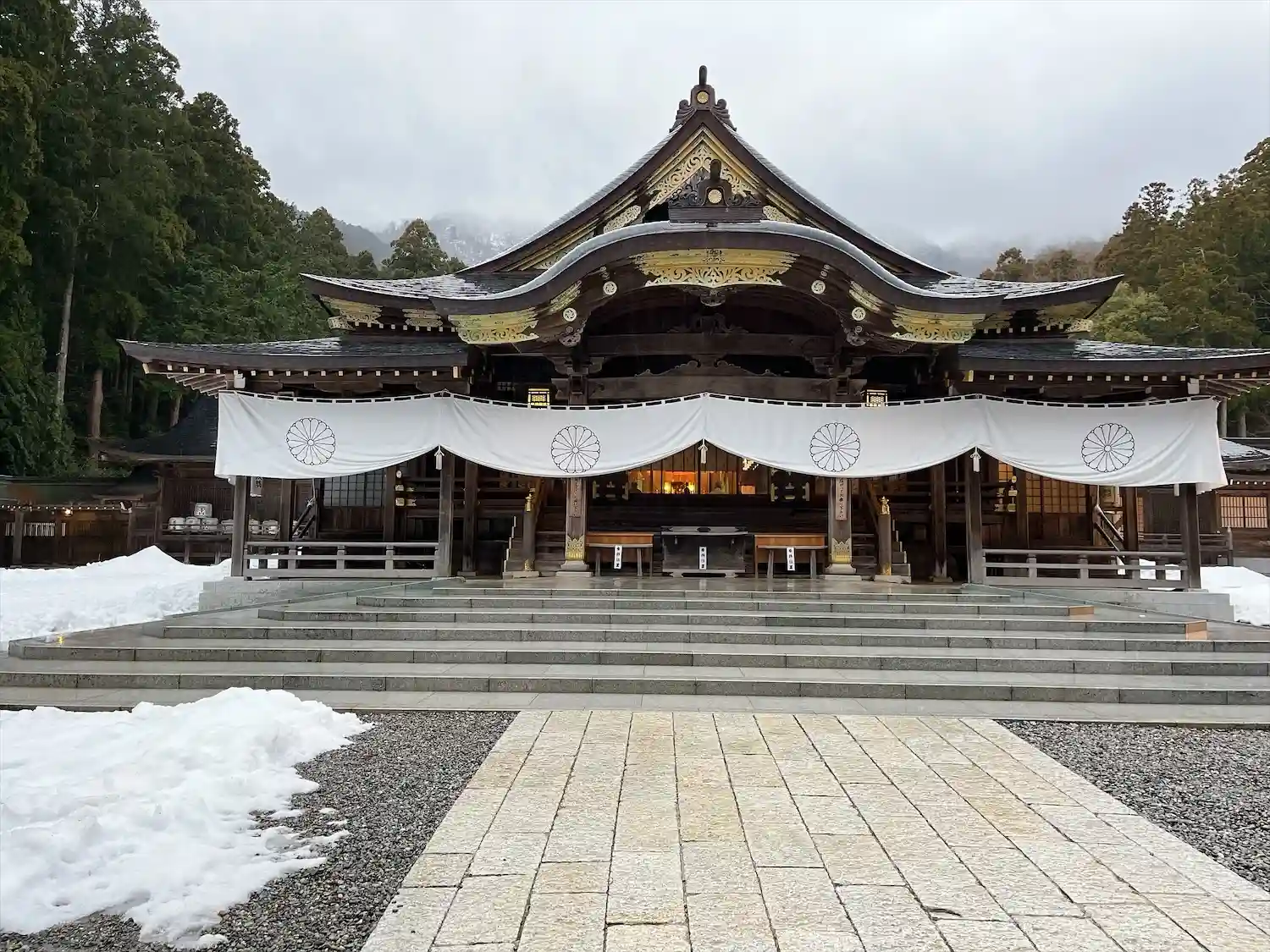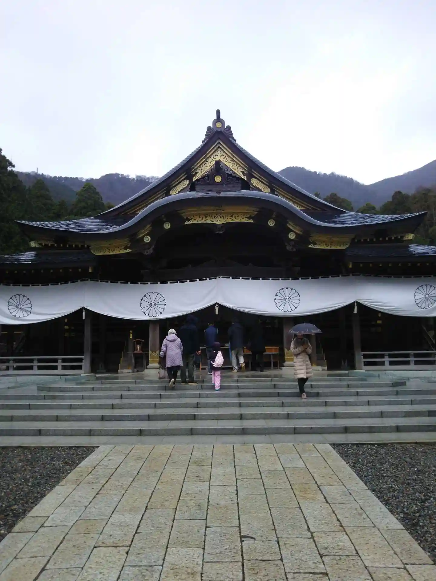 天気が少し良くなったので、もう一度<隋神門>と<拝殿>を見に行く。<隋神門>もさっきとは光の当たり具合が違うようだ。