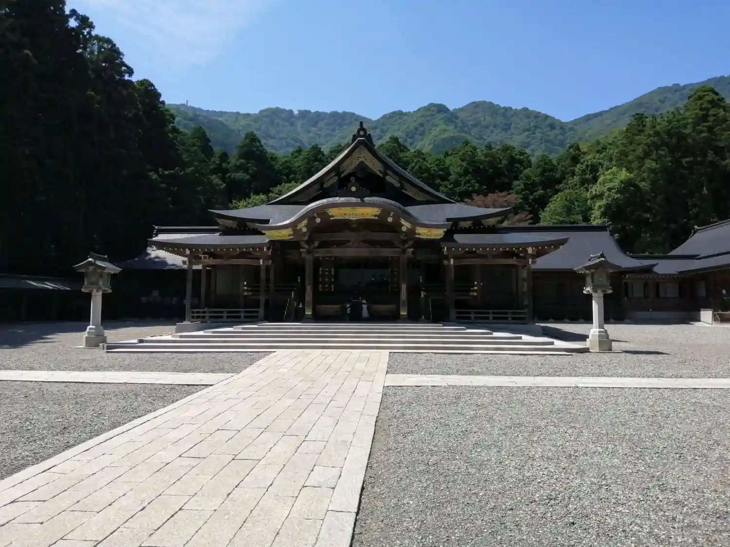 隋神門をくぐると、真正面に<社殿>。隋神門から社殿までは距離があって、それでも大きく見える。