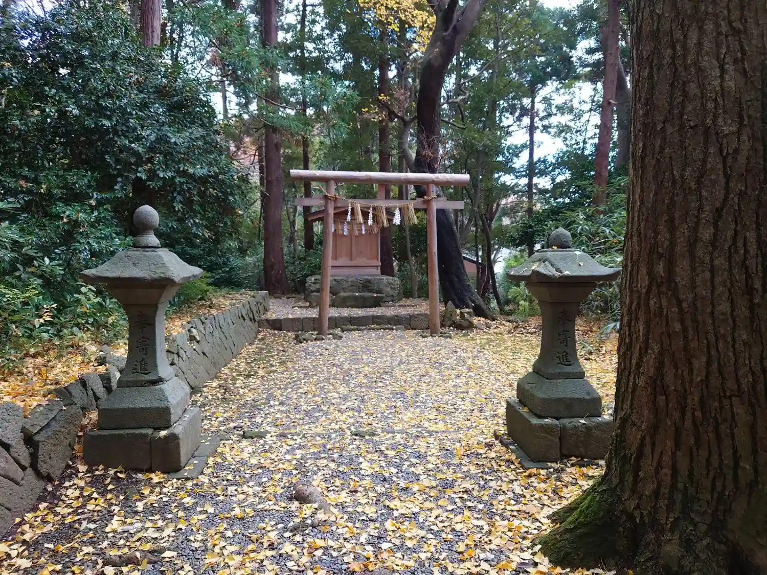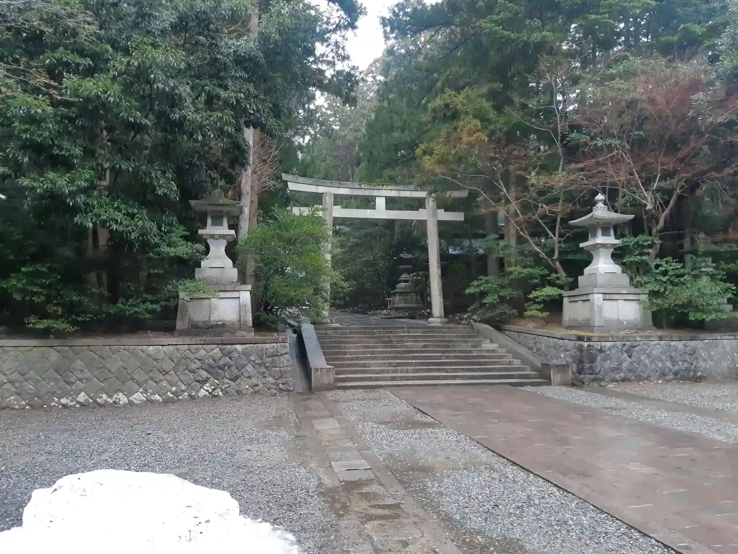 雪対策で真ん中の鳥居が浮いています