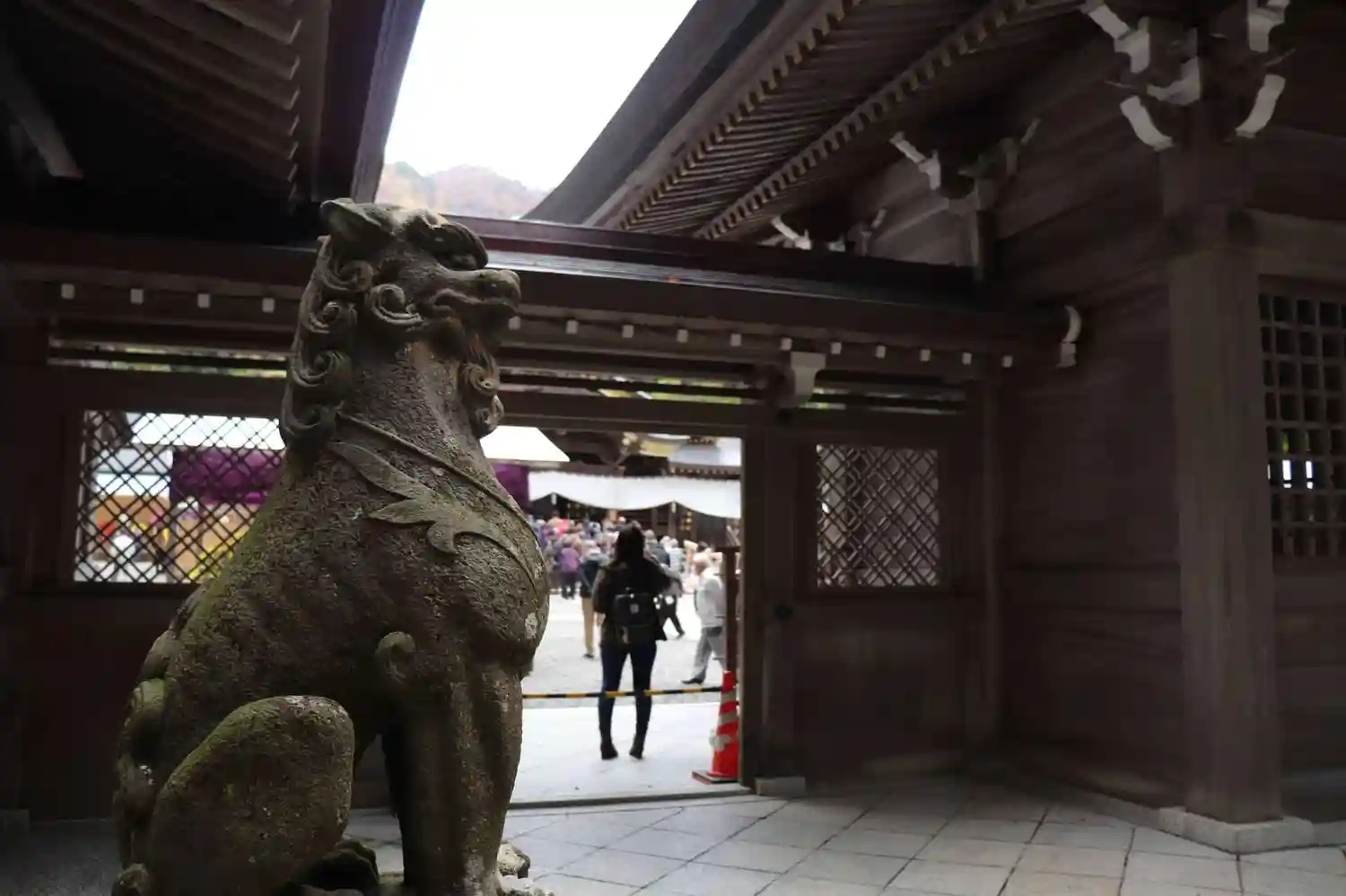 狛犬さんが端っこと端っこにいて、ちょっと遠すぎるので…