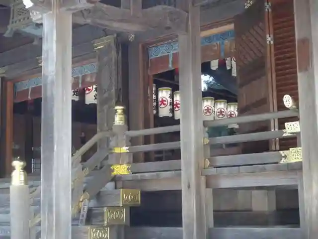 拝殿の中の提灯が見事。
