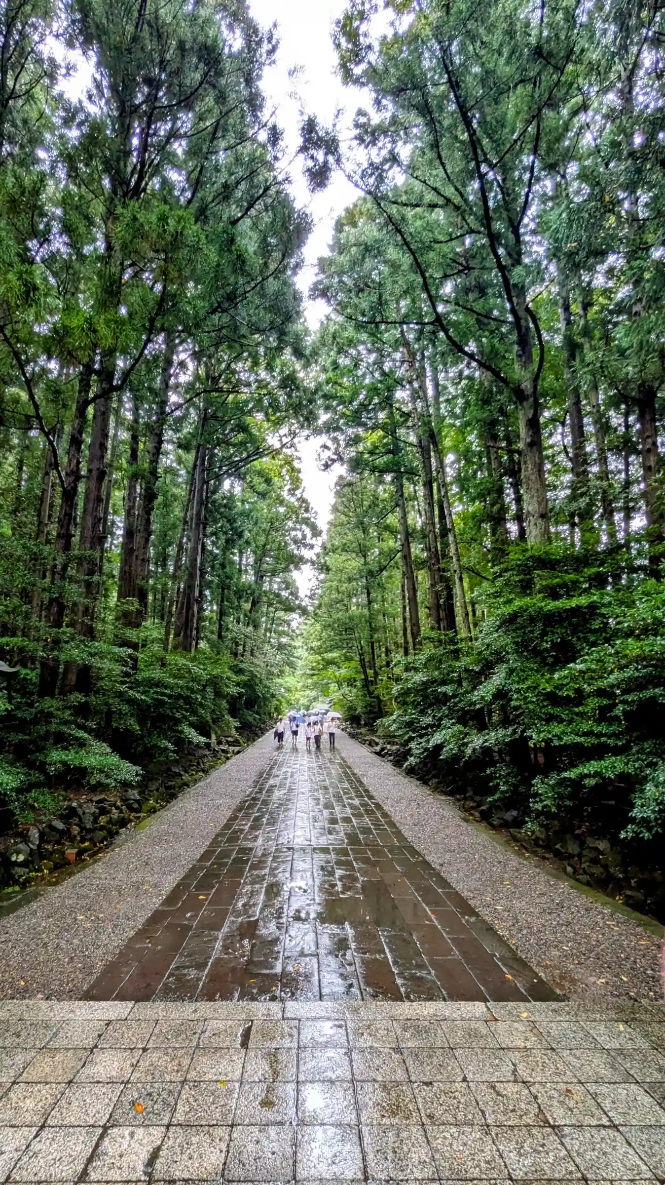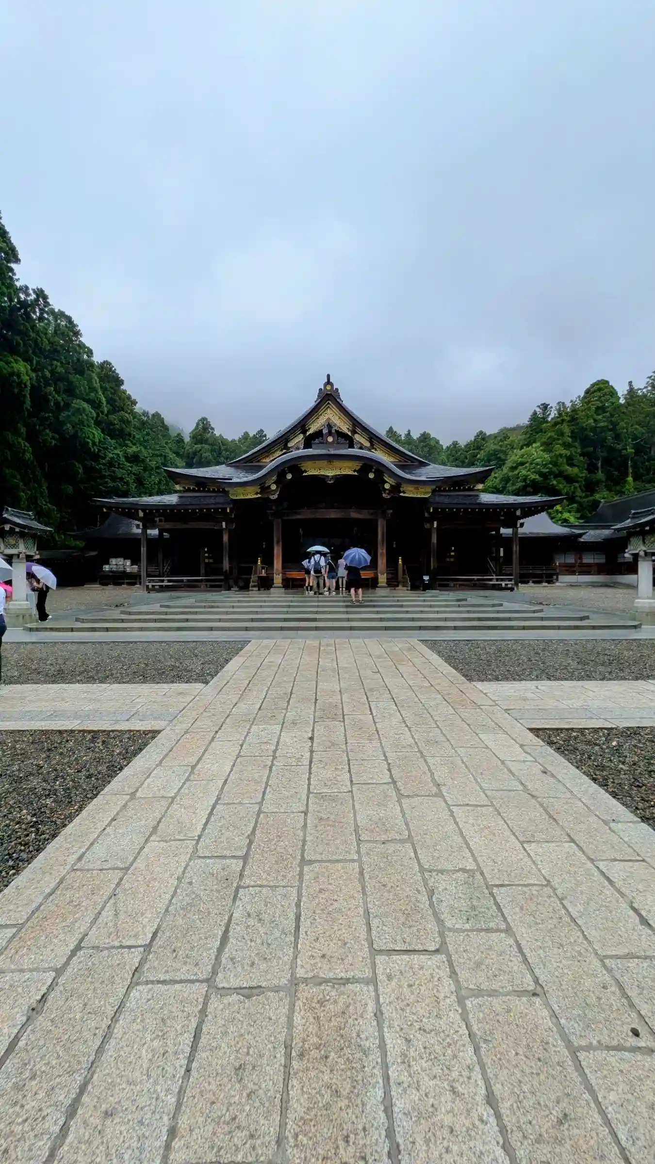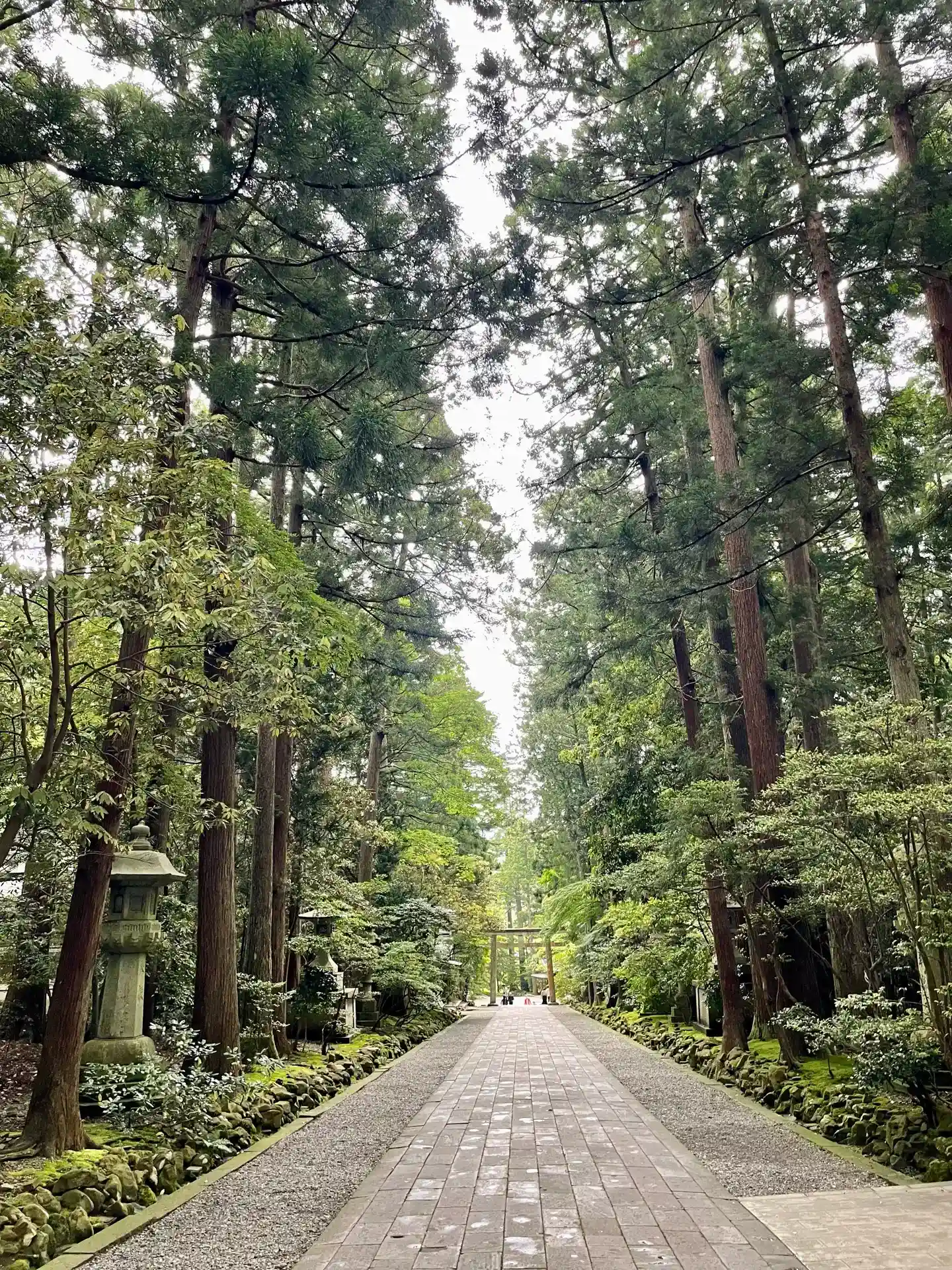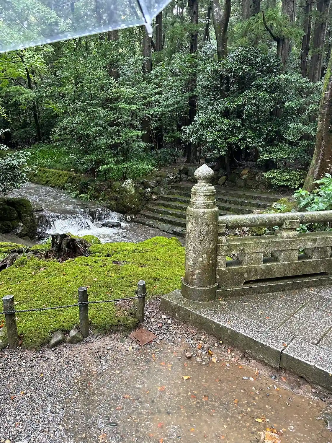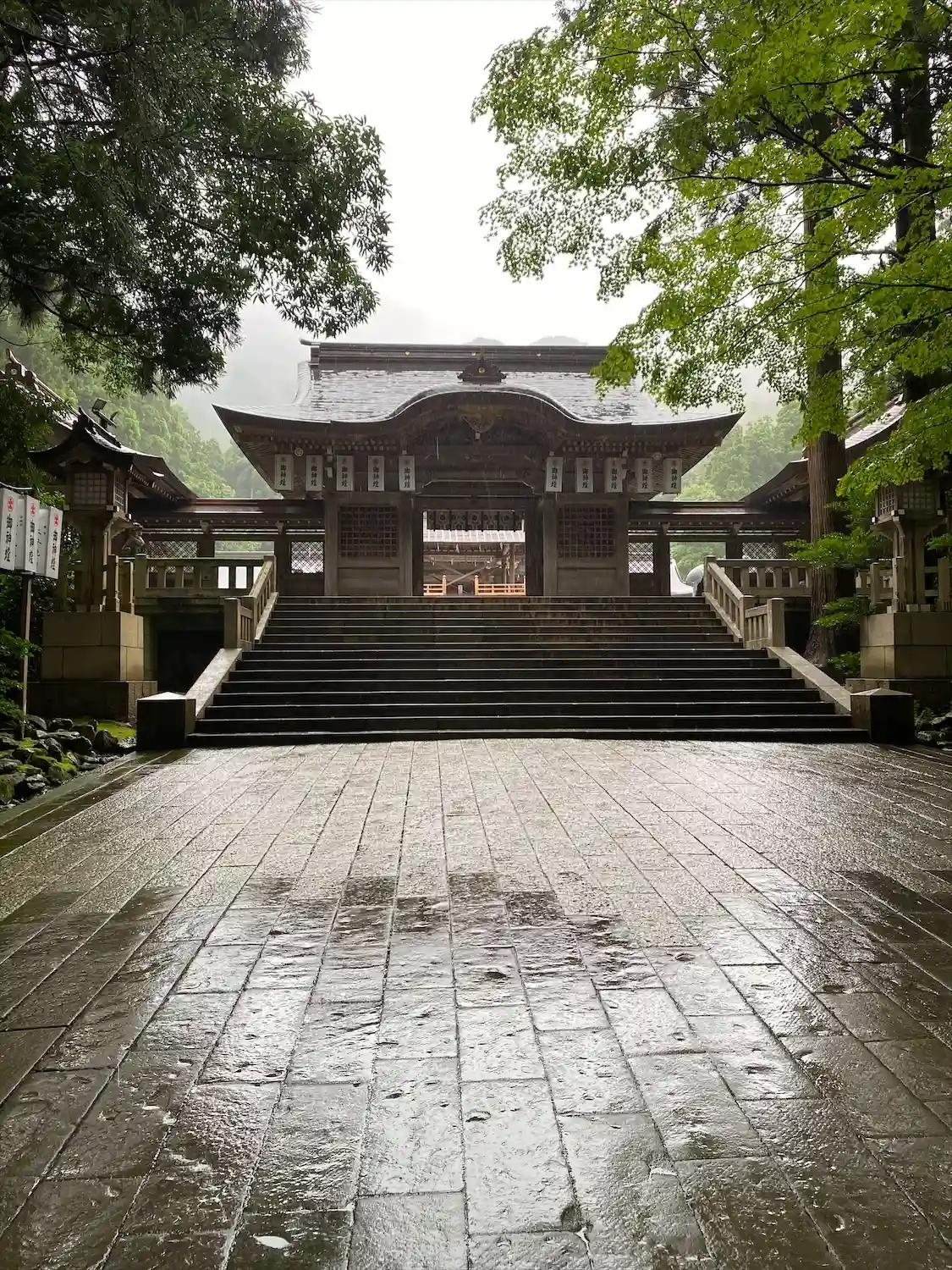 霧雨が降ったり止んだりの天気で、石の参道がしっとり濡れていて良い雰囲気。