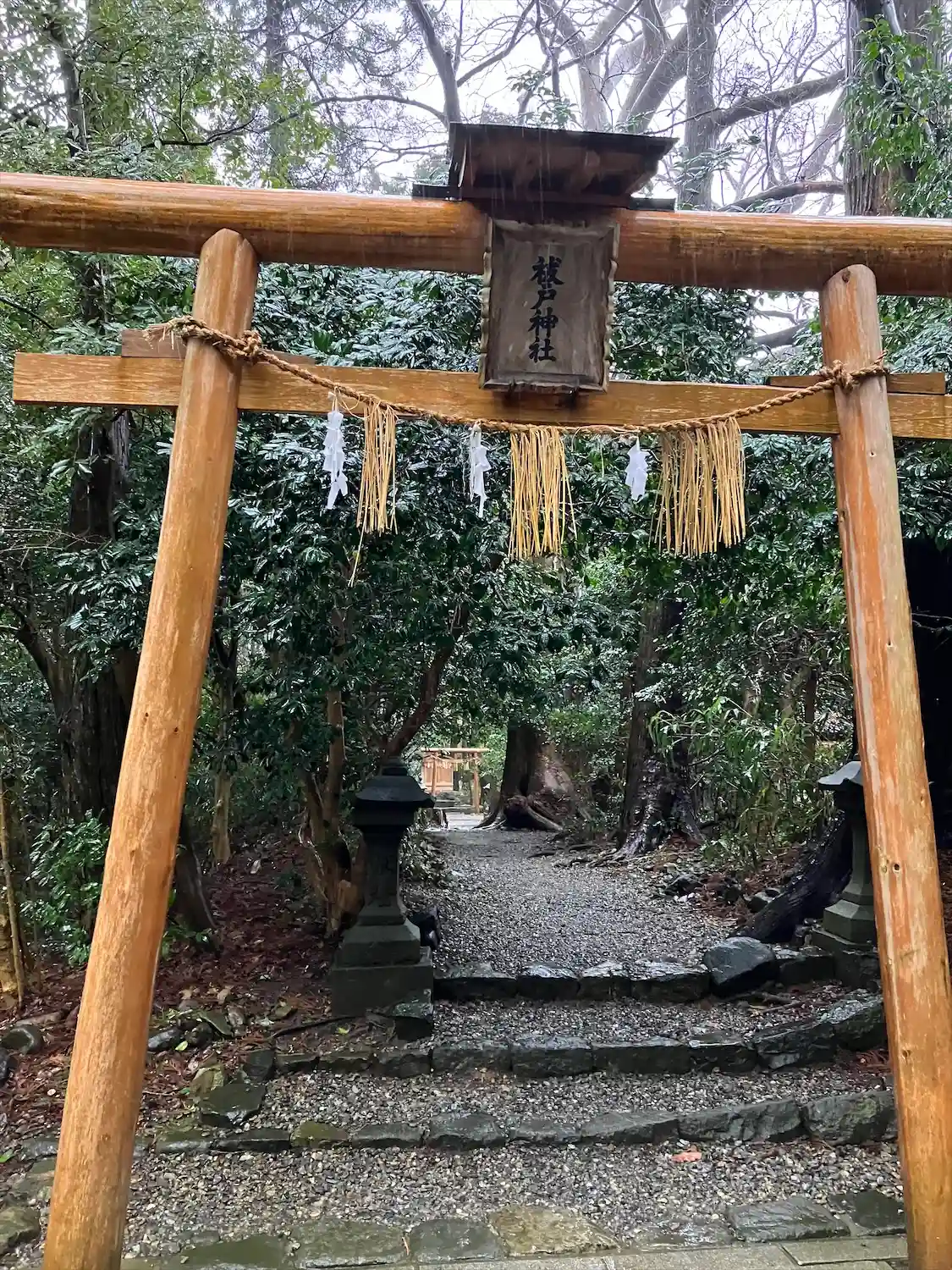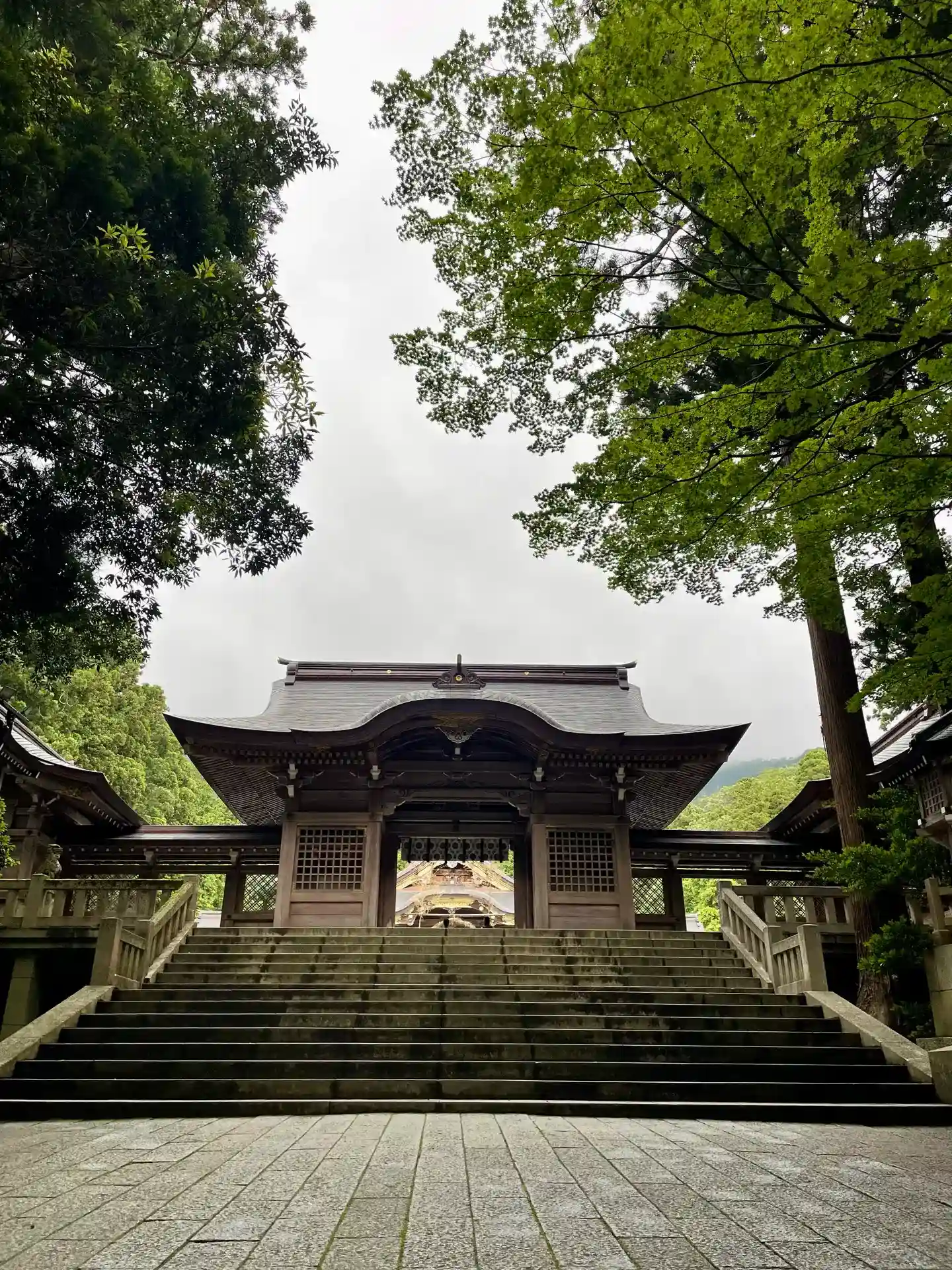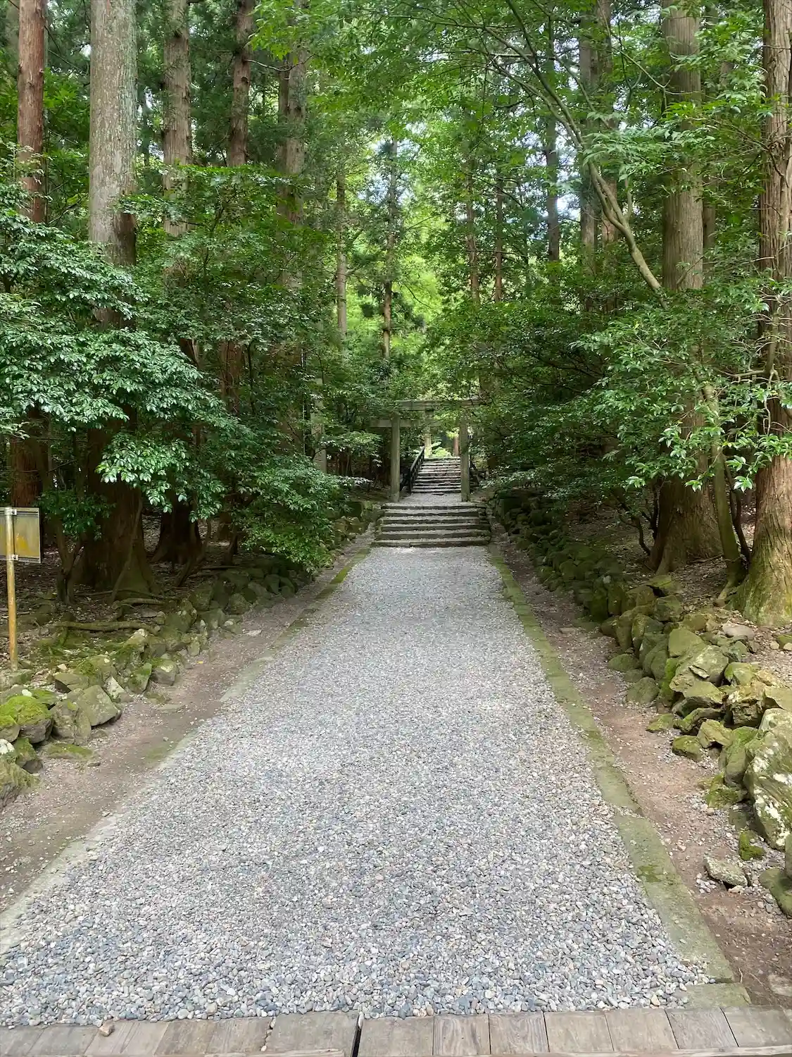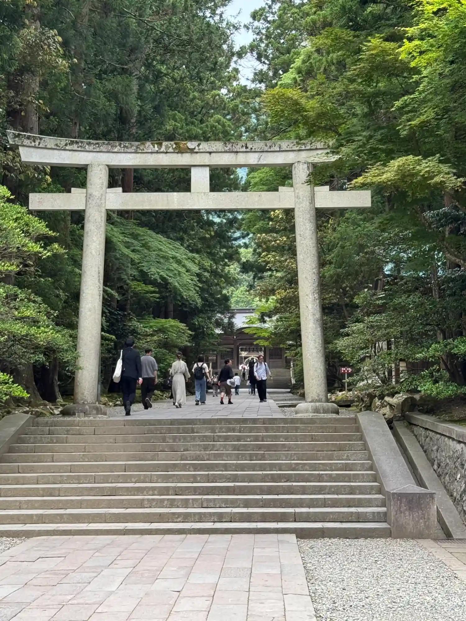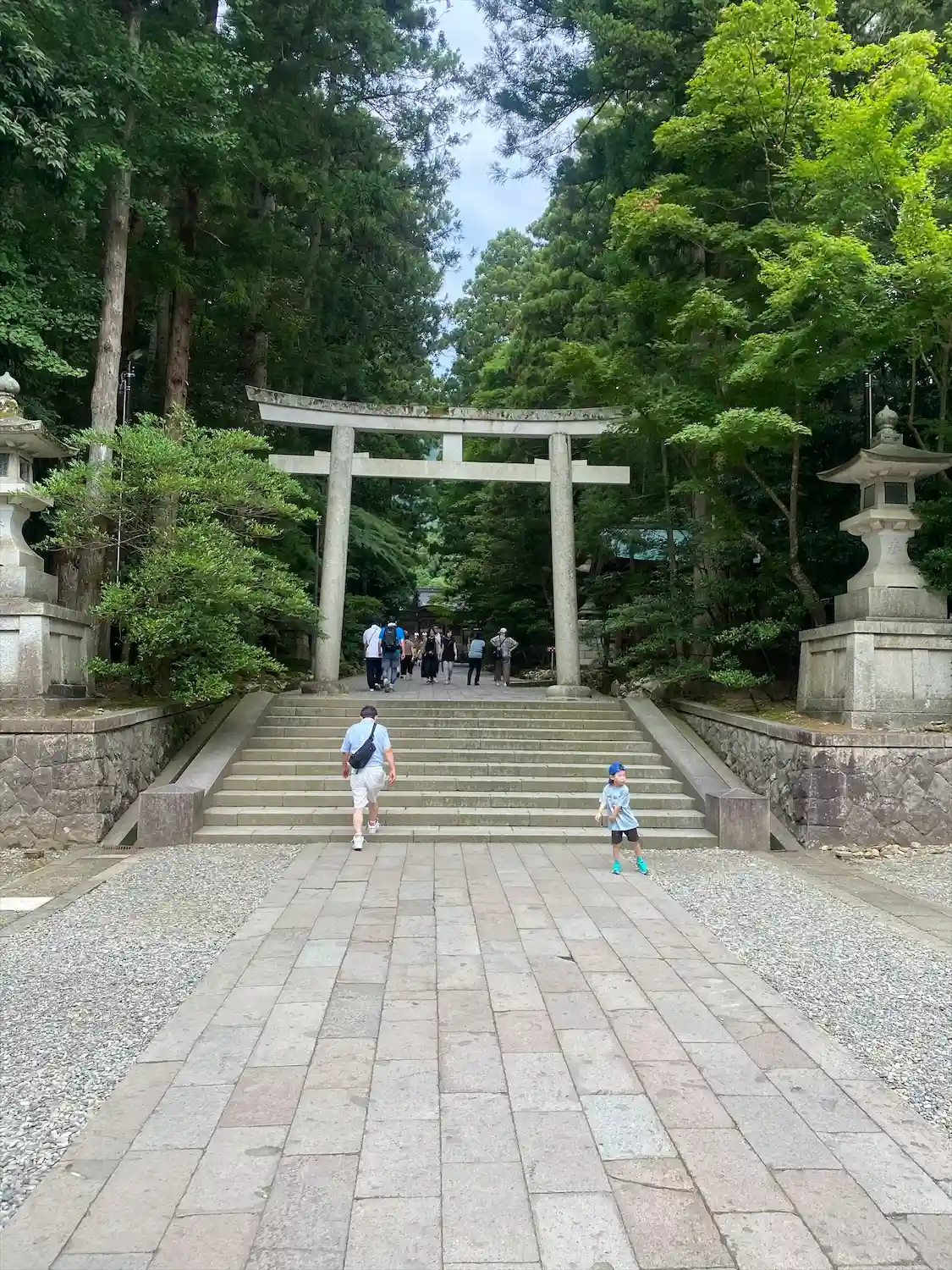 霧雨が降ったり止んだりの天気で、石の参道がしっとり濡れていて良い雰囲気。