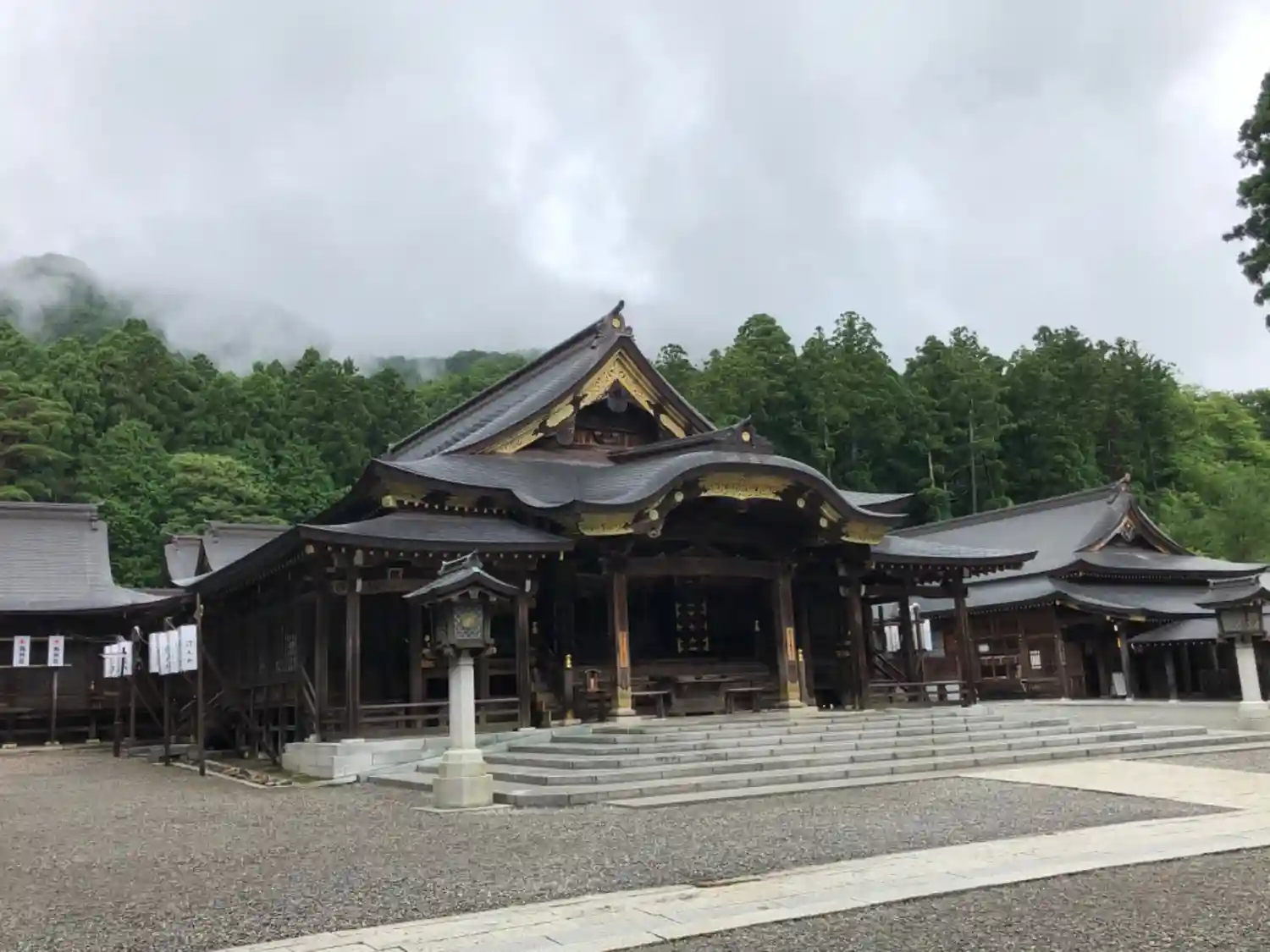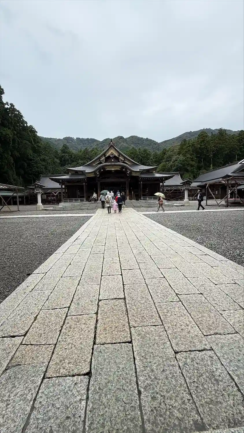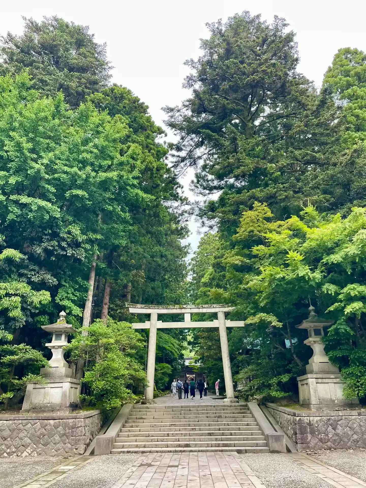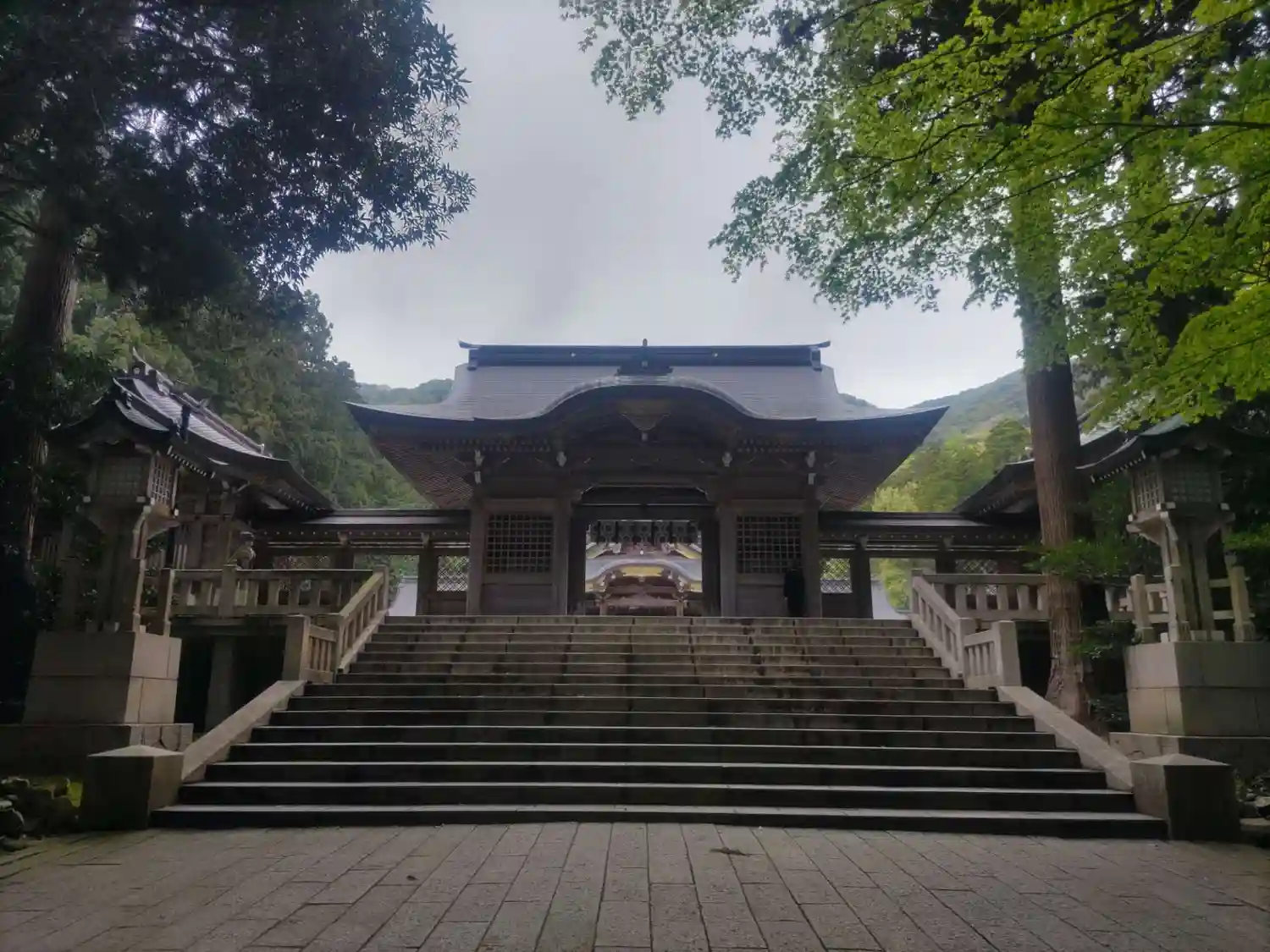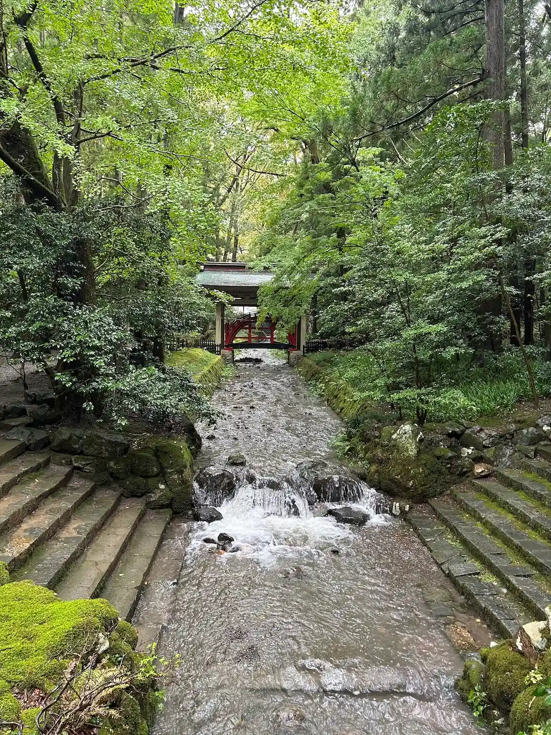 霧雨が降ったり止んだりの天気で、石の参道がしっとり濡れていて良い雰囲気。