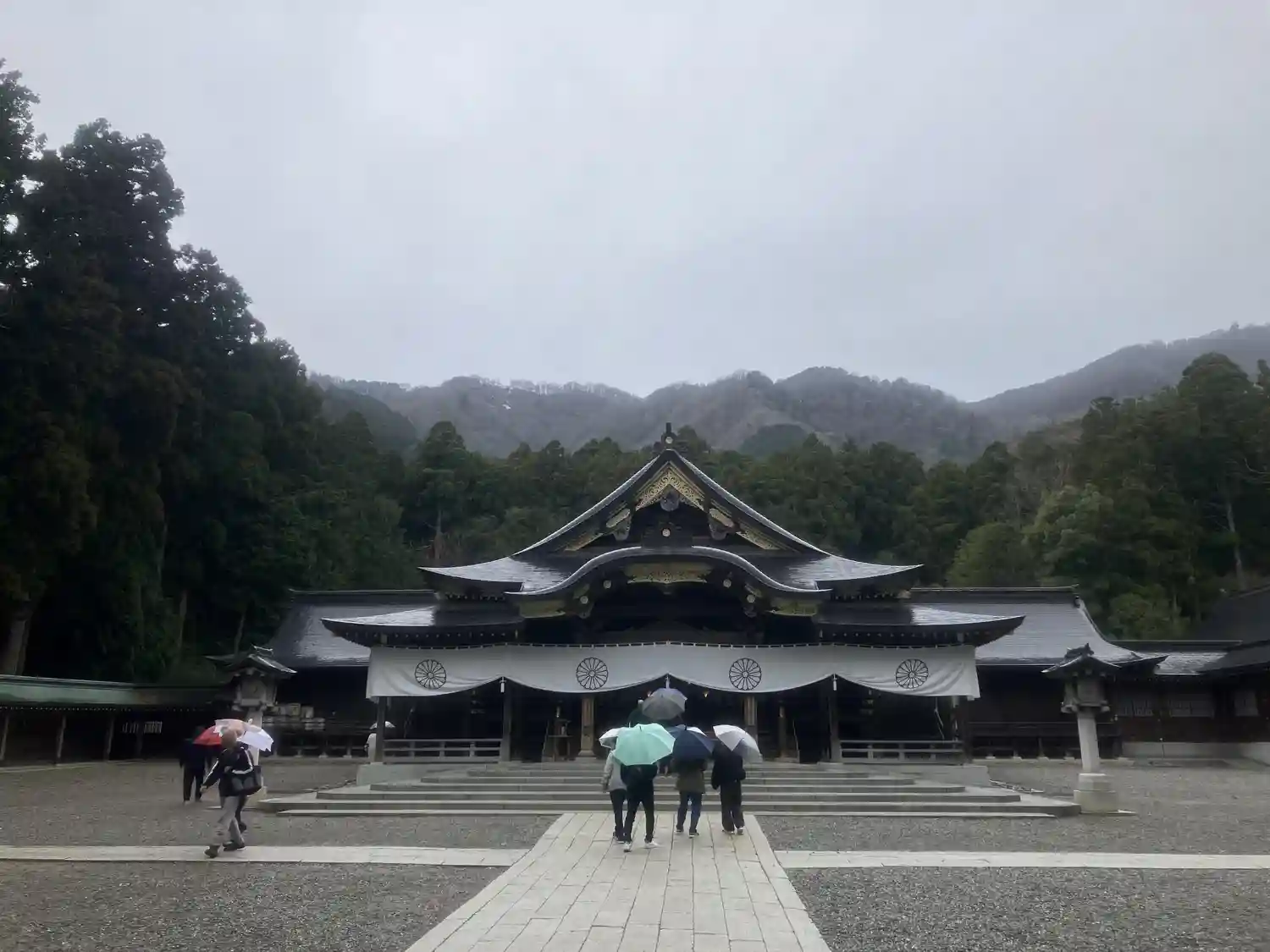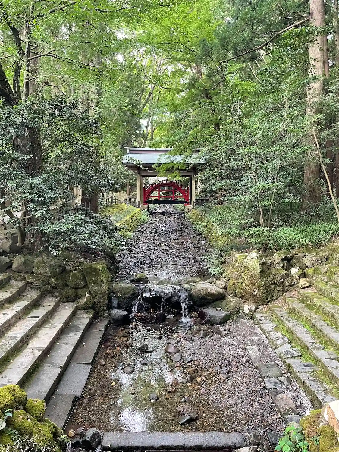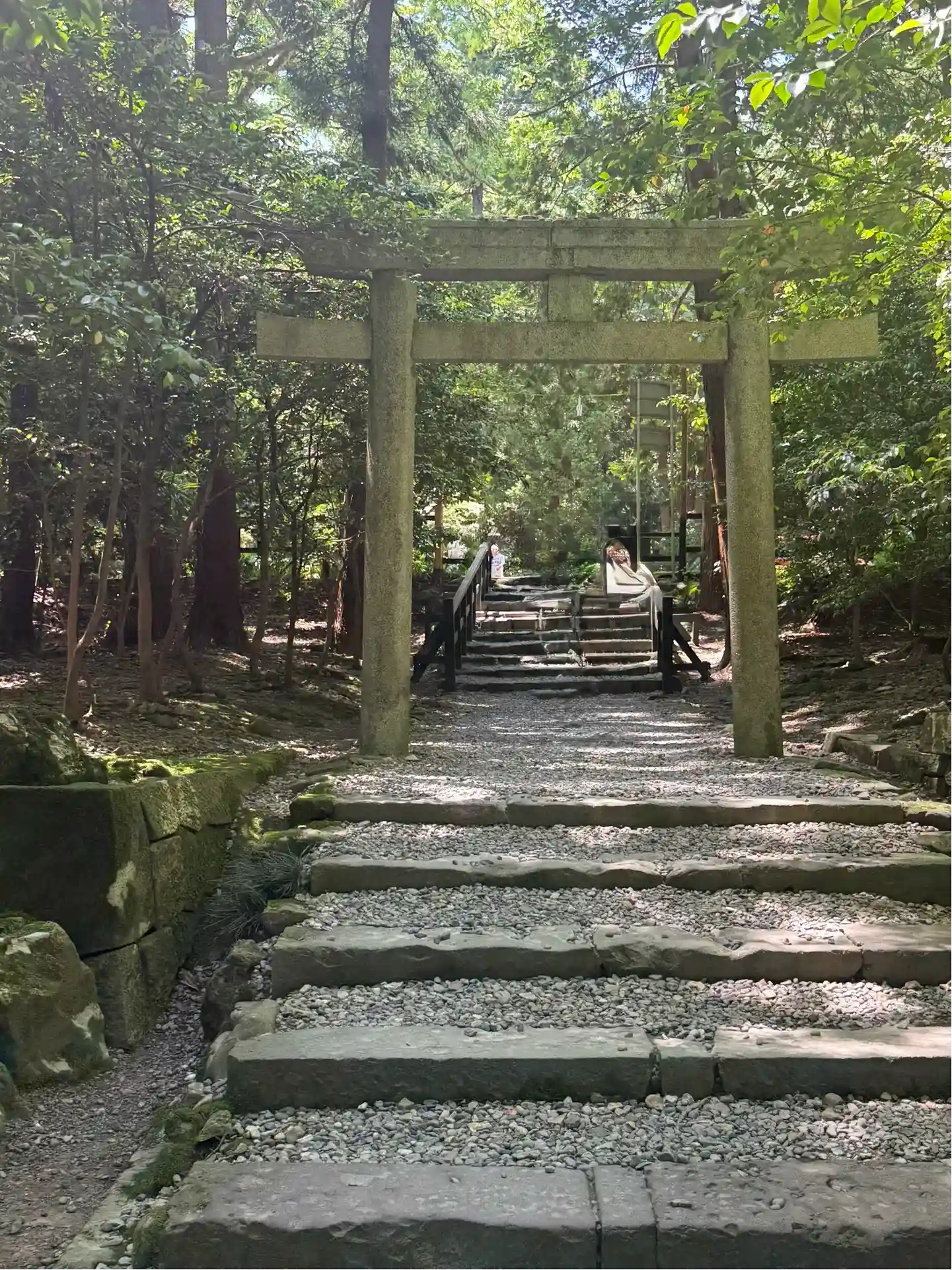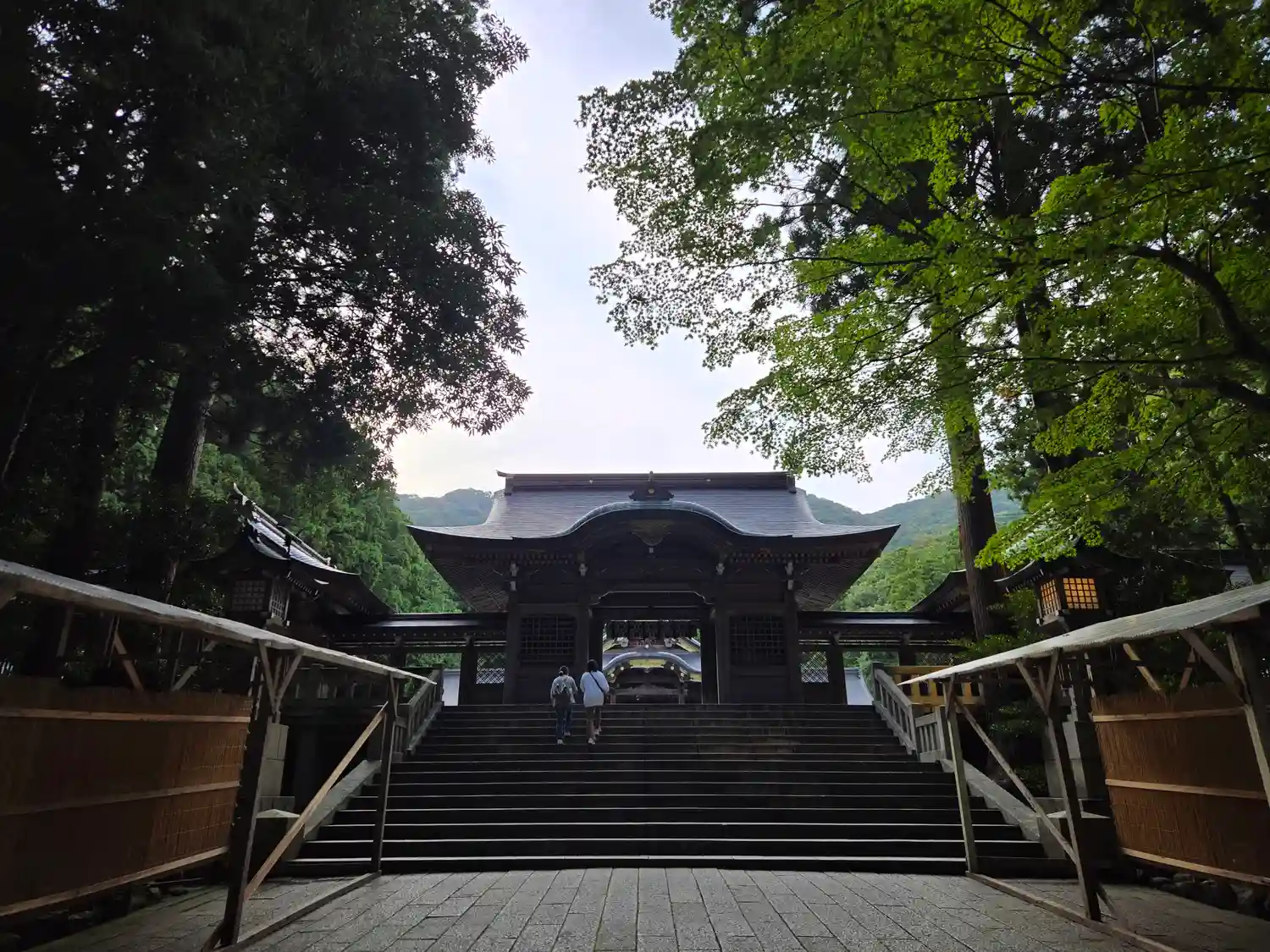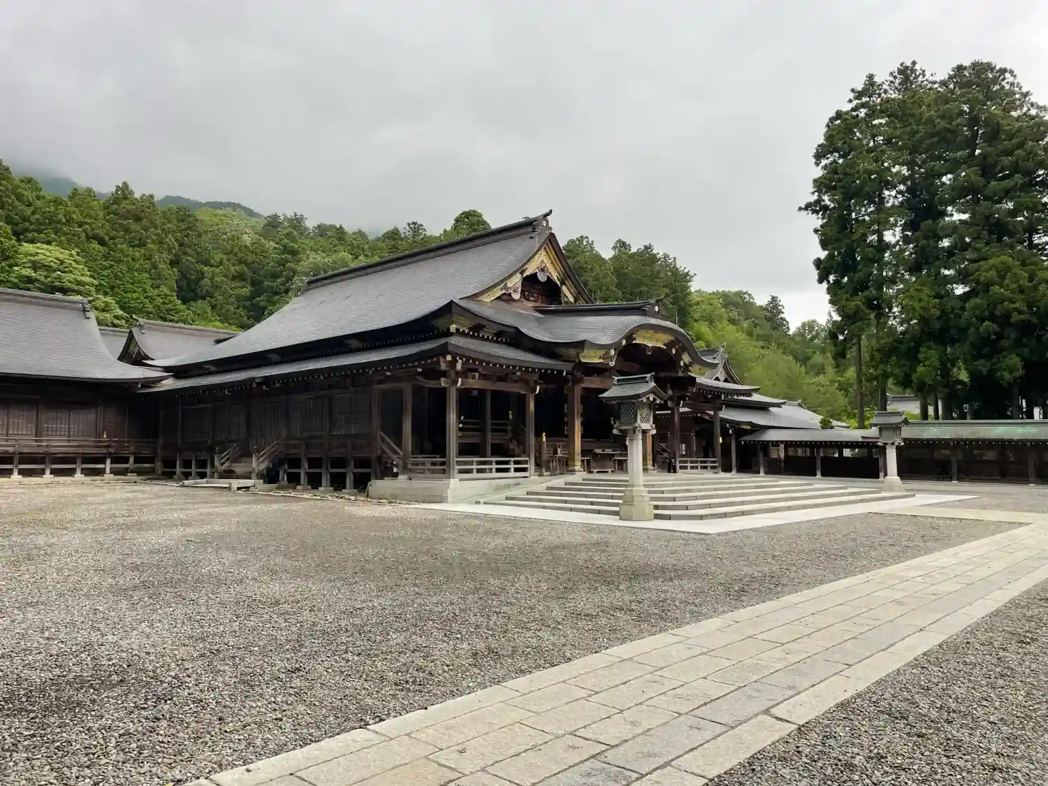 霧雨が降ったり止んだりの天気で、石の参道がしっとり濡れていて良い雰囲気。