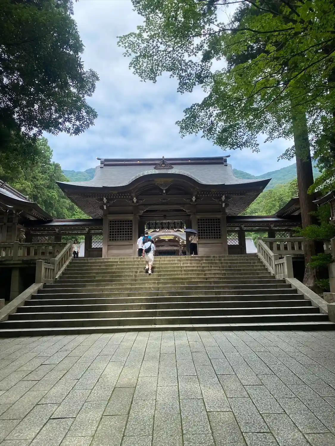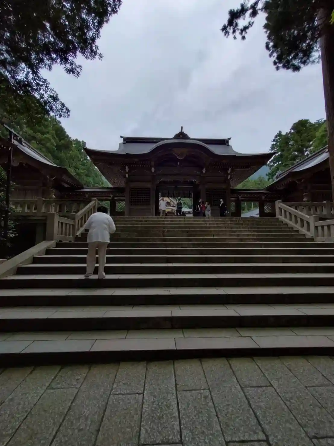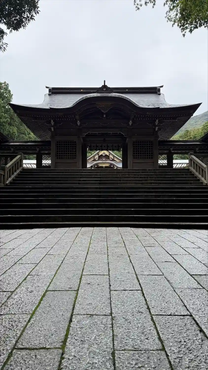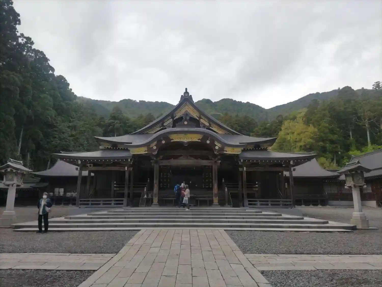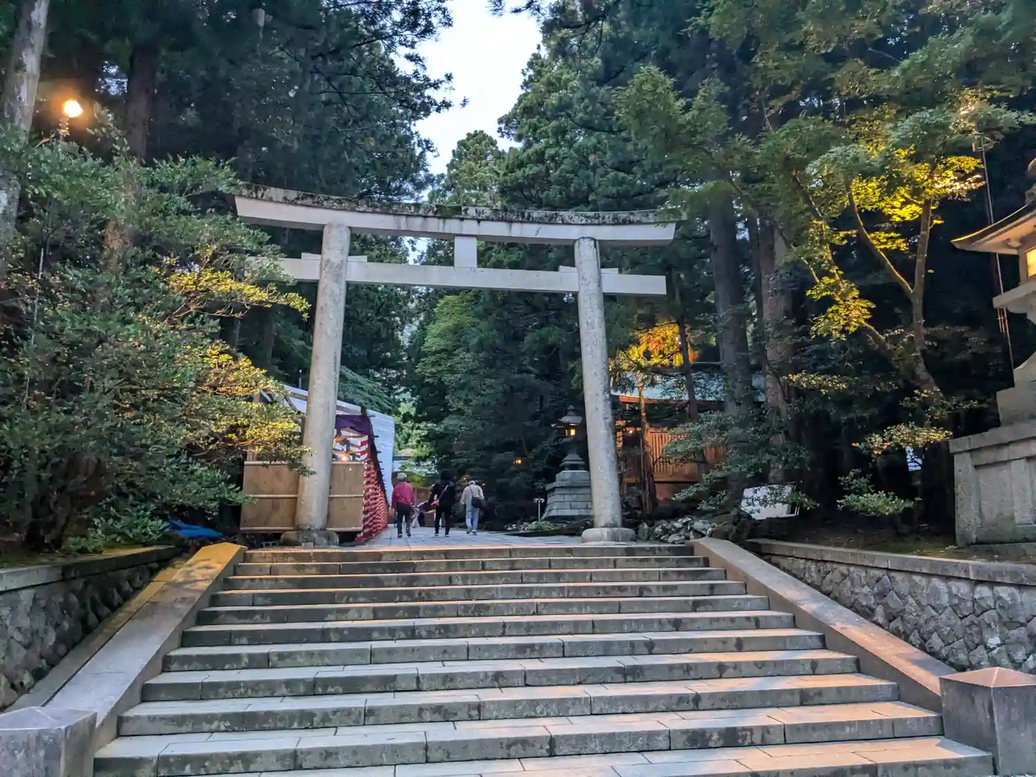 霧雨が降ったり止んだりの天気で、石の参道がしっとり濡れていて良い雰囲気。