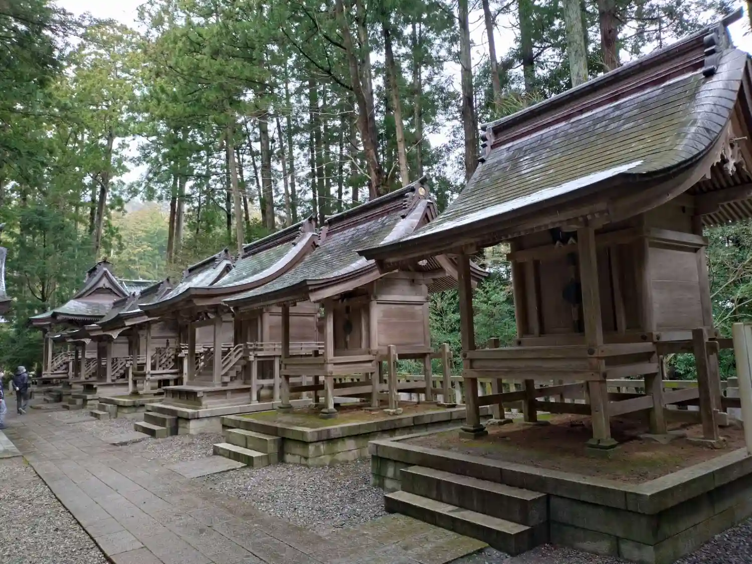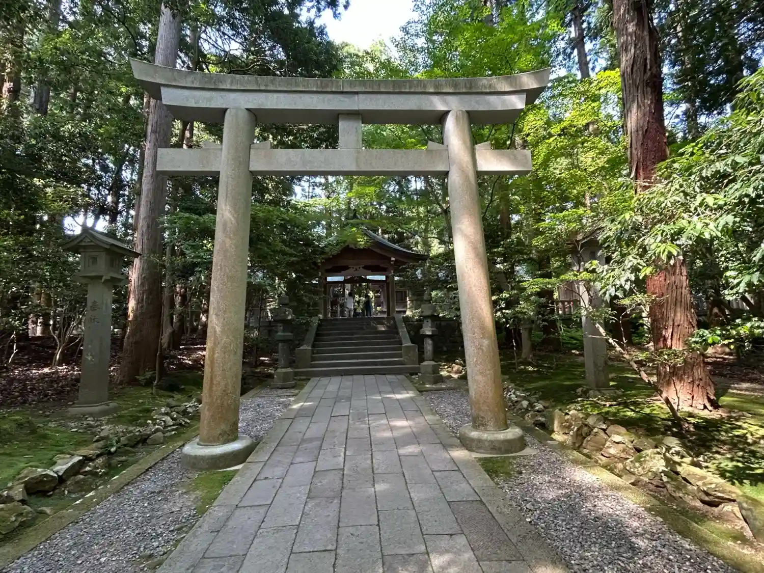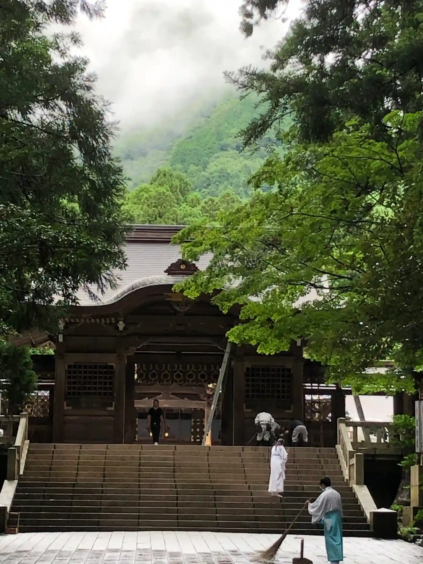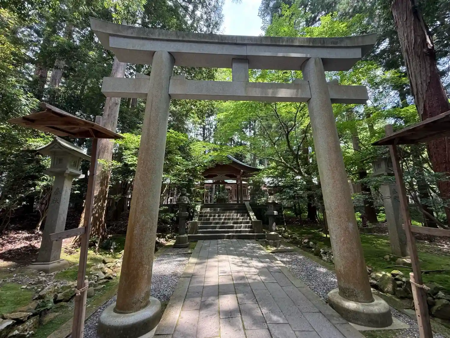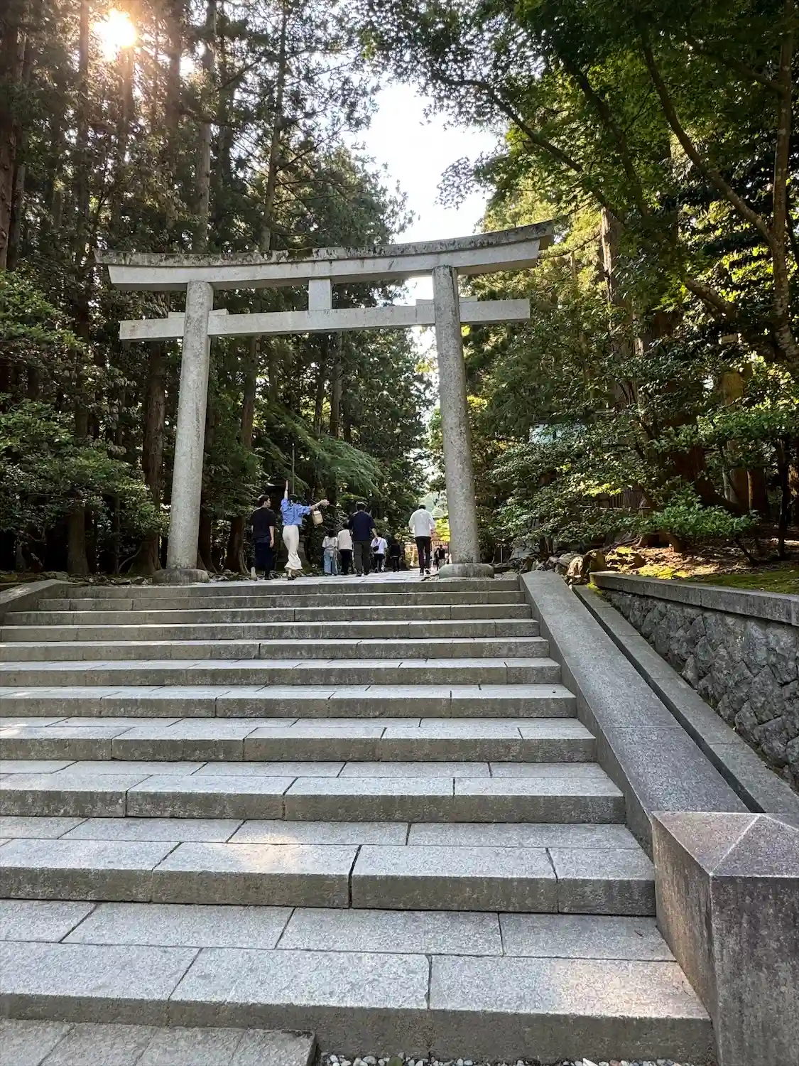 霧雨が降ったり止んだりの天気で、石の参道がしっとり濡れていて良い雰囲気。