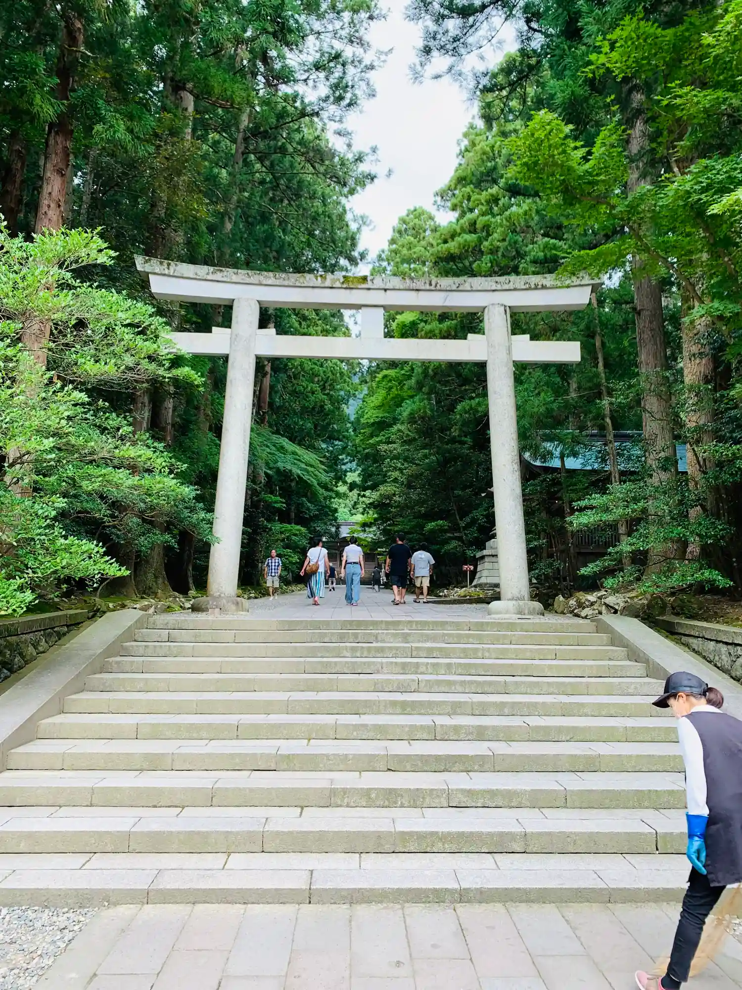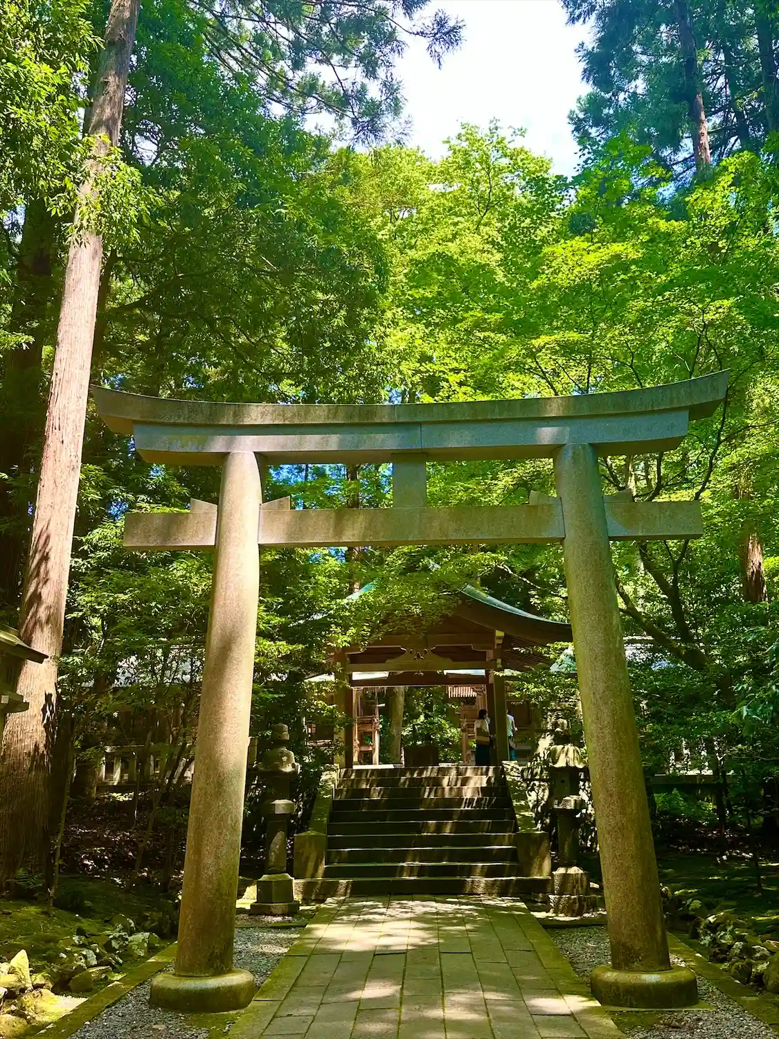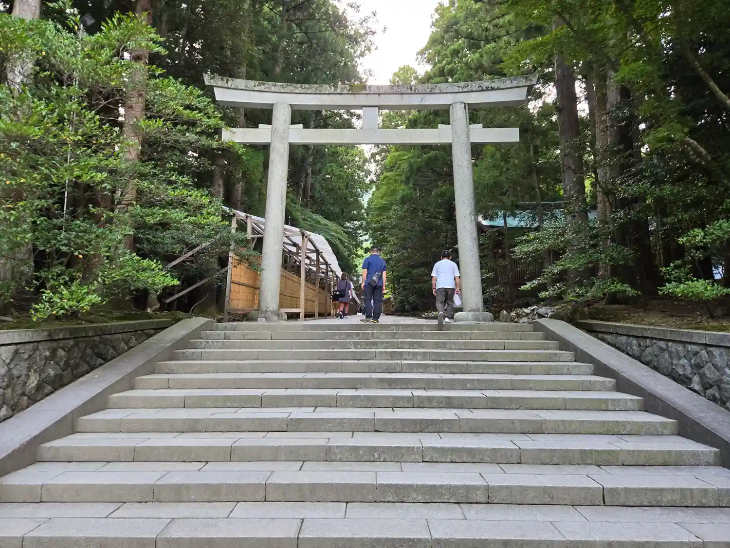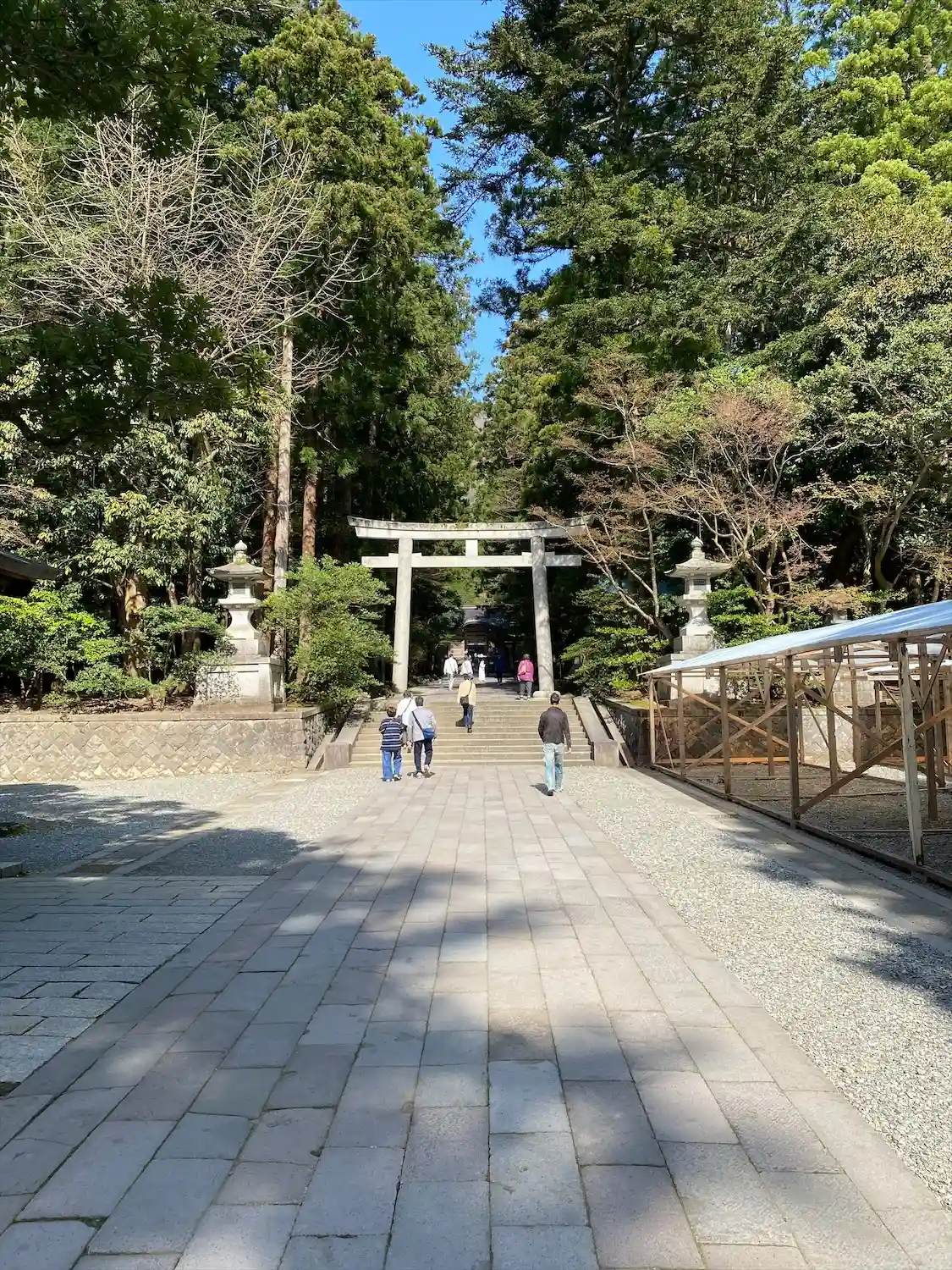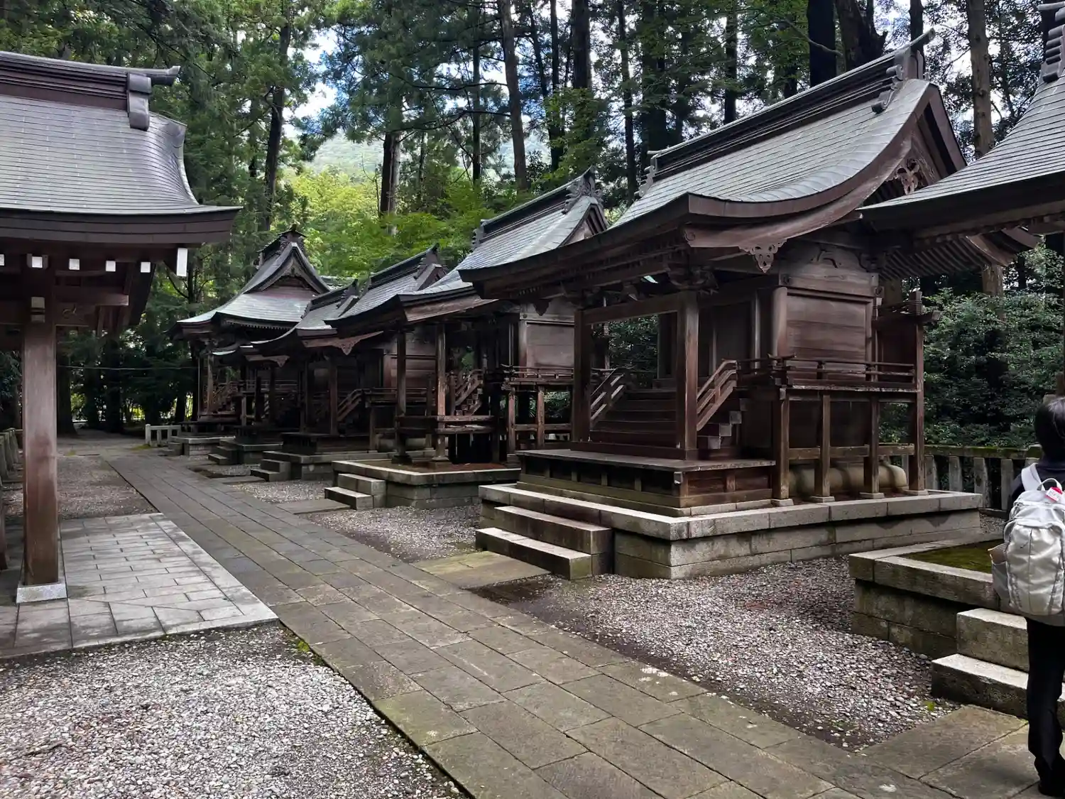 霧雨が降ったり止んだりの天気で、石の参道がしっとり濡れていて良い雰囲気。