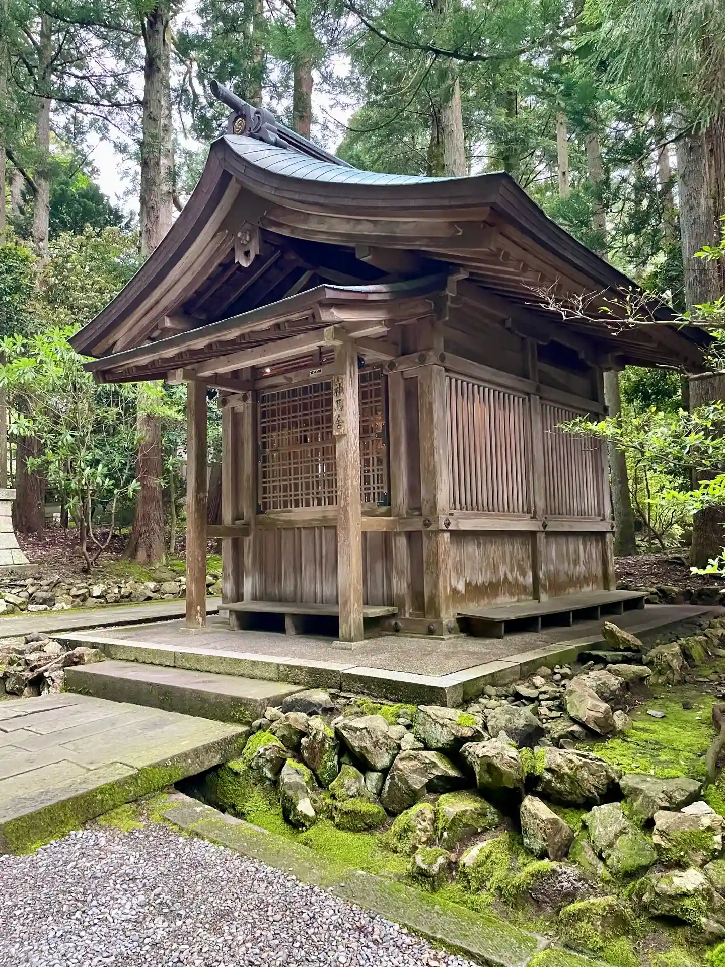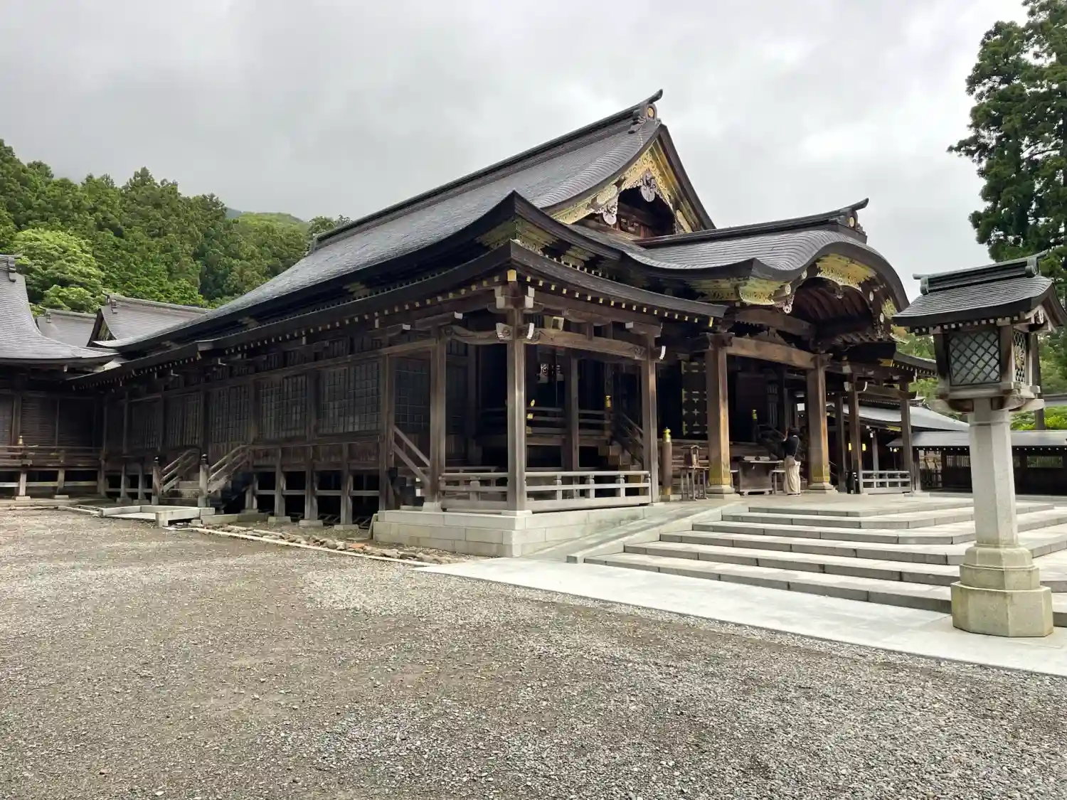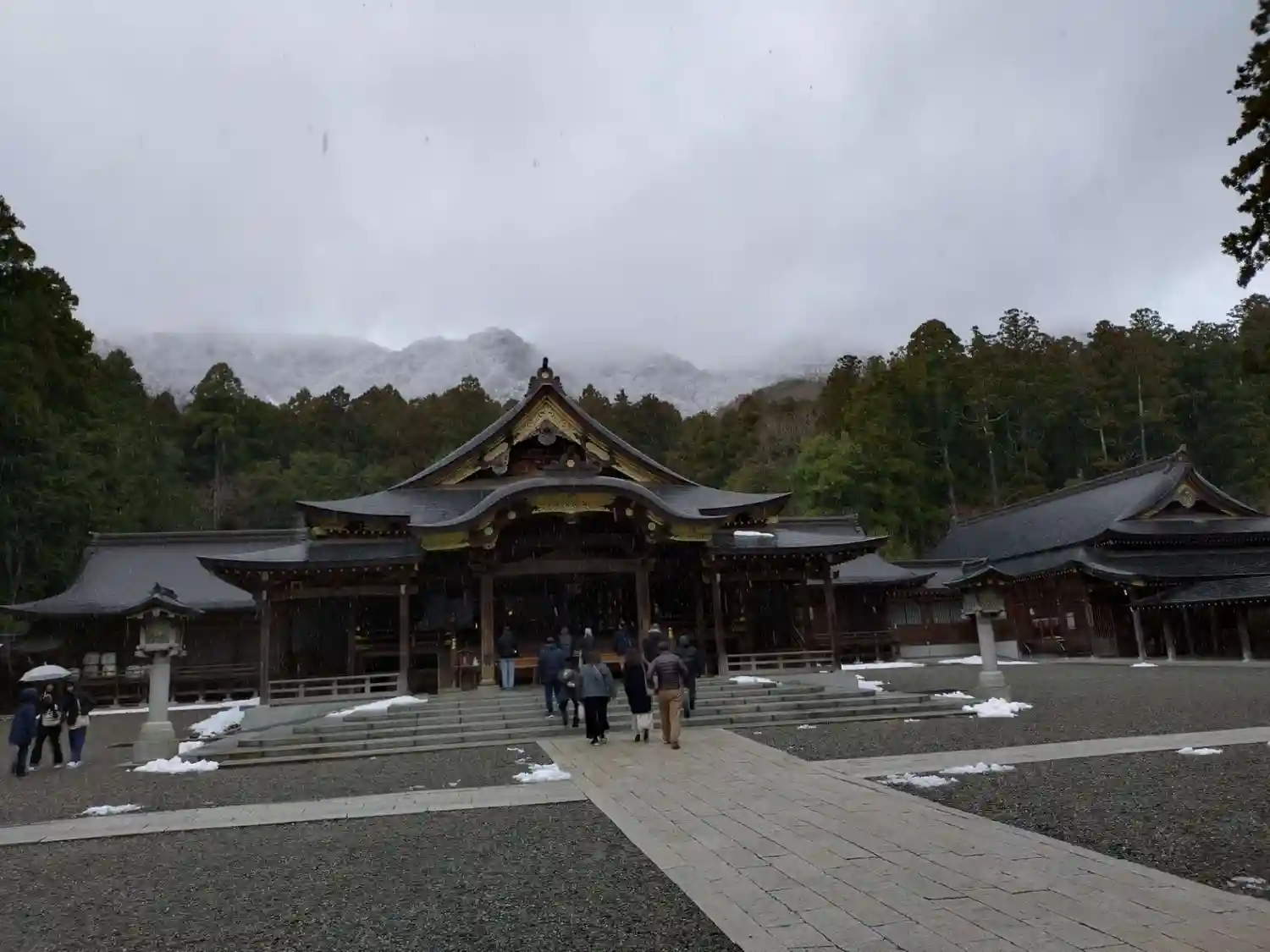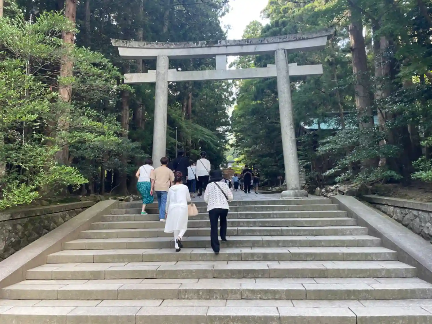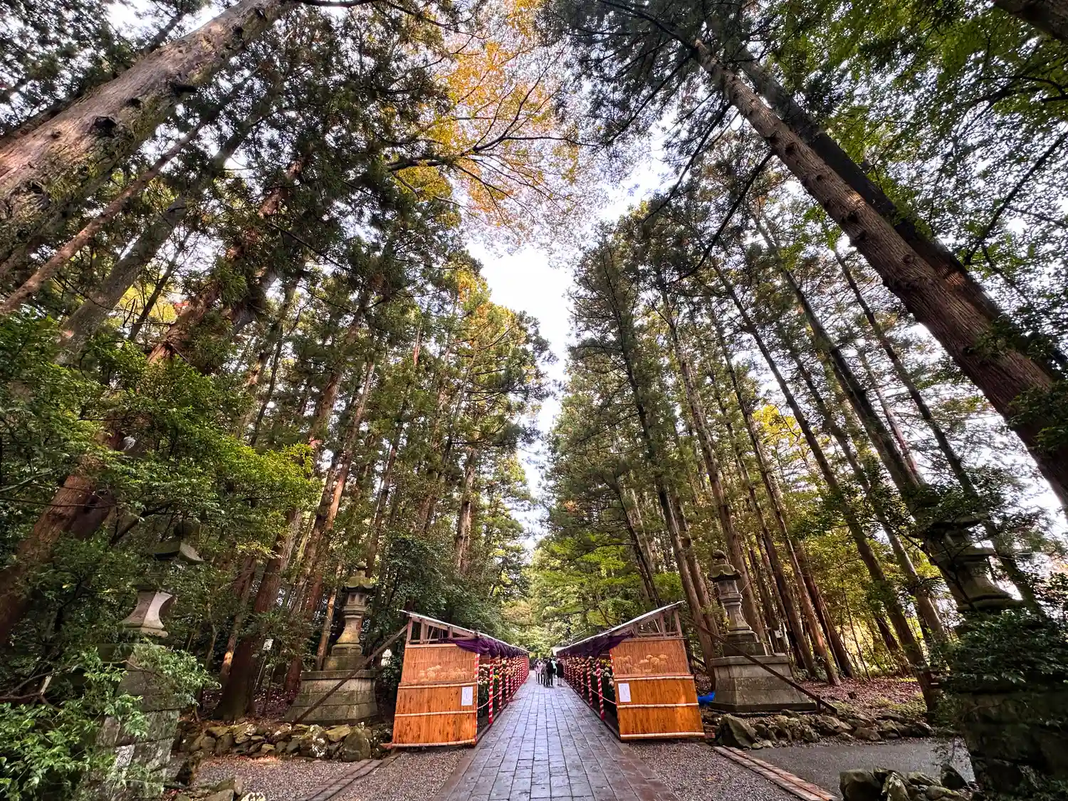 霧雨が降ったり止んだりの天気で、石の参道がしっとり濡れていて良い雰囲気。