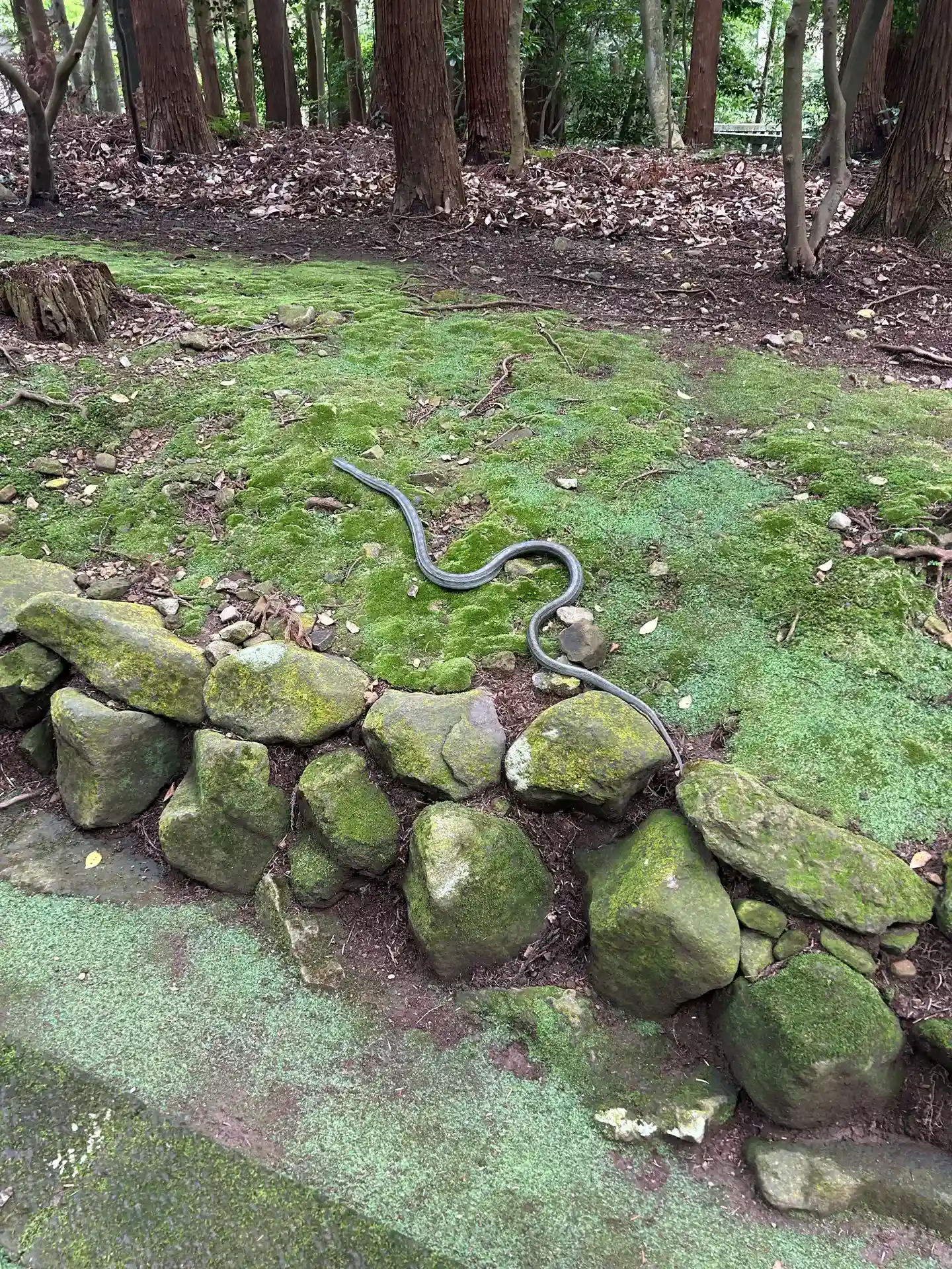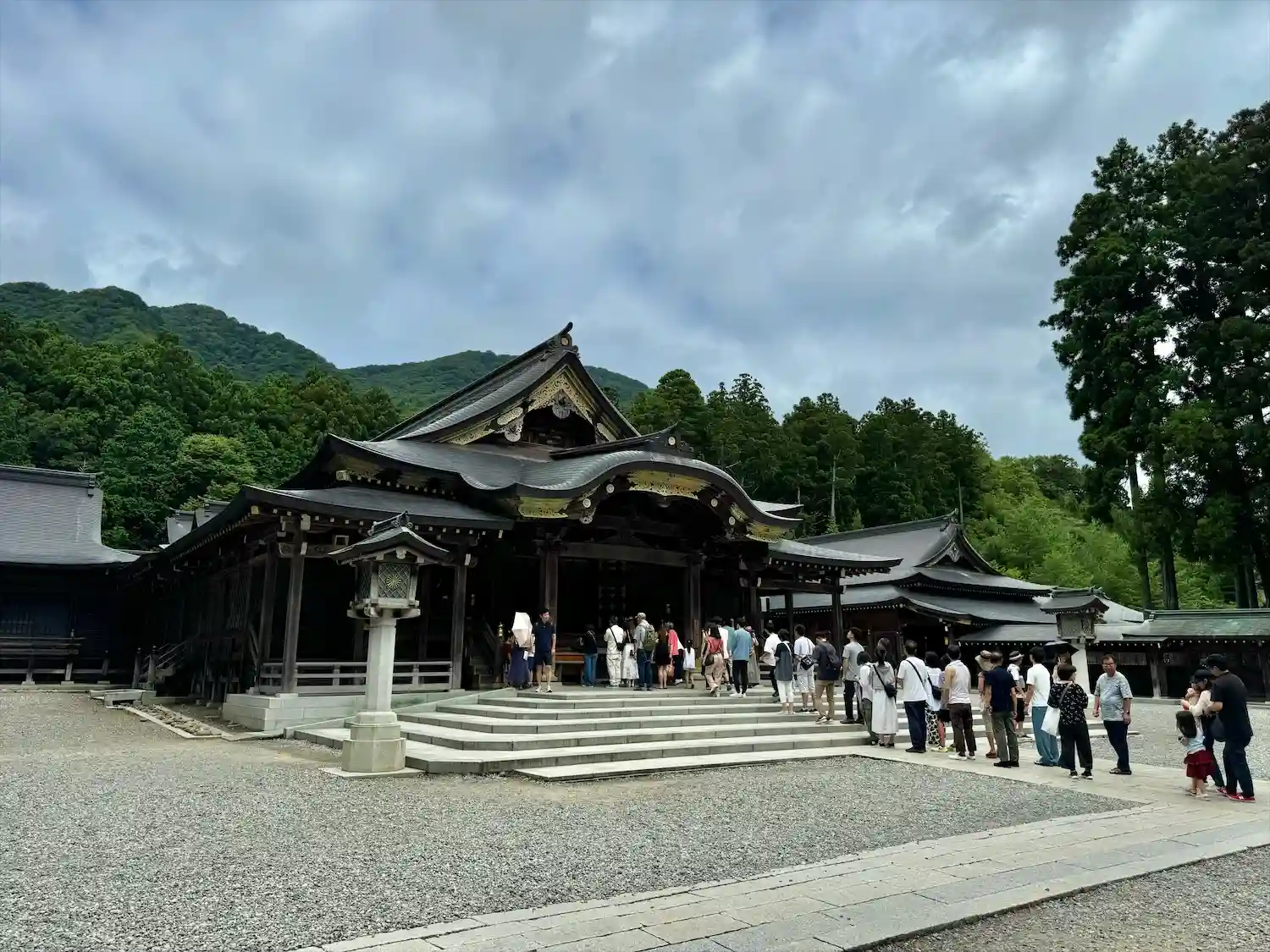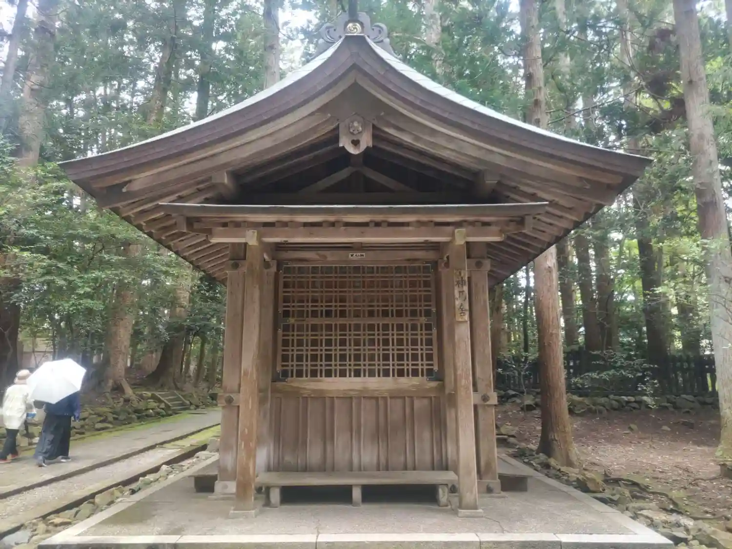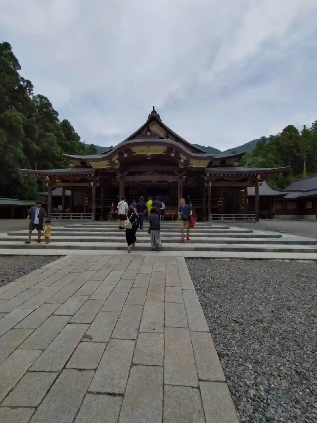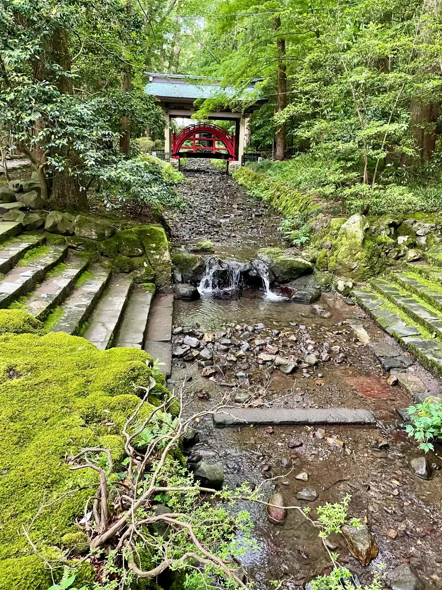 霧雨が降ったり止んだりの天気で、石の参道がしっとり濡れていて良い雰囲気。