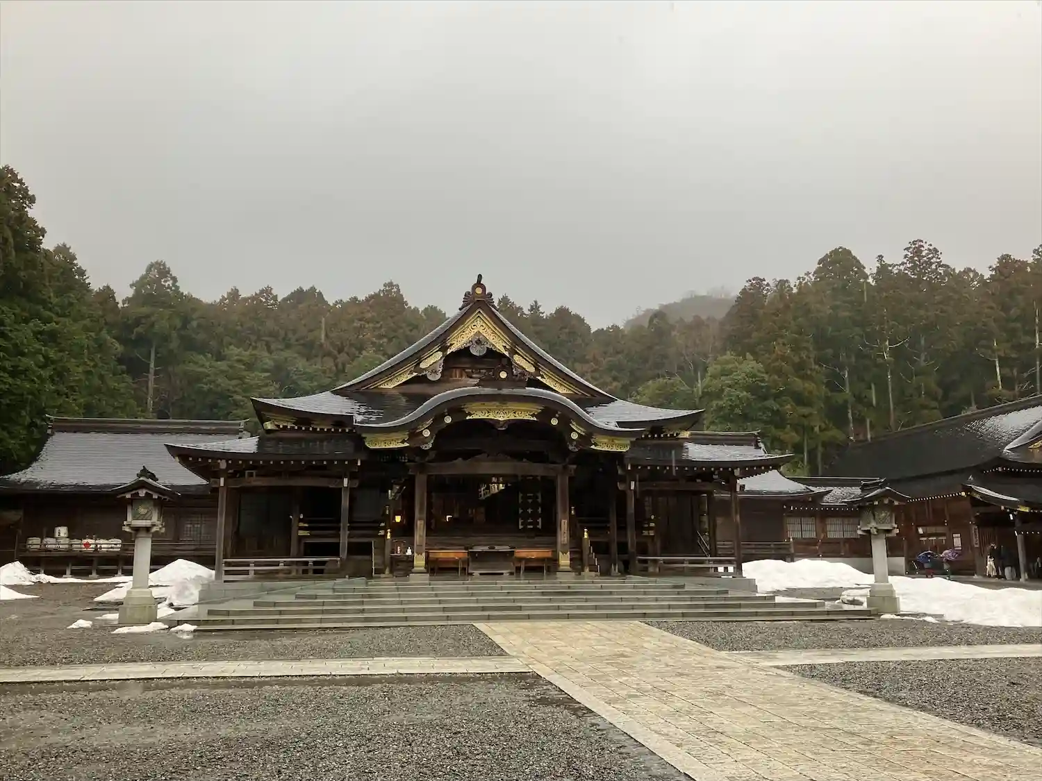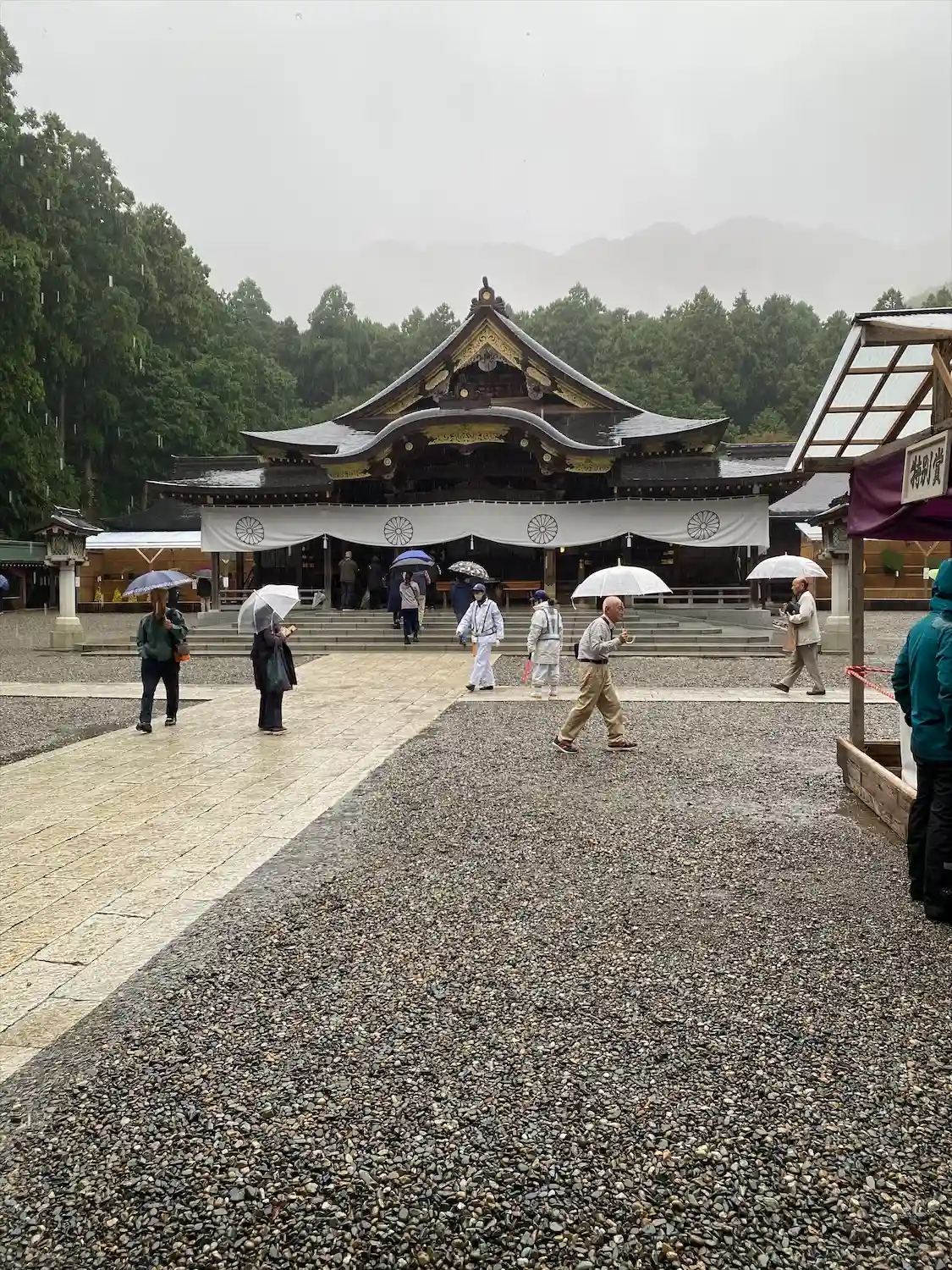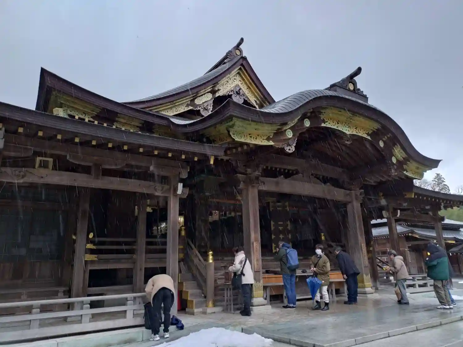 新潟に入るあたりから天気が崩れ、参拝時も雨。