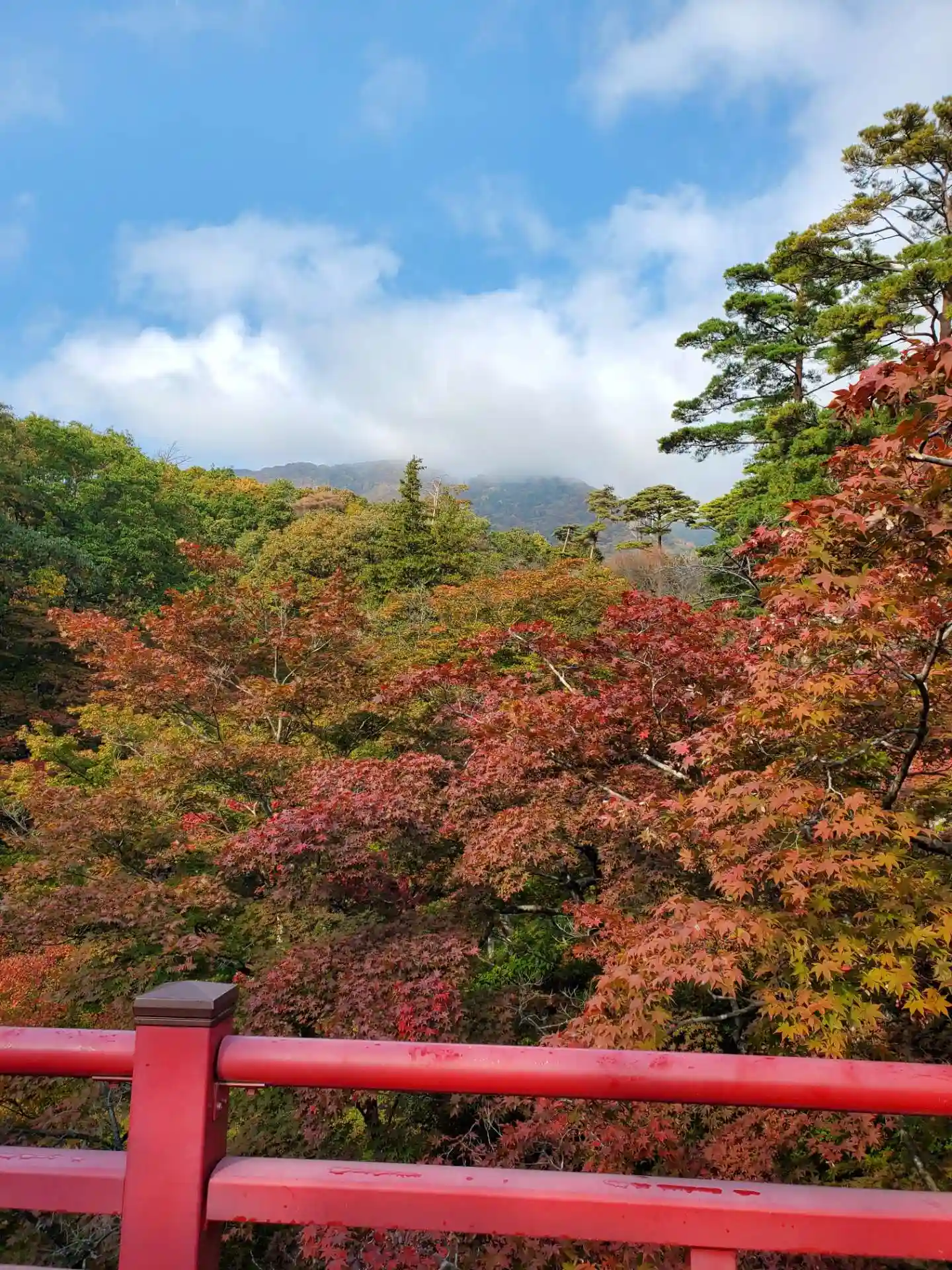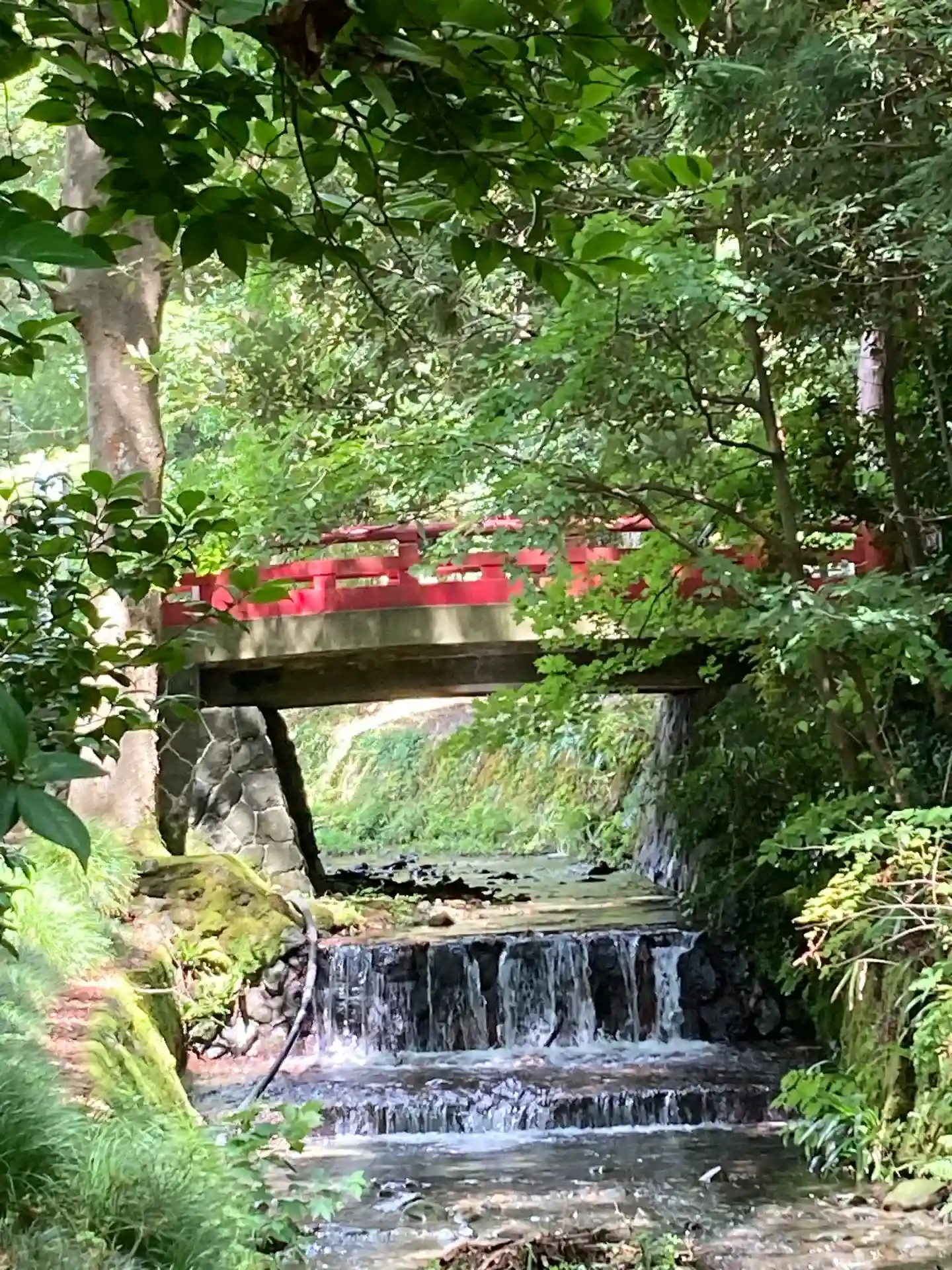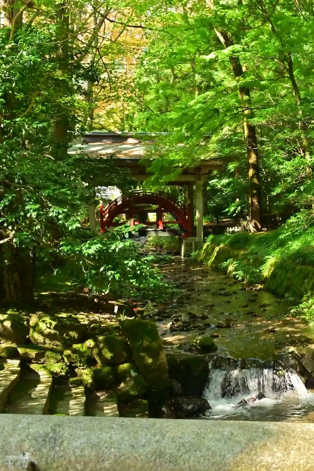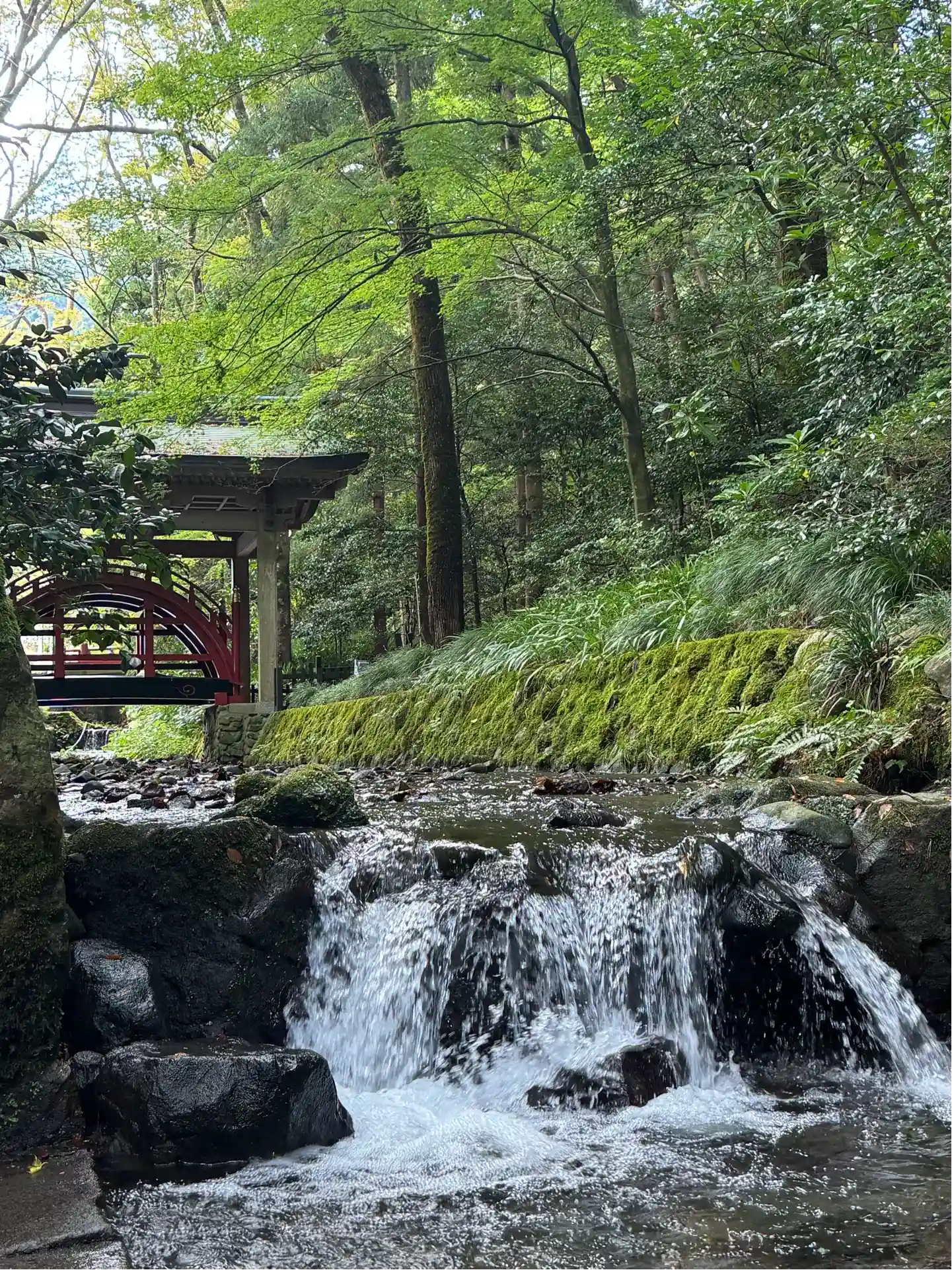 弥彦神社の⛩を入ってスグ左手に真っ赤な太鼓橋があります。