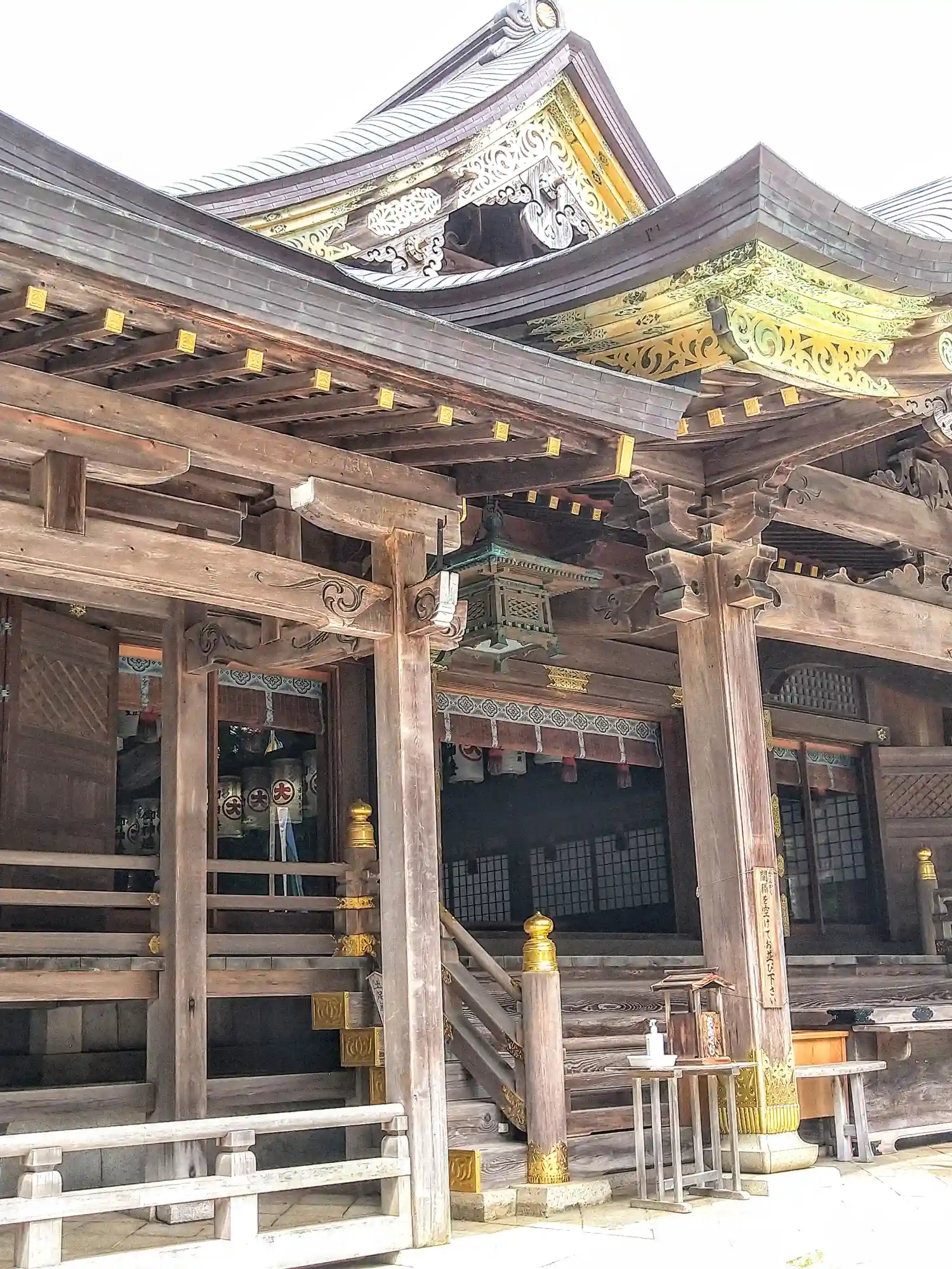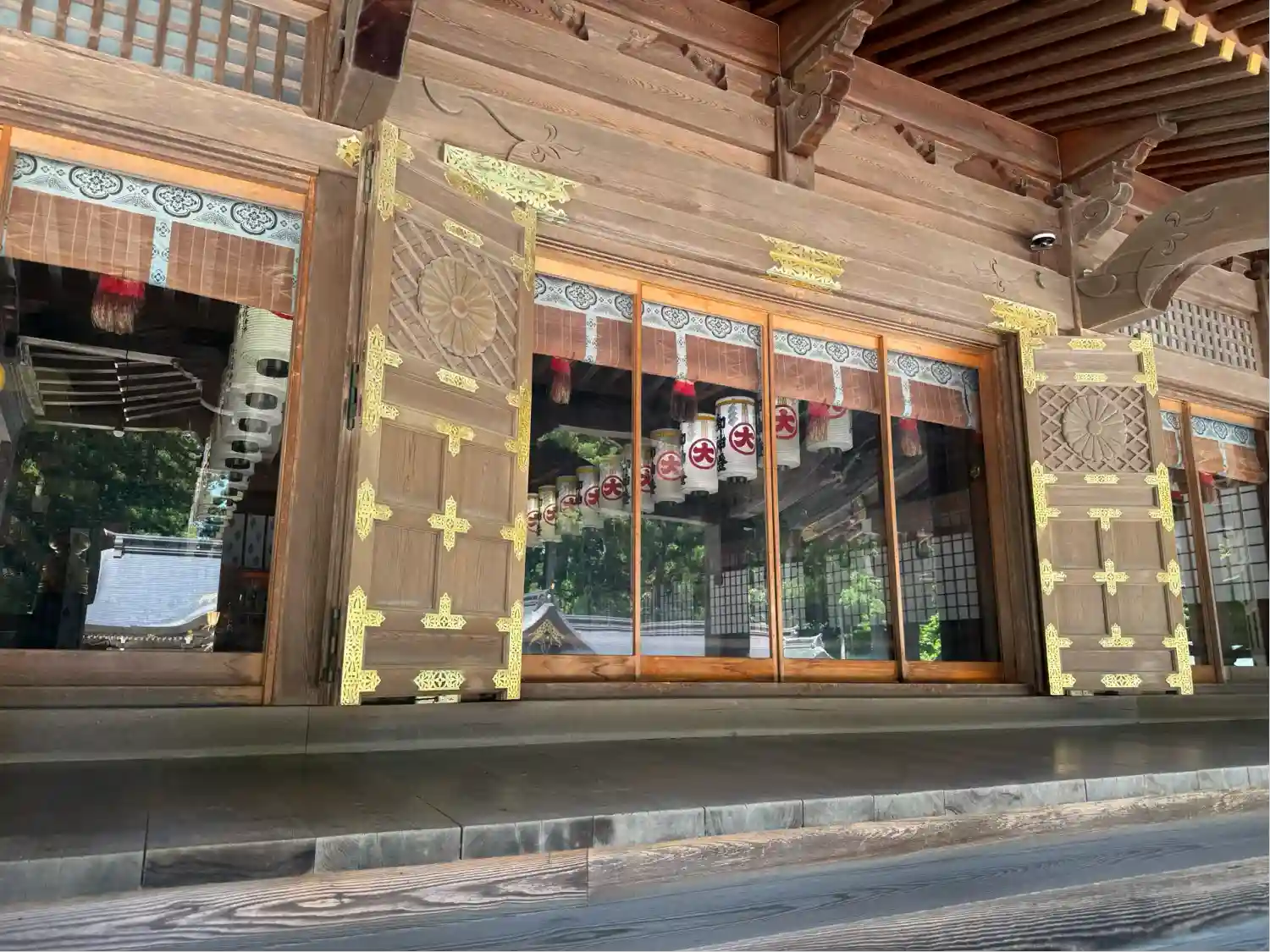 拝殿の中の提灯が見事。