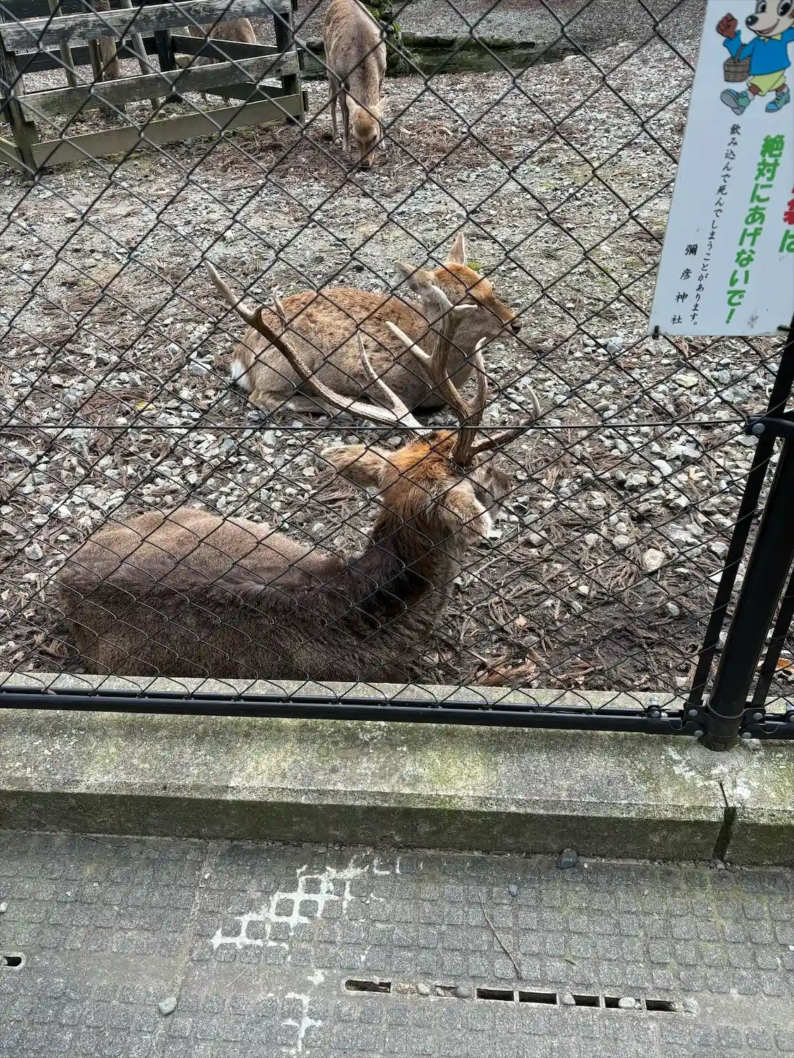 神社では、神の使いとしてか、<鶏>と<鹿>を飼育している。写真は<鹿苑>。
