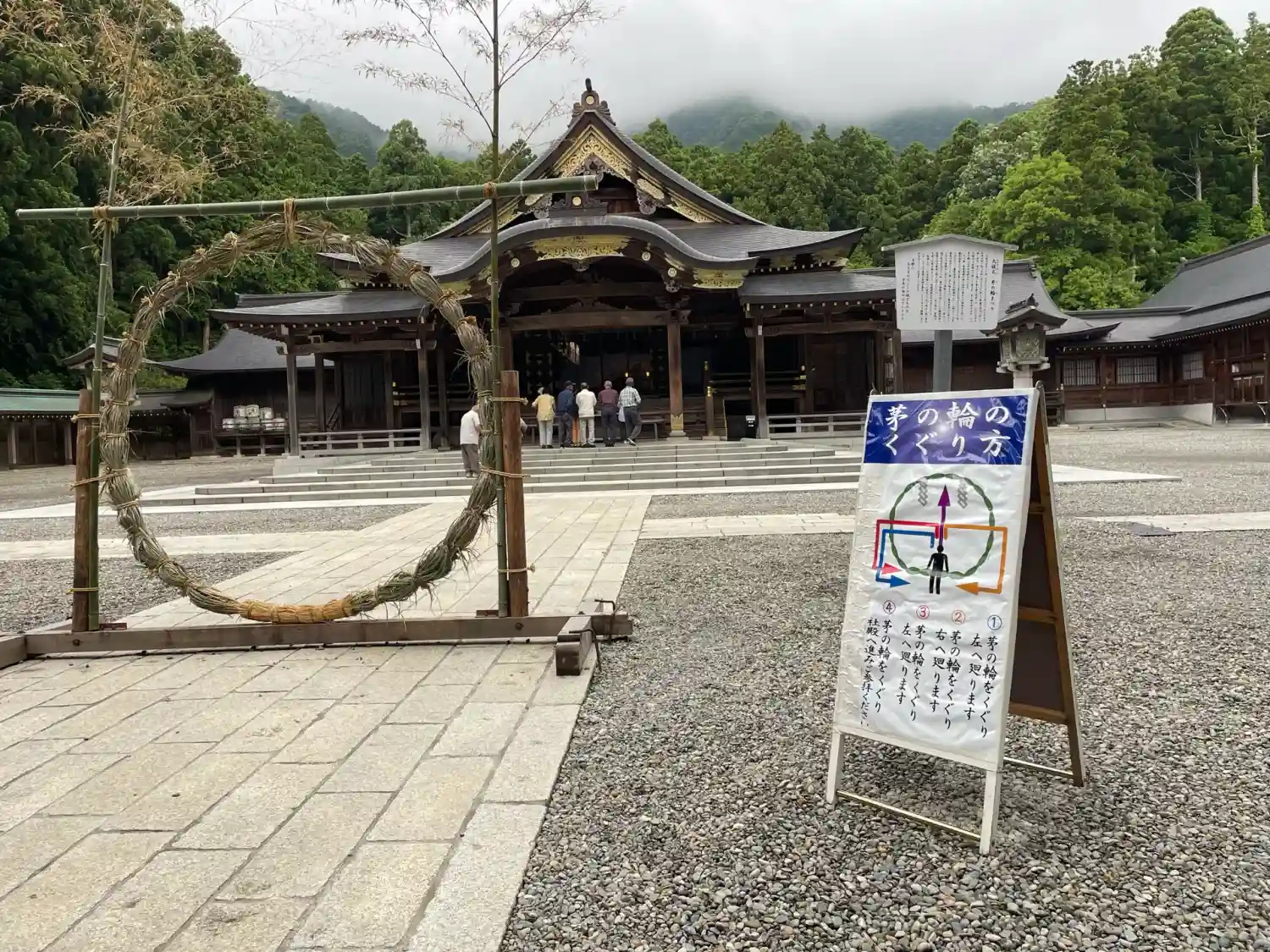 皆さん茅の輪の説明読みながらくぐっていました