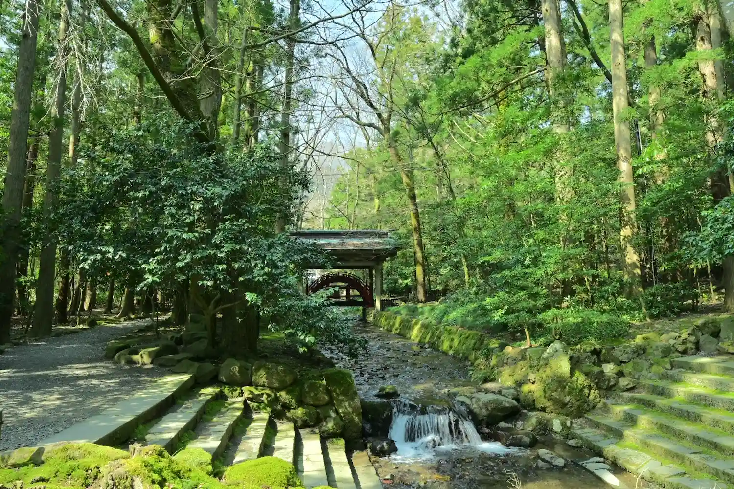 鳥居をくぐると、<神橋>があって、その後幅の広い参道がまっすぐに伸びる。