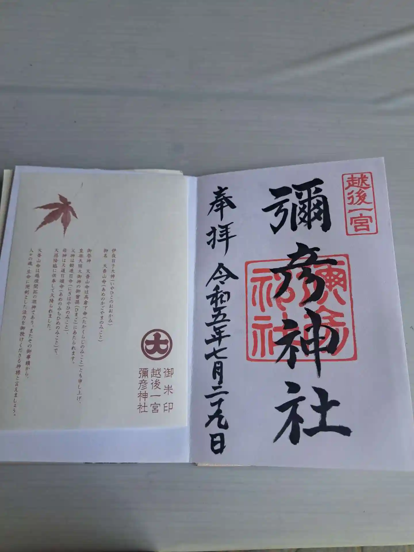 彌彦神社の御朱印を戴いてきました